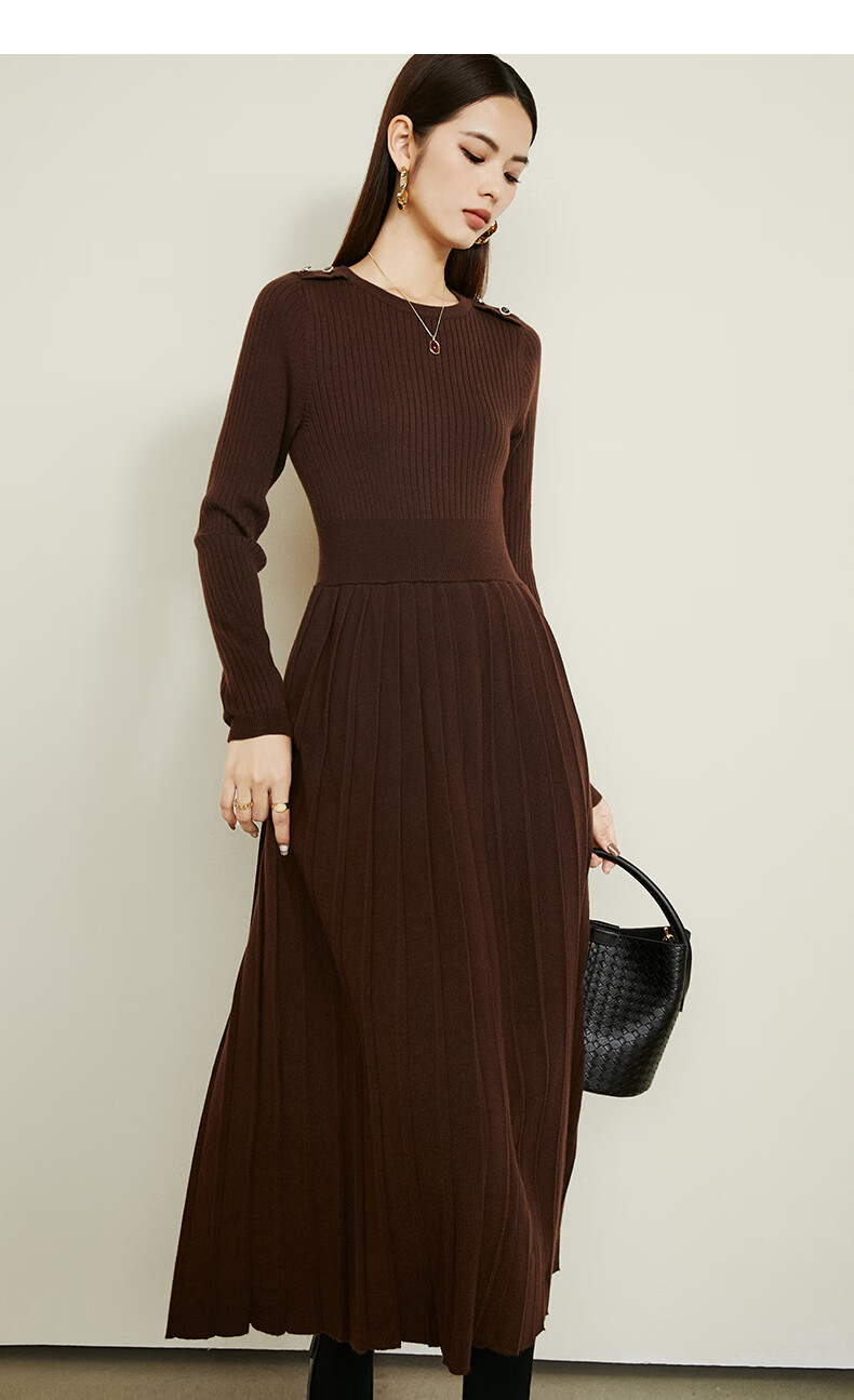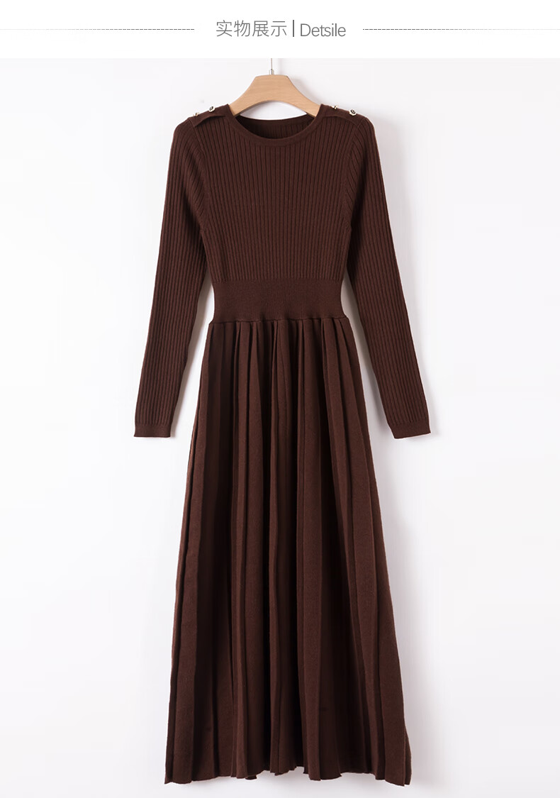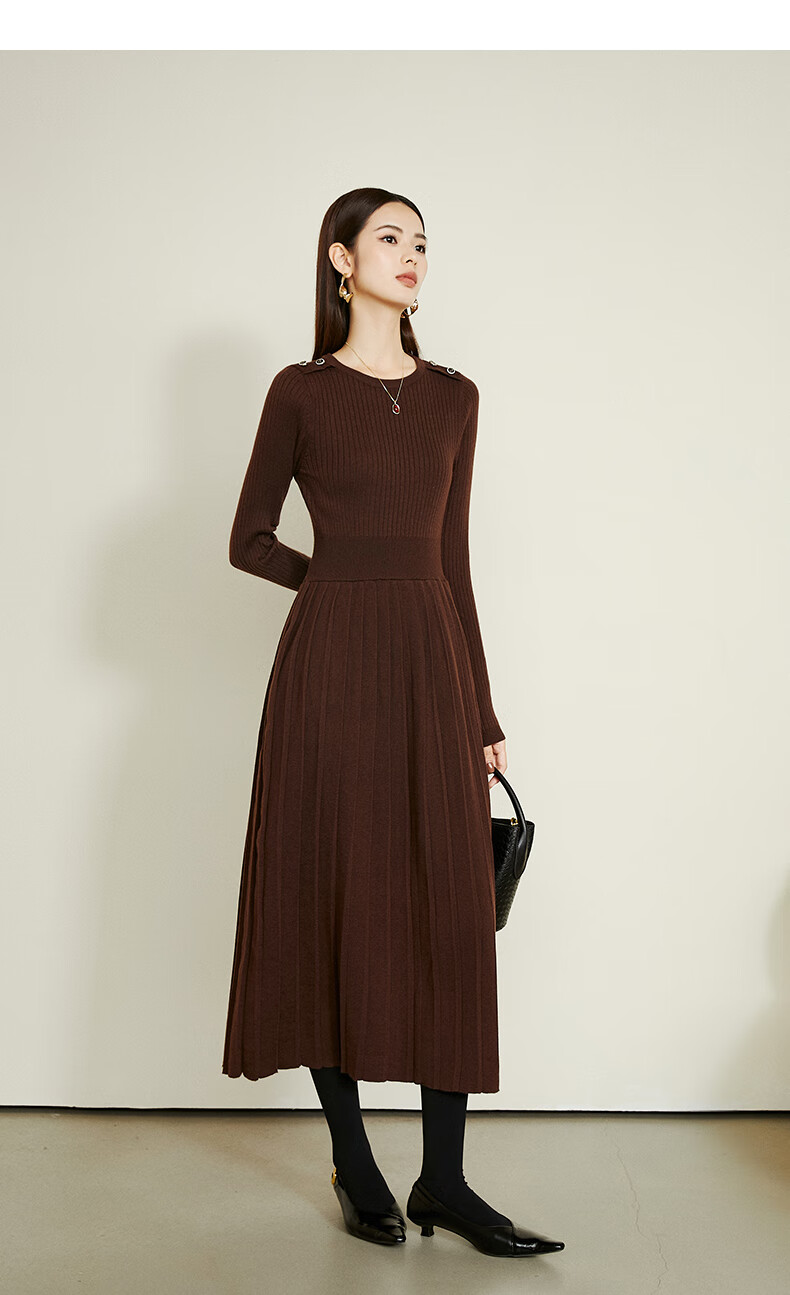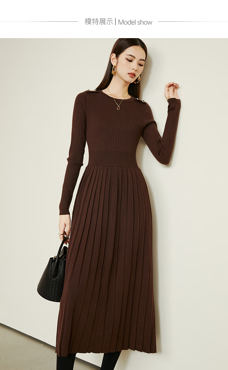晚白【断码清仓】2026春款修身裙子羊毛百搭气质针织打底连衣裙 深褐色 M