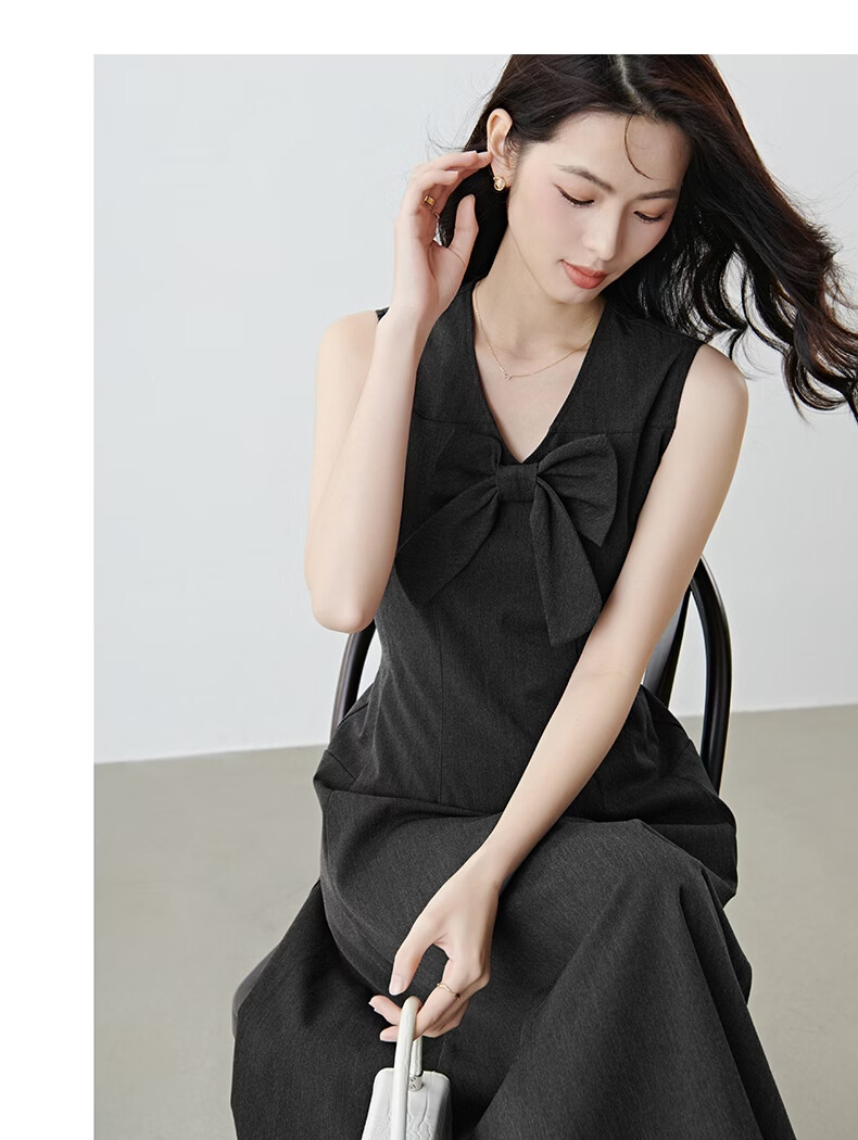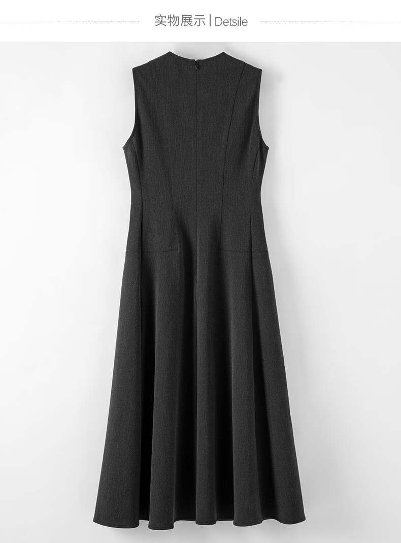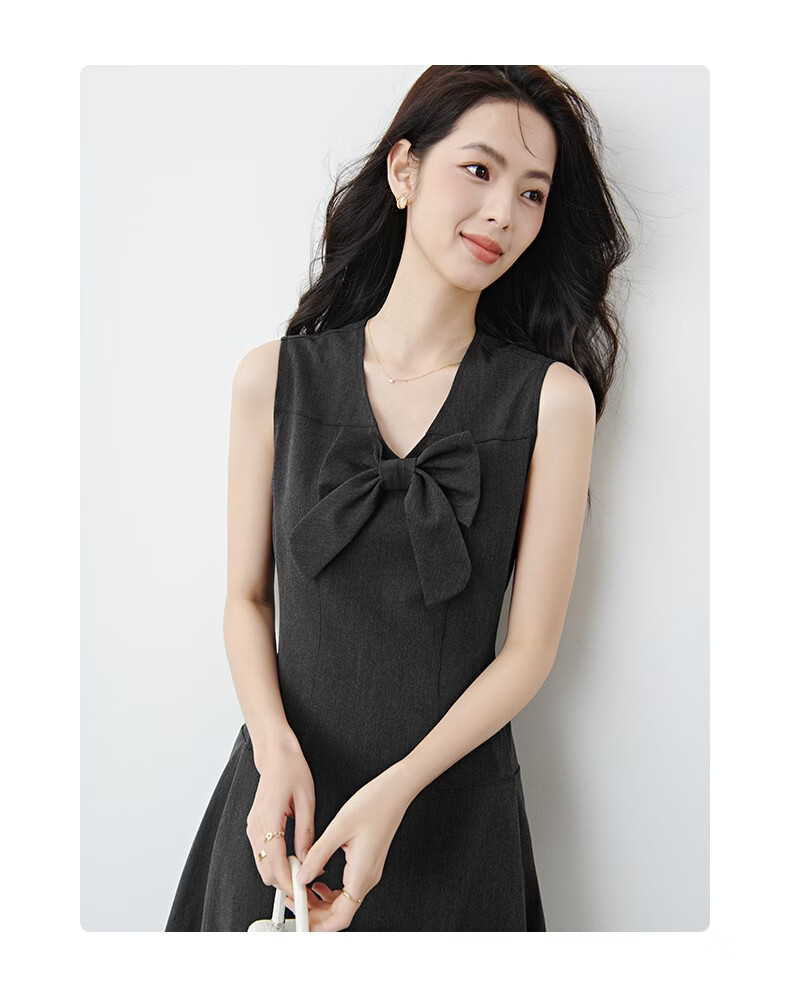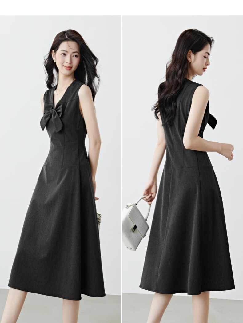 晚白【新品】2026春款优雅轻熟风背心裙V领收腰时尚百搭无袖连衣裙 深灰色 L