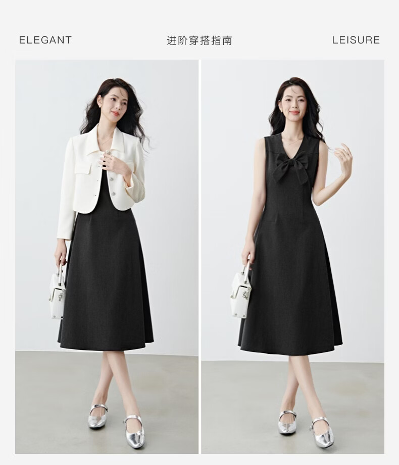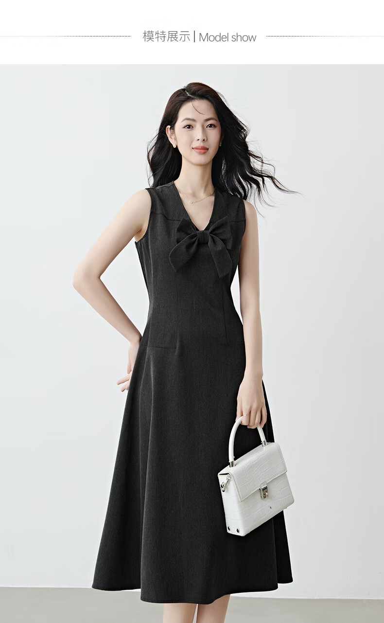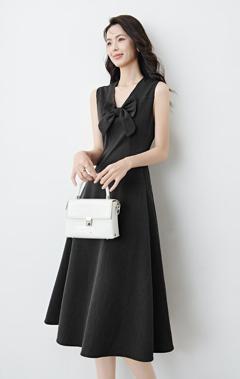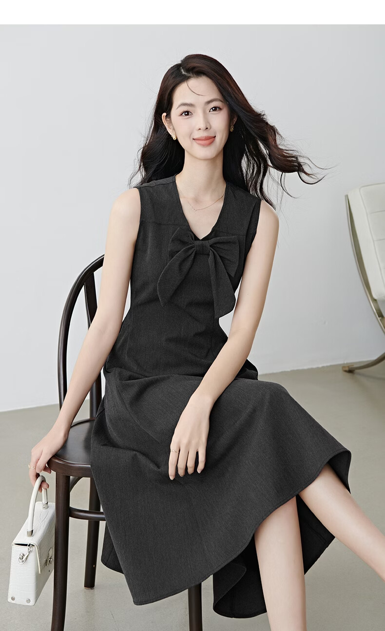 晚白【新品】2026春款优雅轻熟风背心裙V领收腰时尚百搭无袖连衣裙 深灰色 L