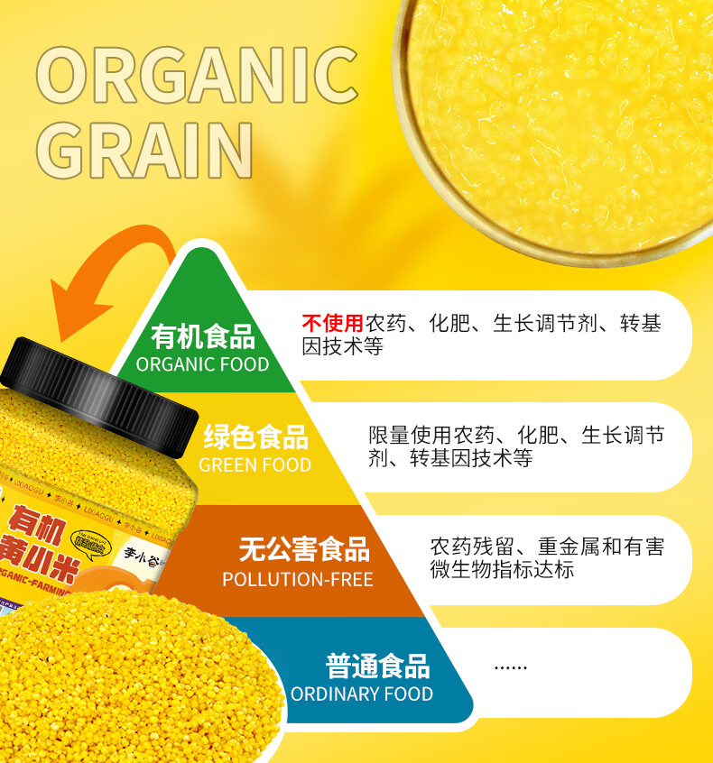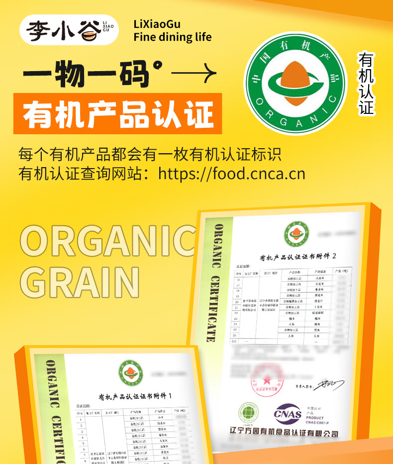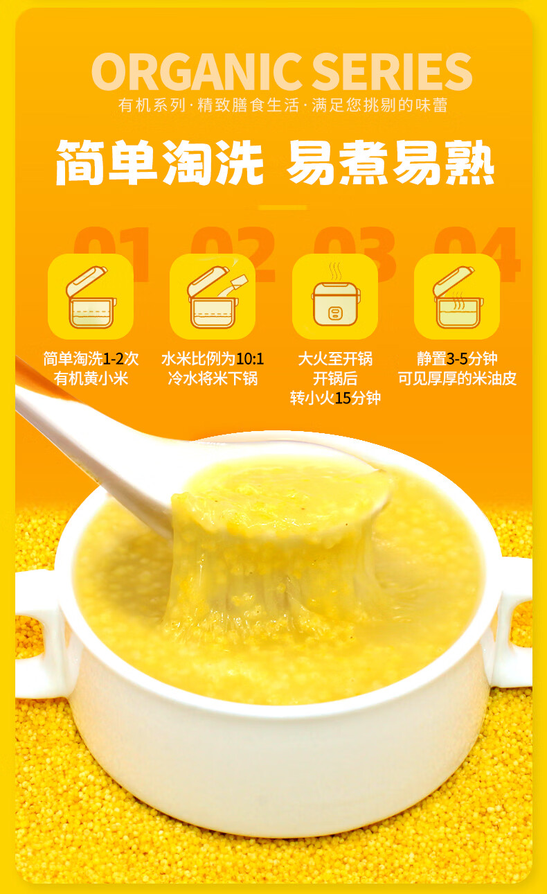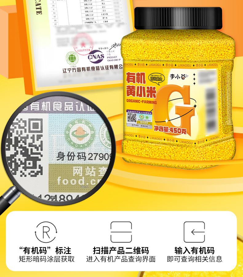 李小谷 有机黄小米450克罐装(新米金苗K1黄小米粥料东北小米五谷杂粮米)