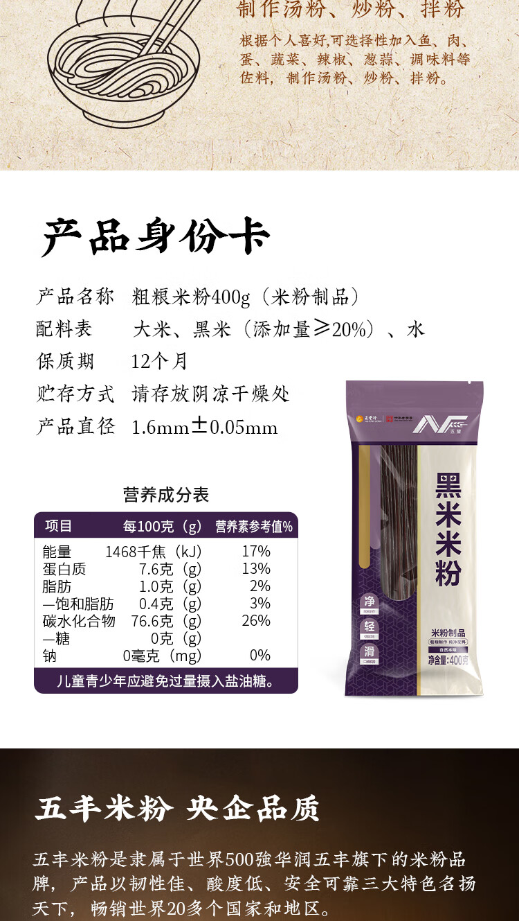 五丰黑米米粉400g 五谷粗粮江西米粉米线低脂粗粮主食健康代餐