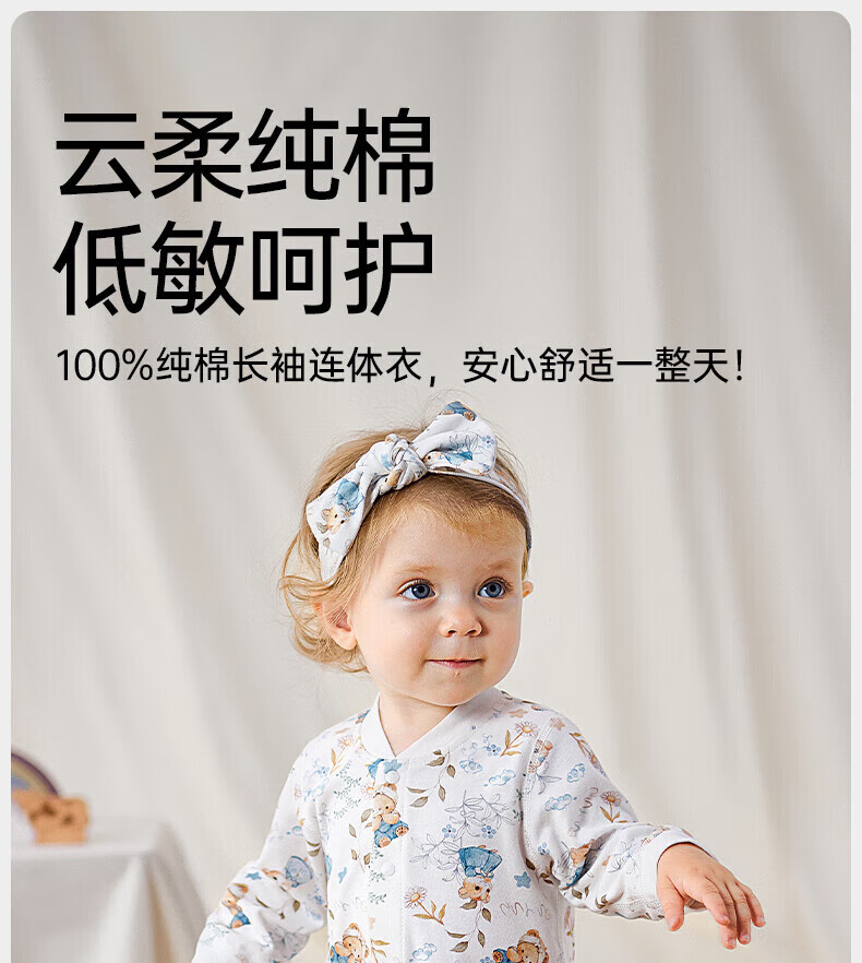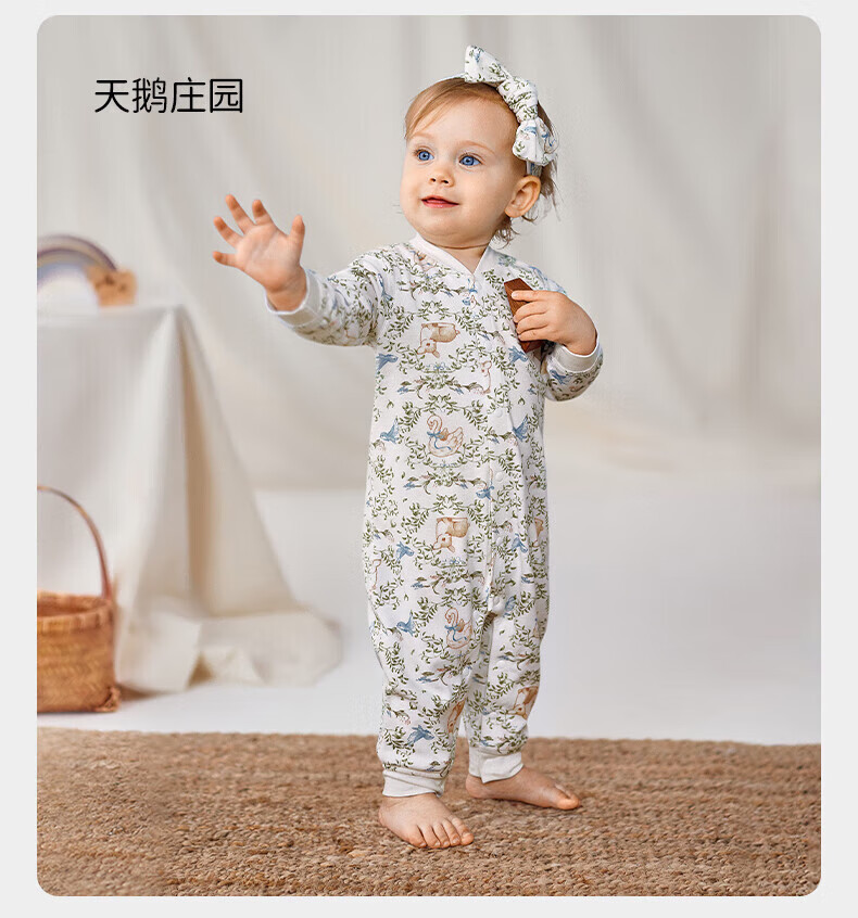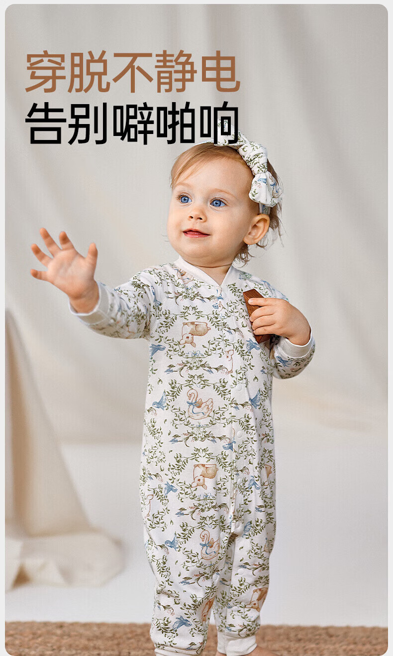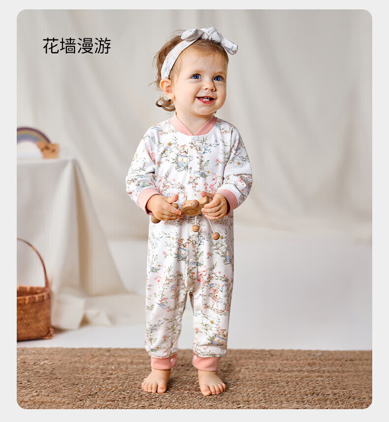 欧孕(OUYUN)婴儿连体衣秋季男女宝宝衣服纯棉长袖四季哈衣爬爬服居家睡衣 花墙漫游【新疆棉-10A抗菌】 80cm 【推荐身高75-81cm】
