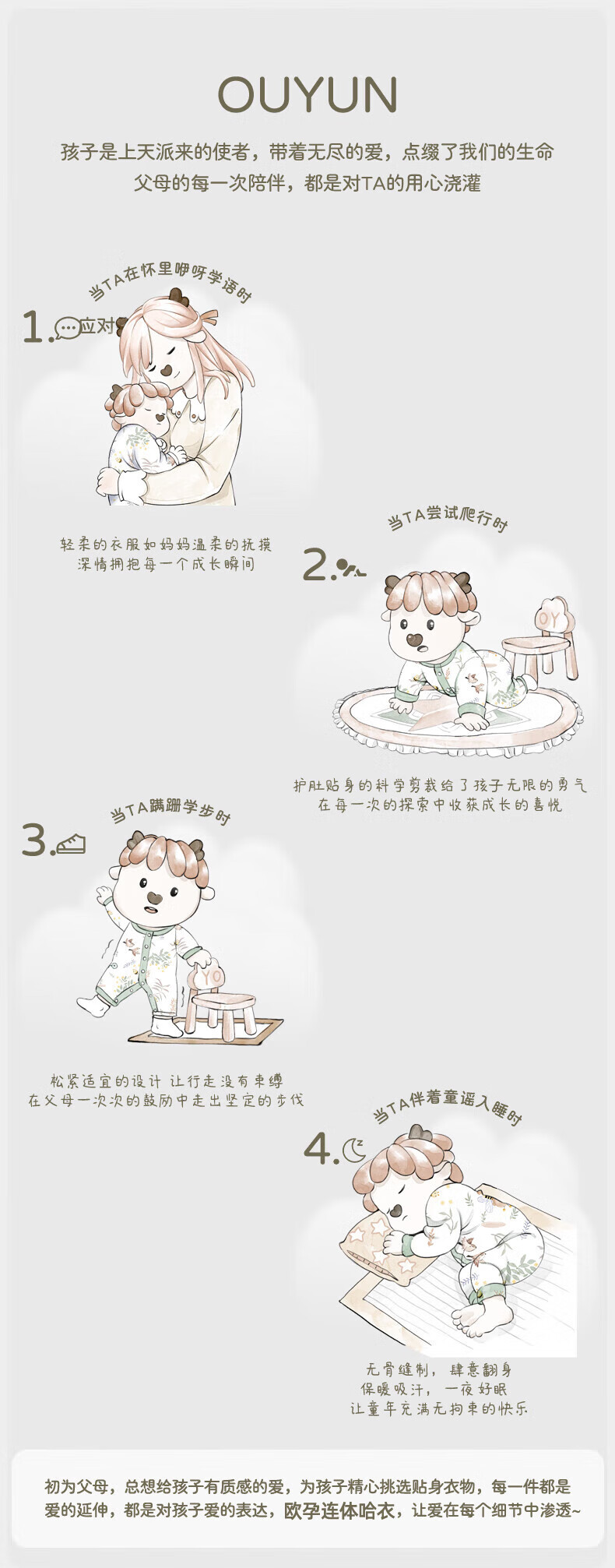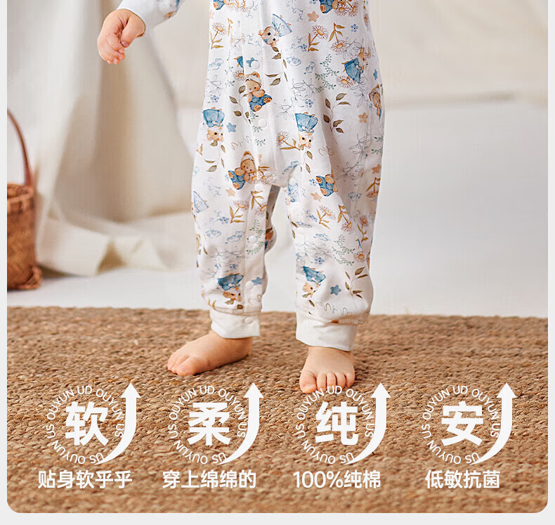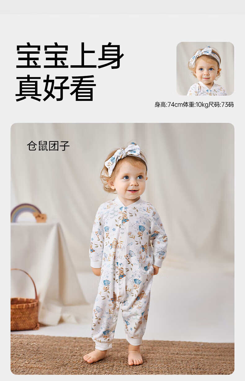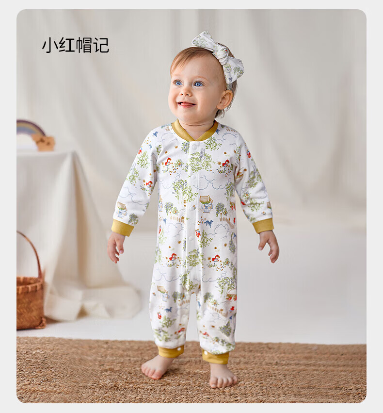 欧孕(OUYUN)婴儿连体衣秋季男女宝宝衣服纯棉长袖四季哈衣爬爬服居家睡衣 花墙漫游【新疆棉-10A抗菌】 80cm 【推荐身高75-81cm】