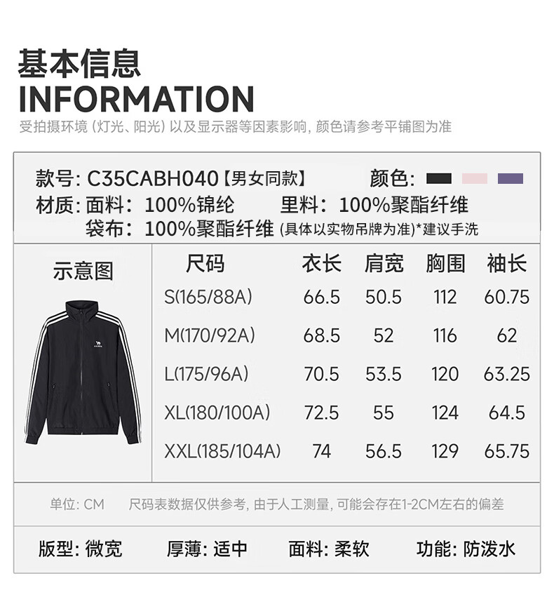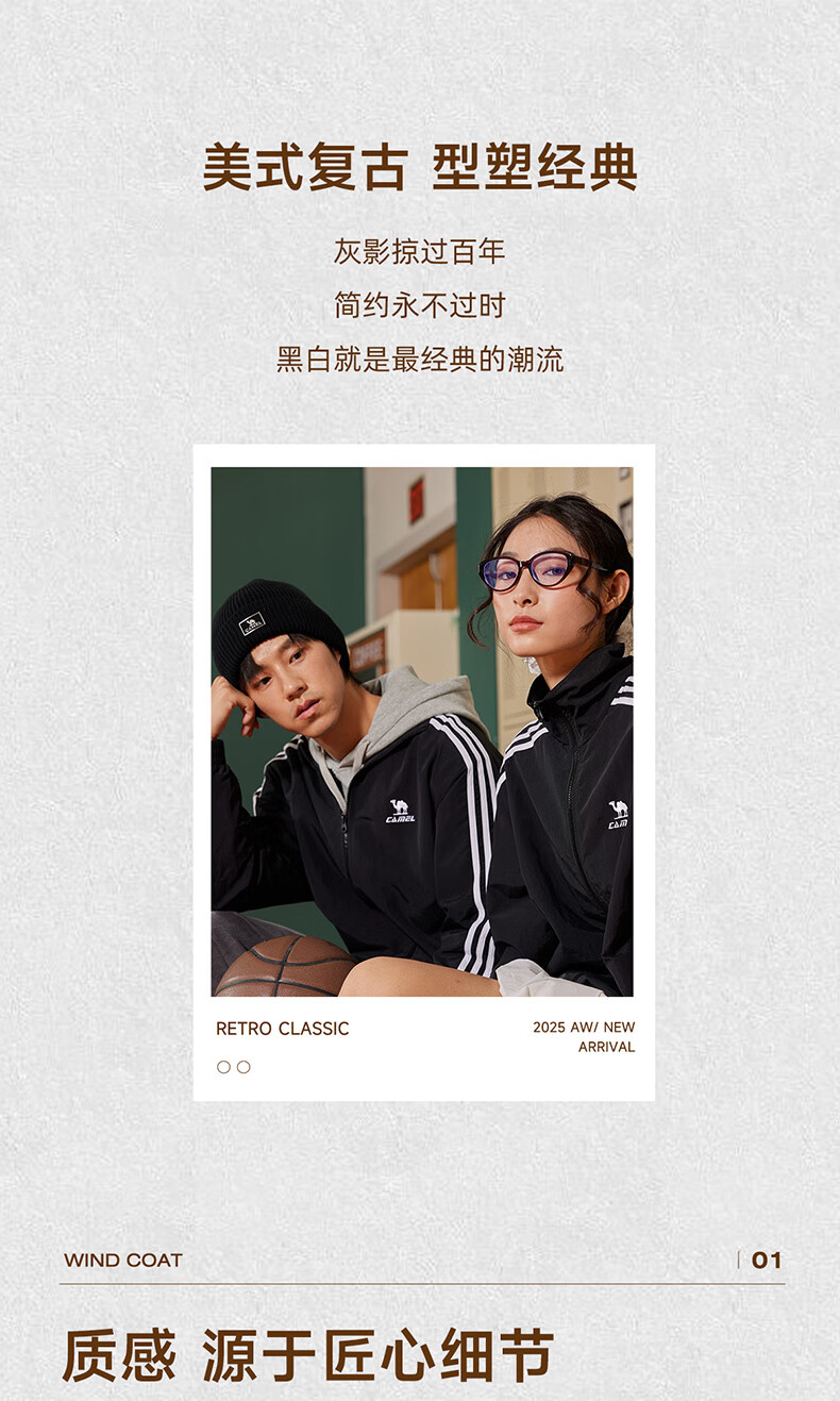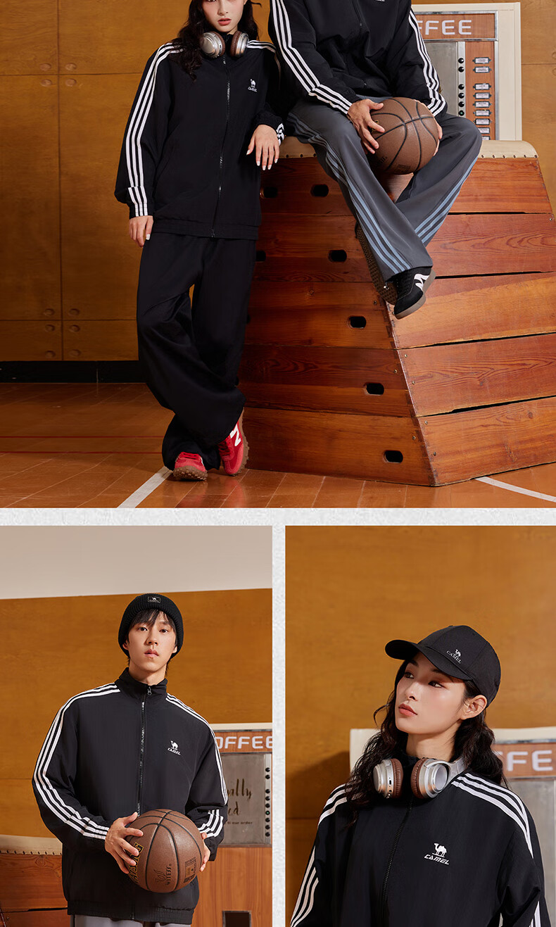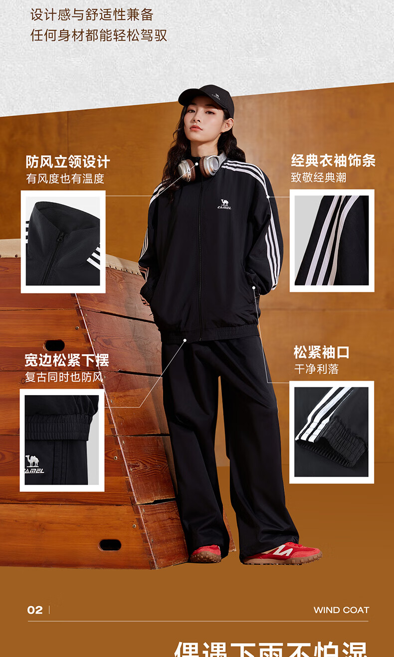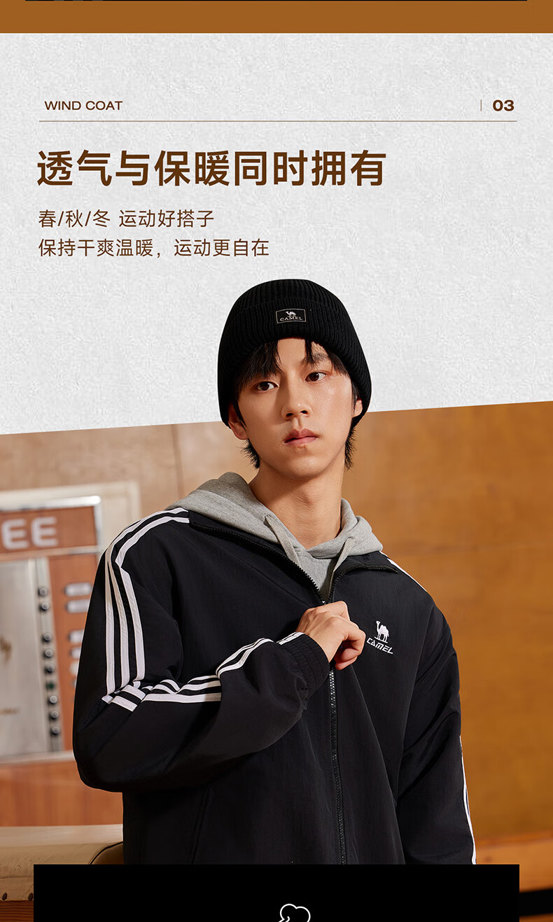 骆驼(CAMEL)校园风衣运动休闲立领春秋外套男女款 C35CABLH040 粉 L