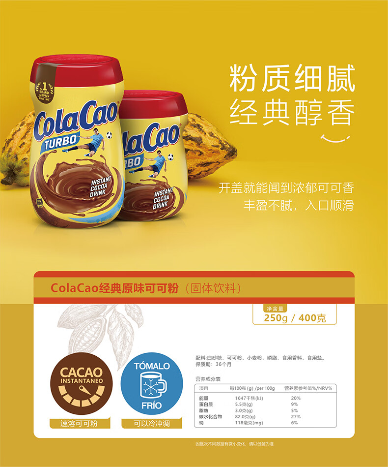 酷乐高 ColaCao西班牙进口童年经典原味可可粉 250g 牛奶冲泡年货高乐高