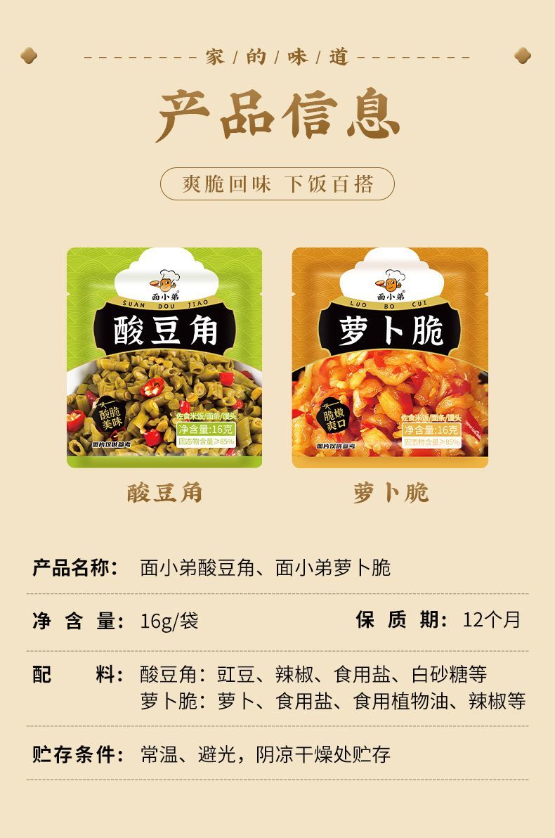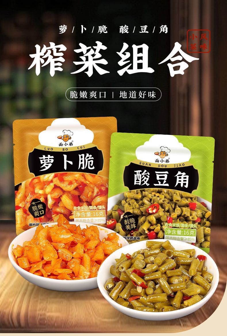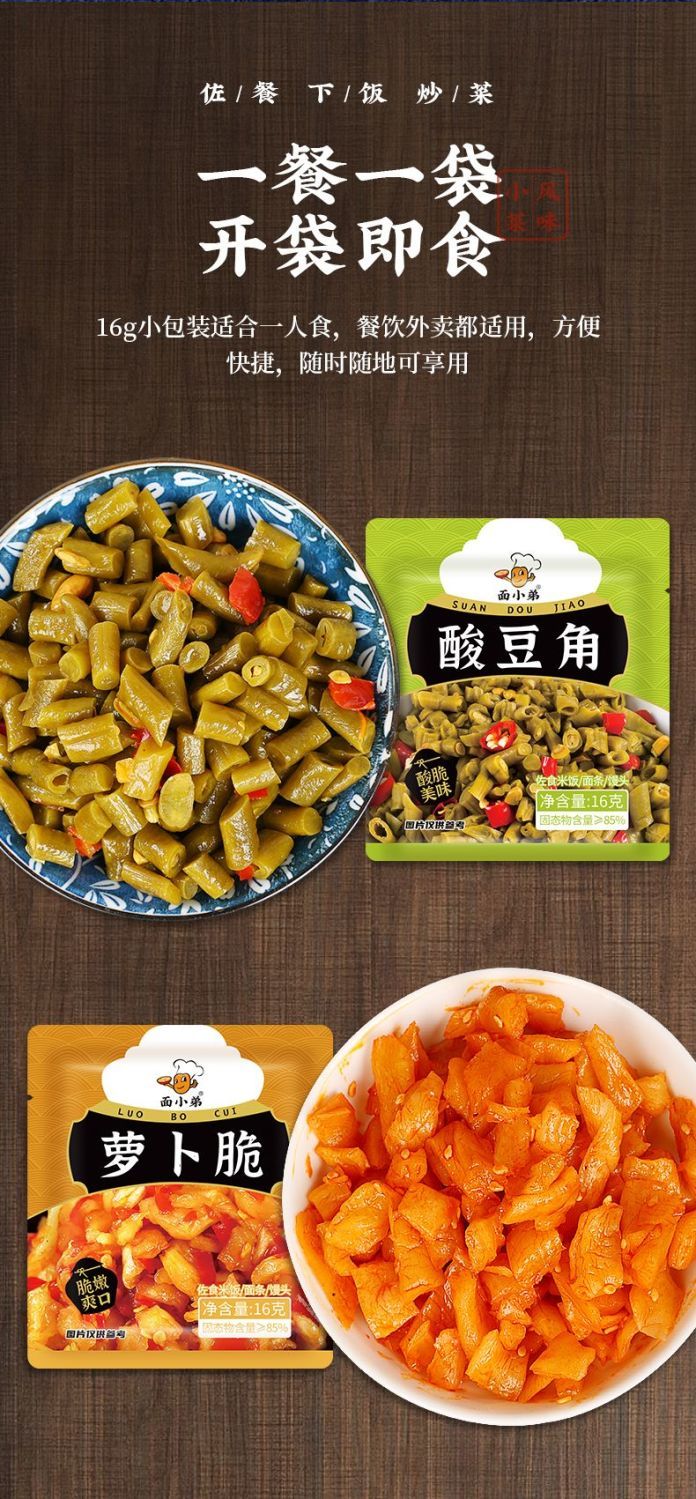 下饭菜香辣酸豆角萝卜干萝卜脆袋装小咸菜方便携带16g/袋 萝卜脆酸豆角混装10袋