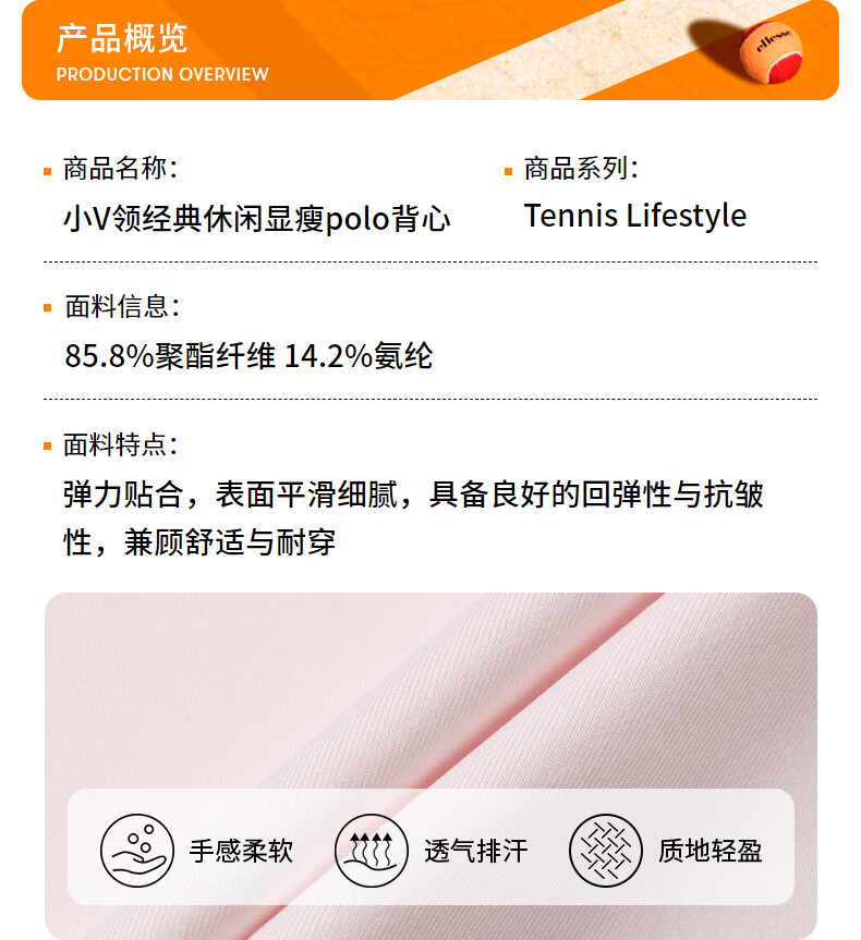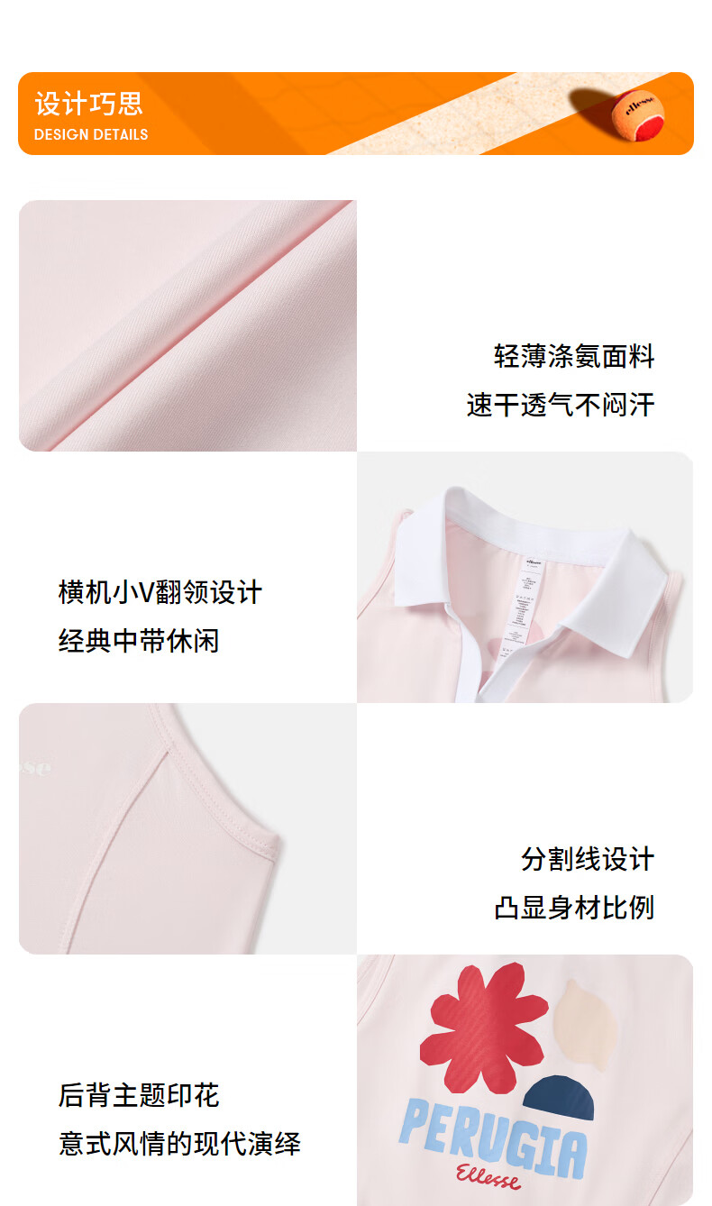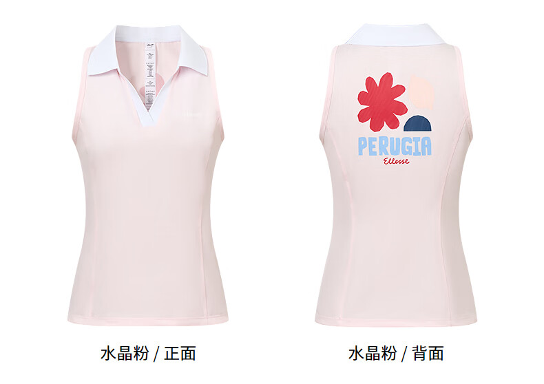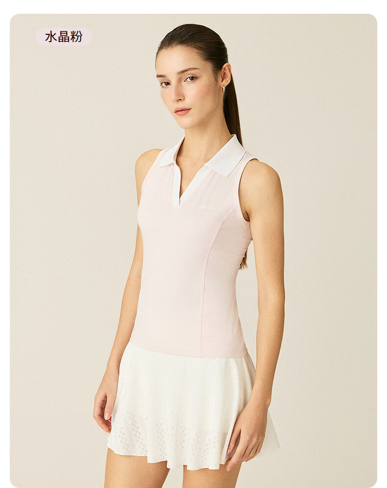 ellesse小贝壳26春新品网球服意式V领运动修身显瘦无袖polo背心女 水晶粉 M