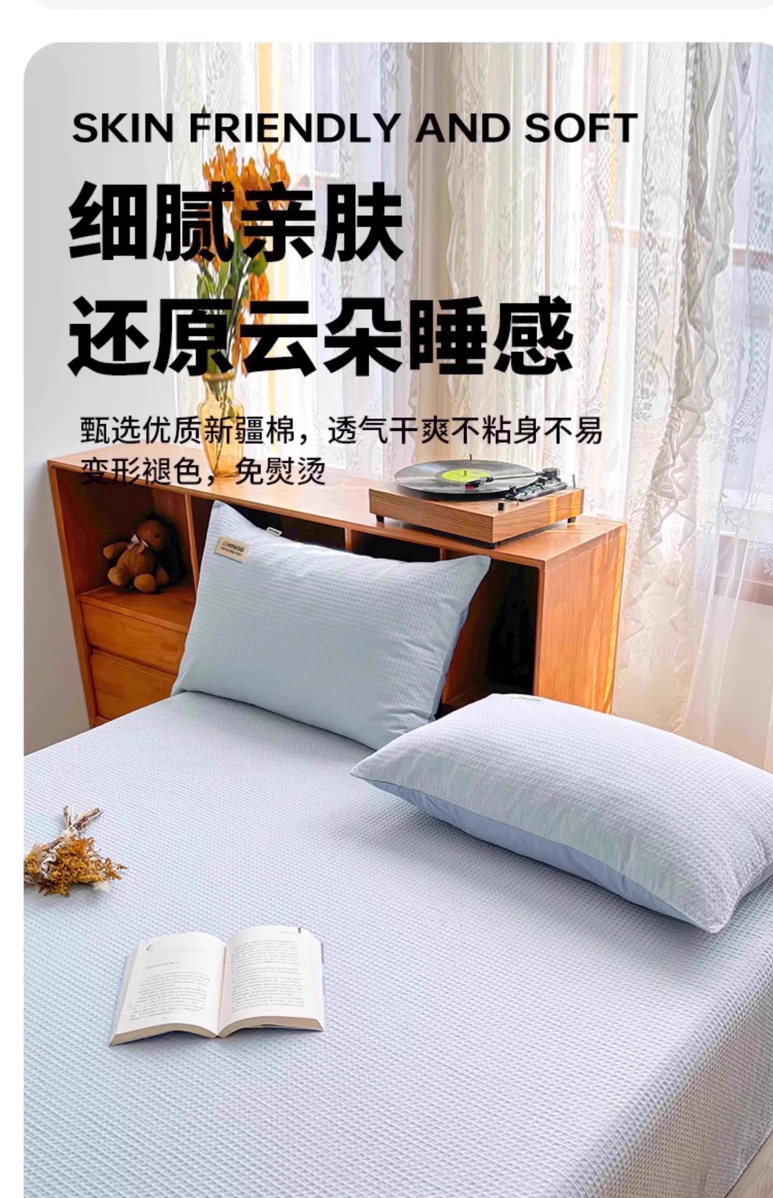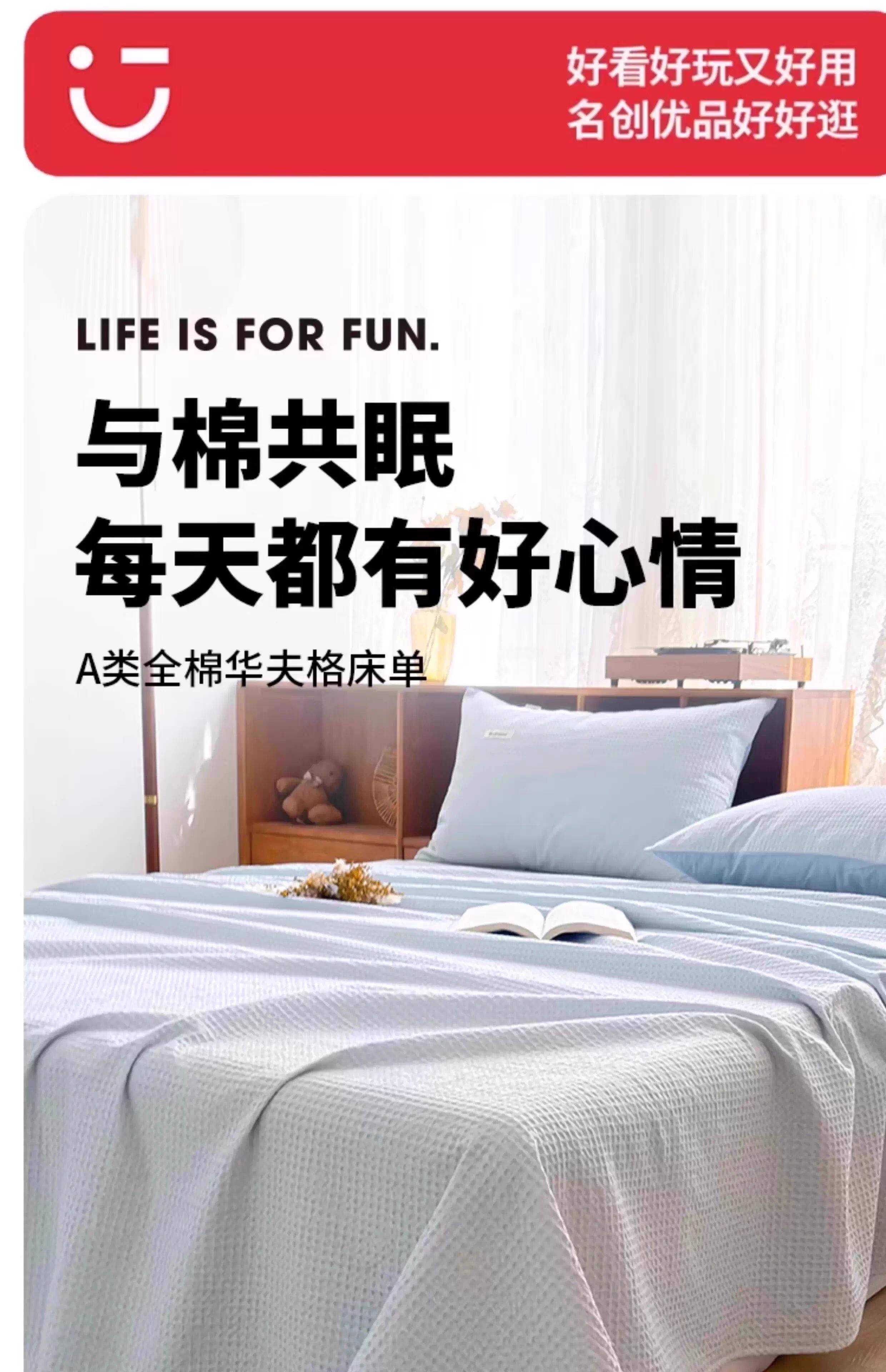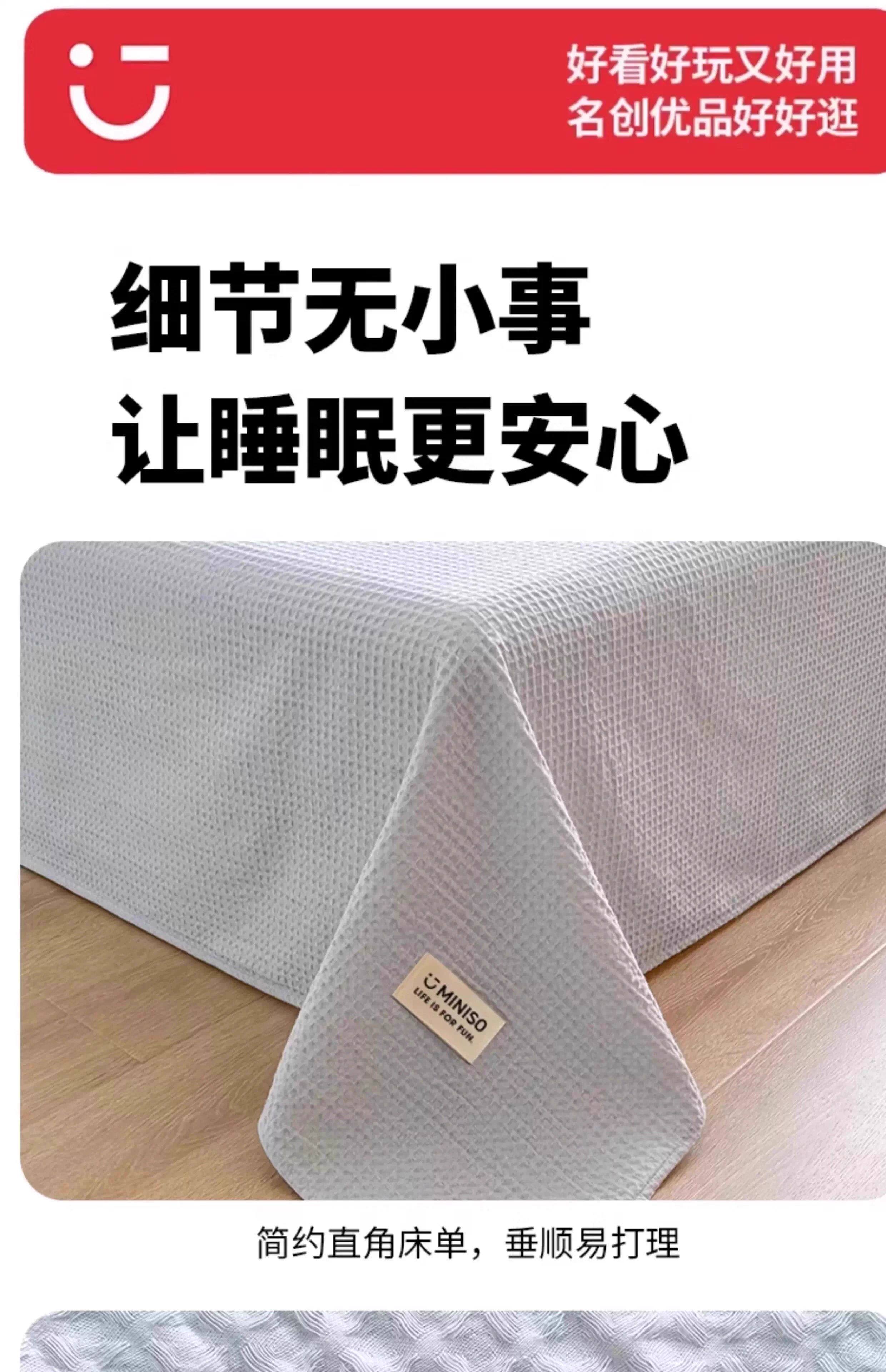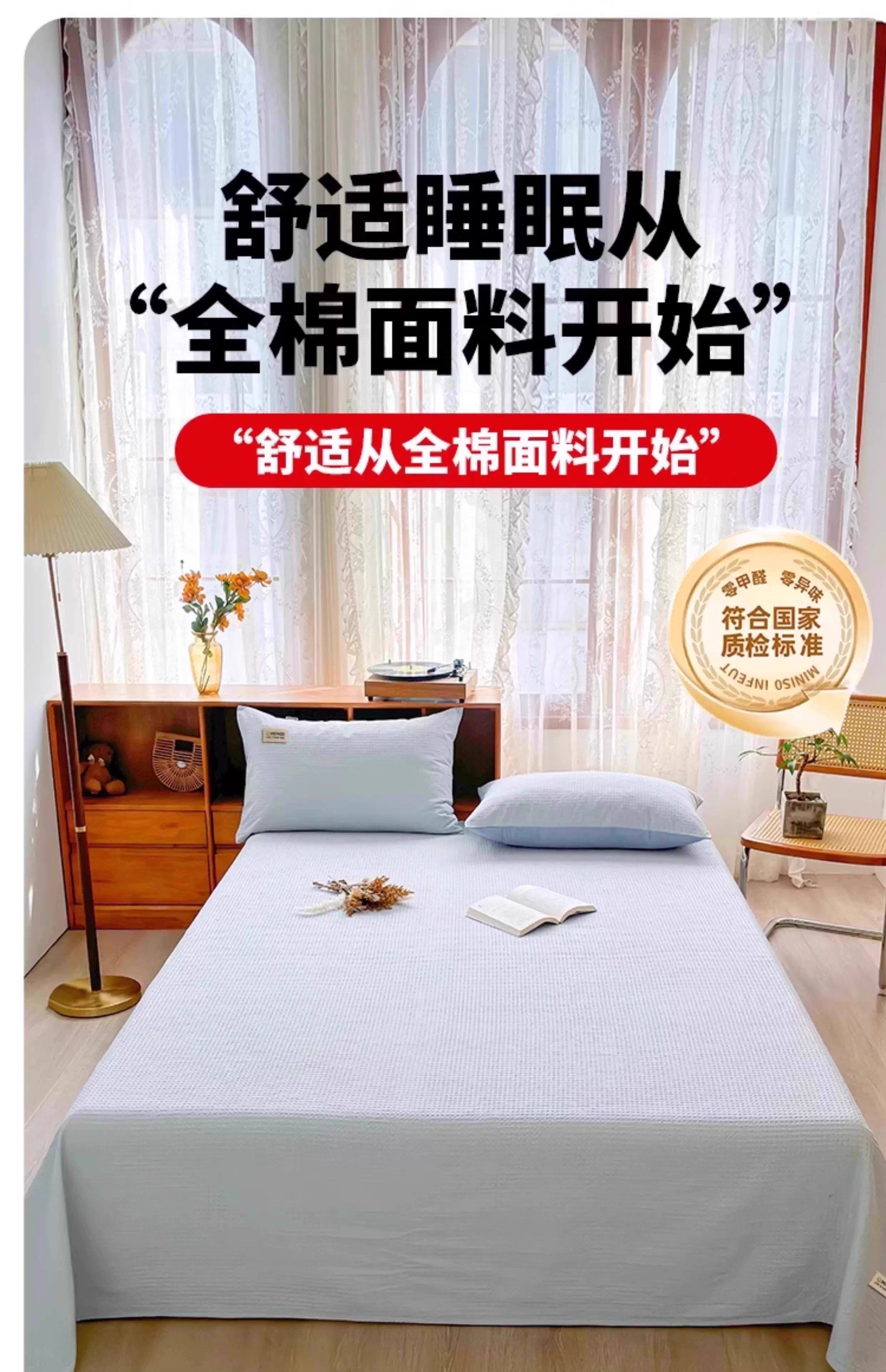 名创优品(MINISO)纯棉华夫格床单1.5米x2米 全棉水洗棉被单枕套单双人床品三件套 miniso-奶黄色 160cm*235cm 单床单【适1.2床】