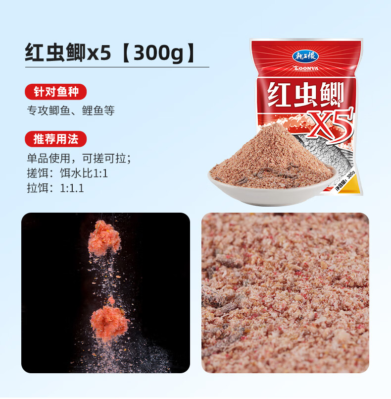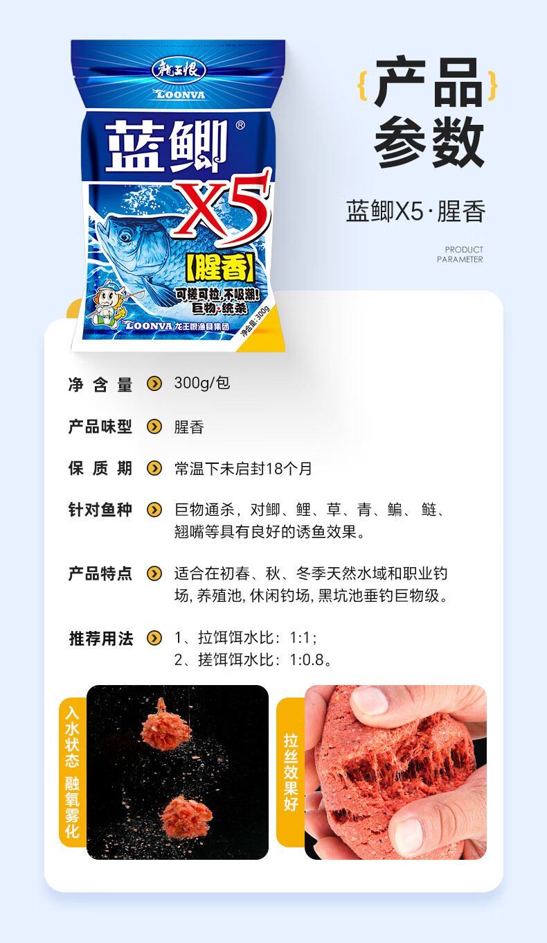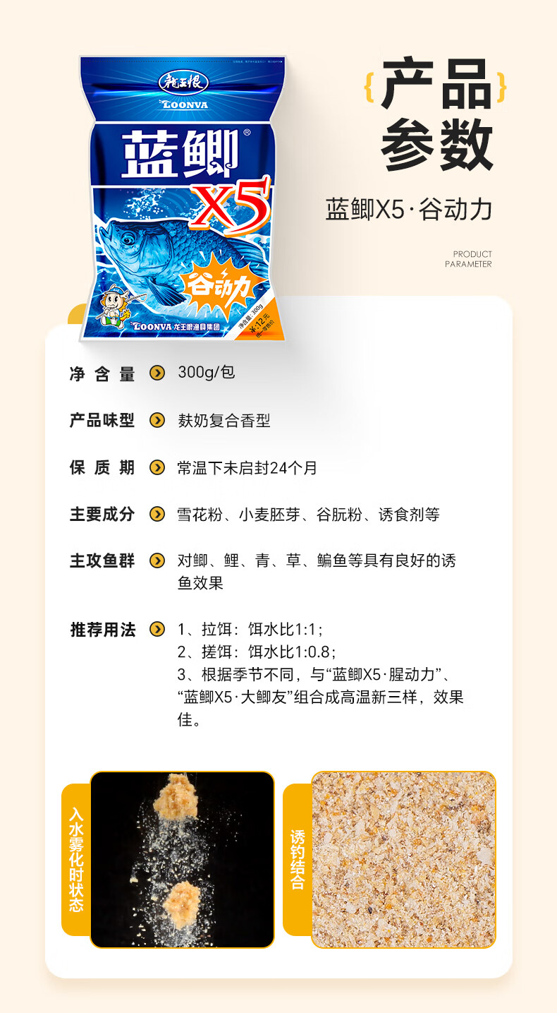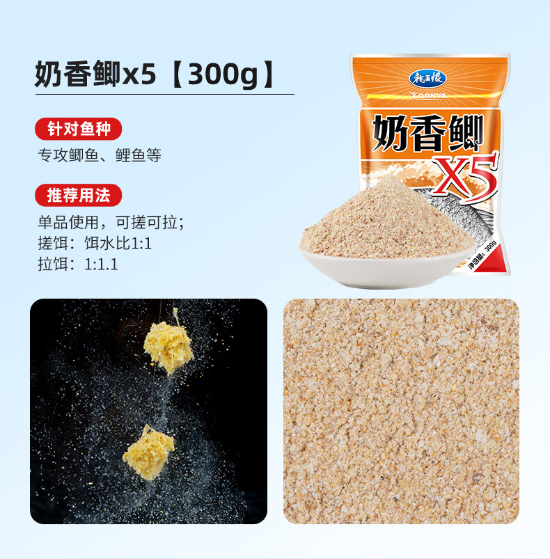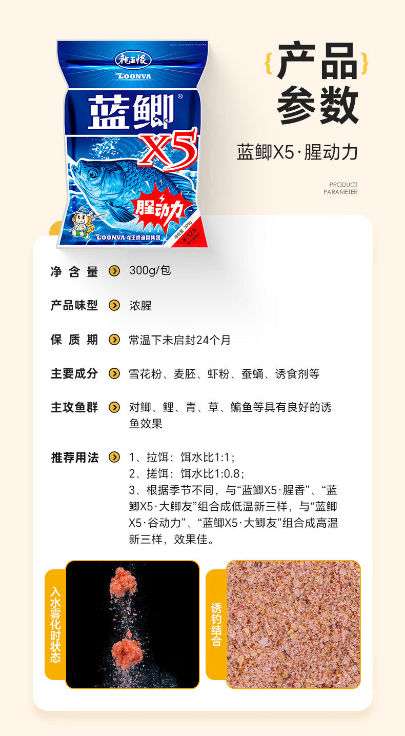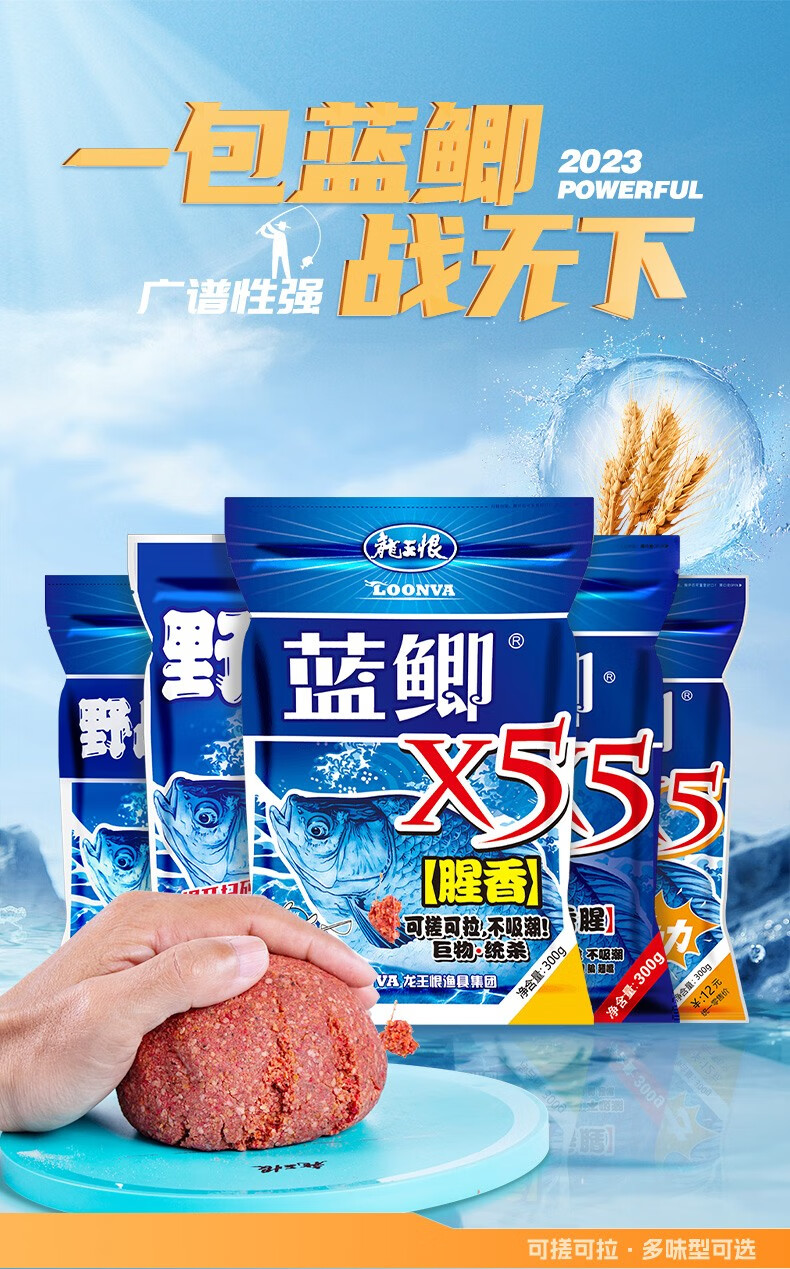 龙王恨鱼饵蓝鲫X5青春版腥香饵江河黑坑野钓鲫鲤草鳊鱼通杀钓鱼饵料 蓝鲫X5-腥香(300g/1包)