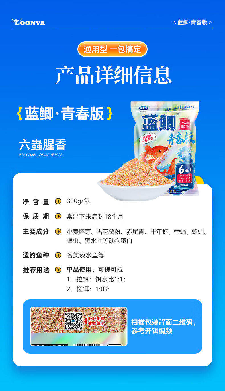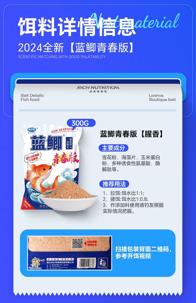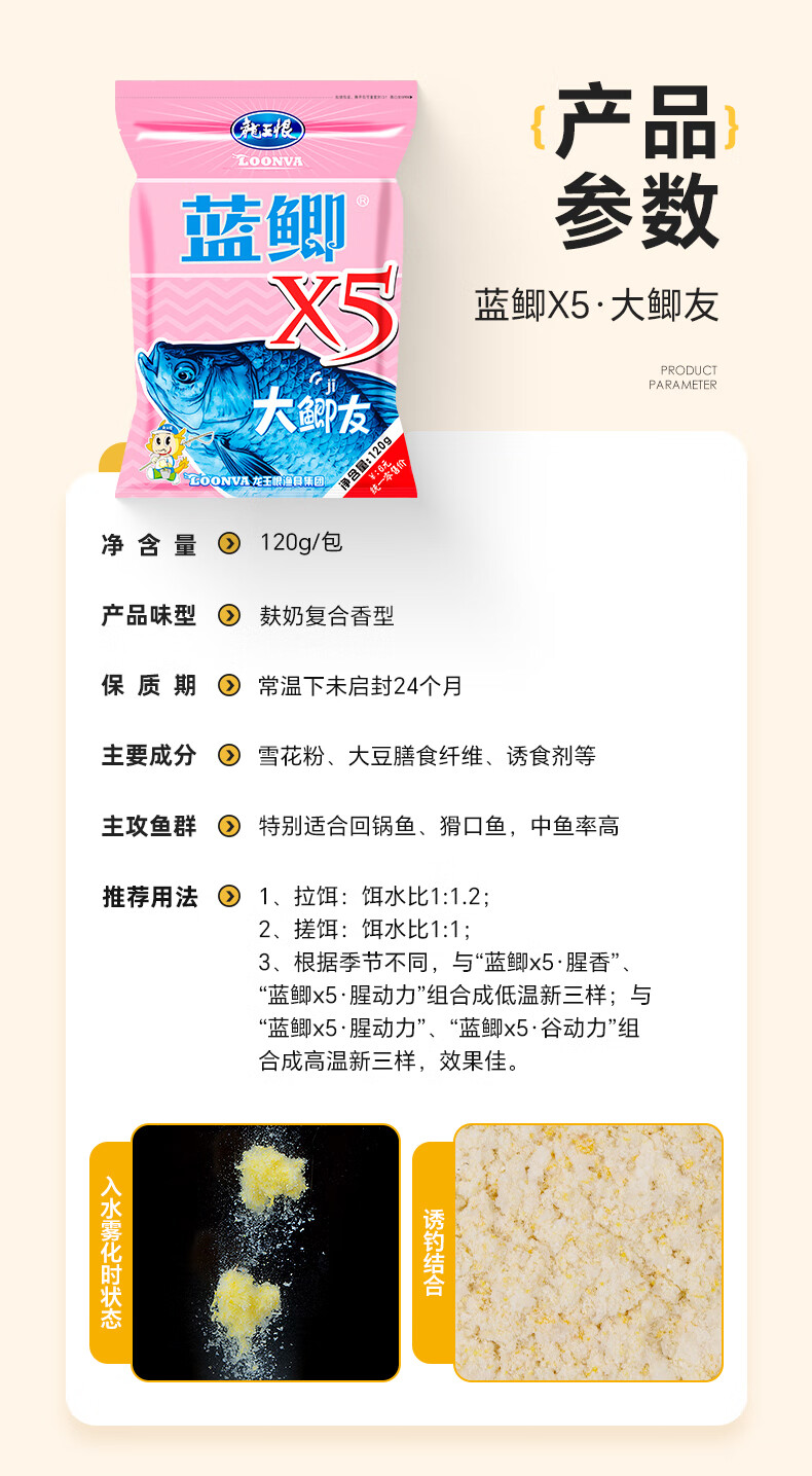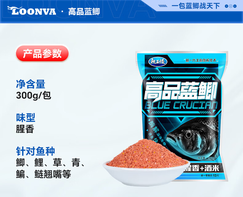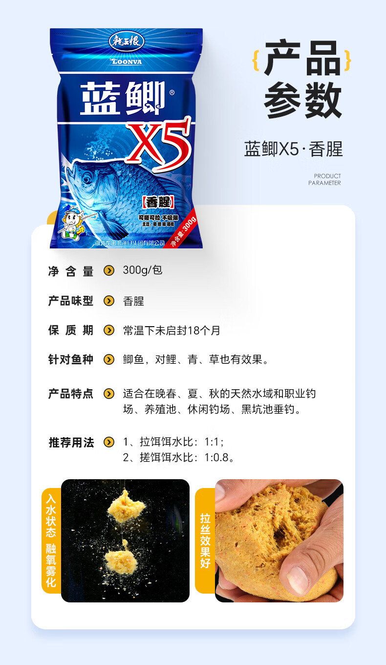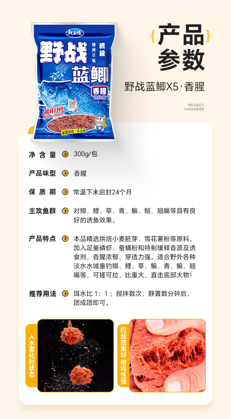 龙王恨鱼饵蓝鲫X5青春版腥香饵江河黑坑野钓鲫鲤草鳊鱼通杀钓鱼饵料 蓝鲫X5-腥香(300g/1包)