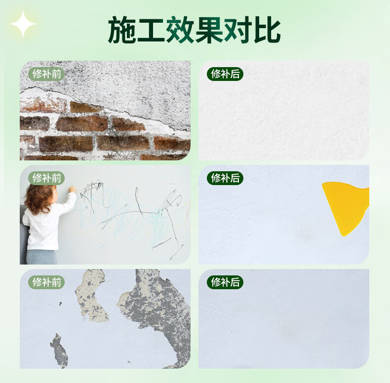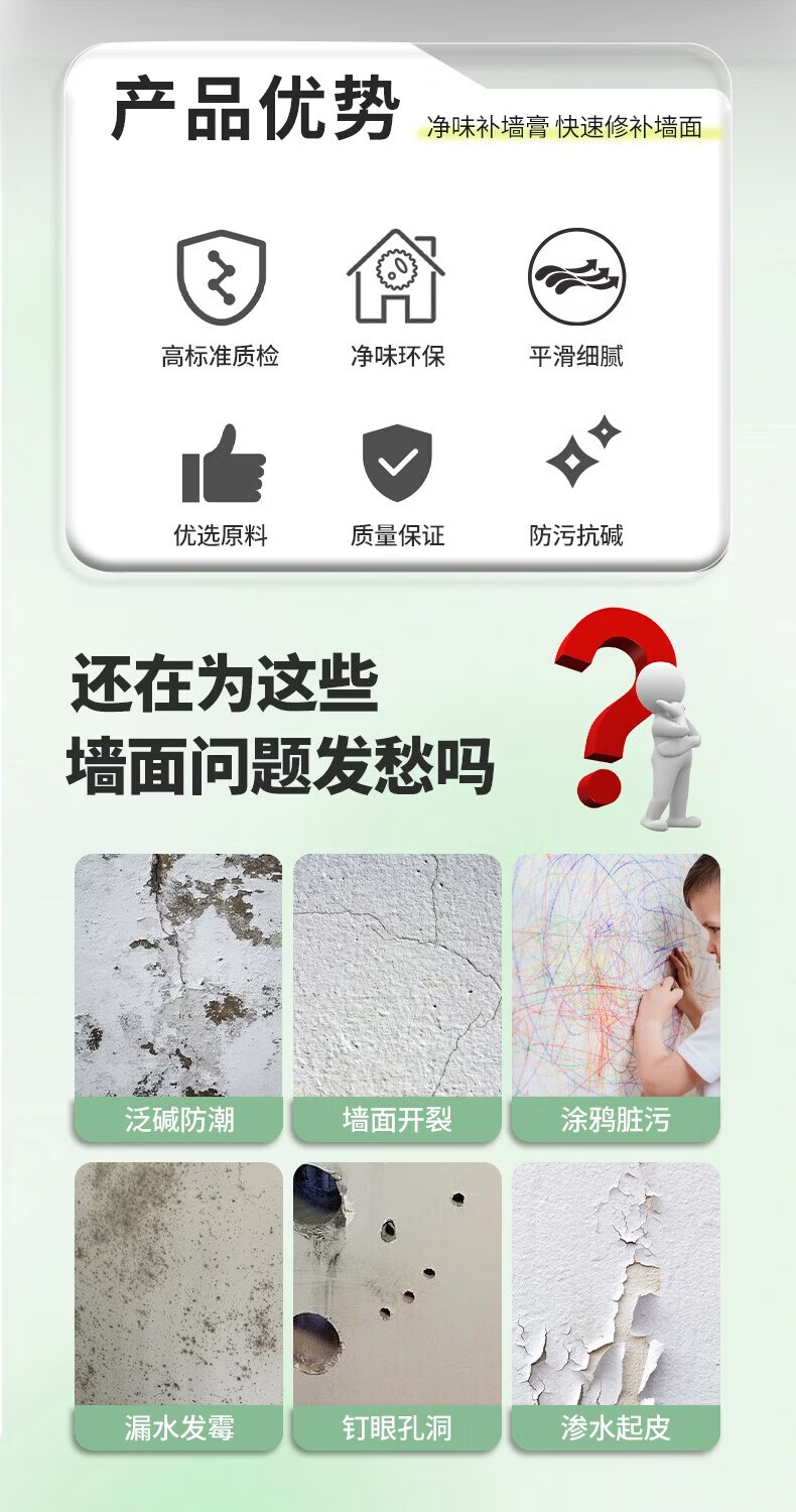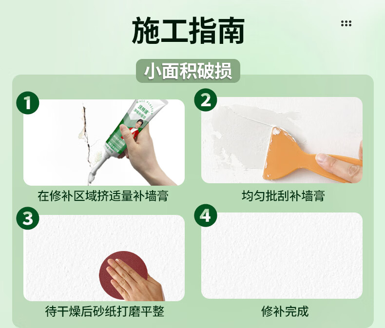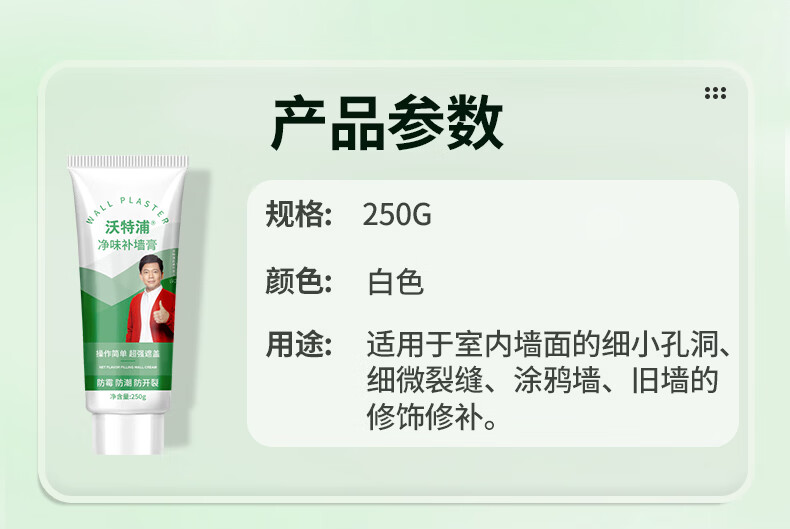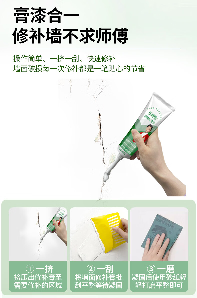沃特浦墙面修复补墙膏家用白墙裂缝漆墙壁腻子墙体开裂修补填坑补洞神器 【净味无味】补墙膏250g1只 送全套工具 250g*1件