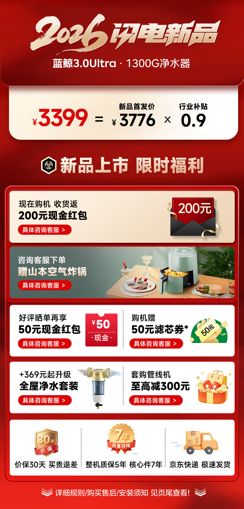 史密斯(A.O.SMITH)新品佳尼特净水器厨房专用台下用直饮机净水机饮水机家用过滤器【蓝鲸3.0Ultra】升级款CR2700AE3 升级真8年RO膜 长效恒滤48吨