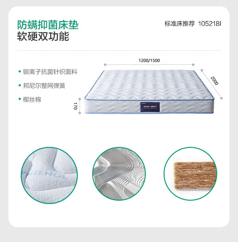 全友家居0胶水天然乳胶床垫记忆棉独立装袋弹簧席梦思床垫全身可拆洗 【0胶水+全拆可调节+母婴级面料】床垫(厚23cm) 1.5x2米