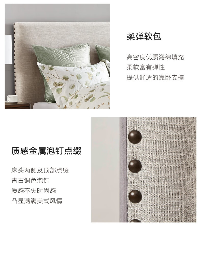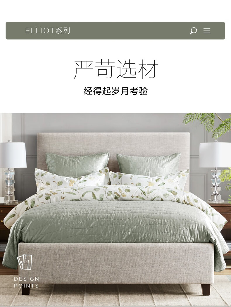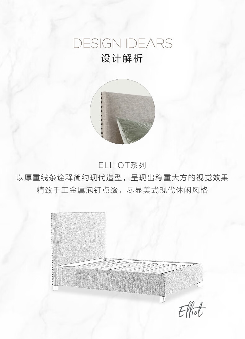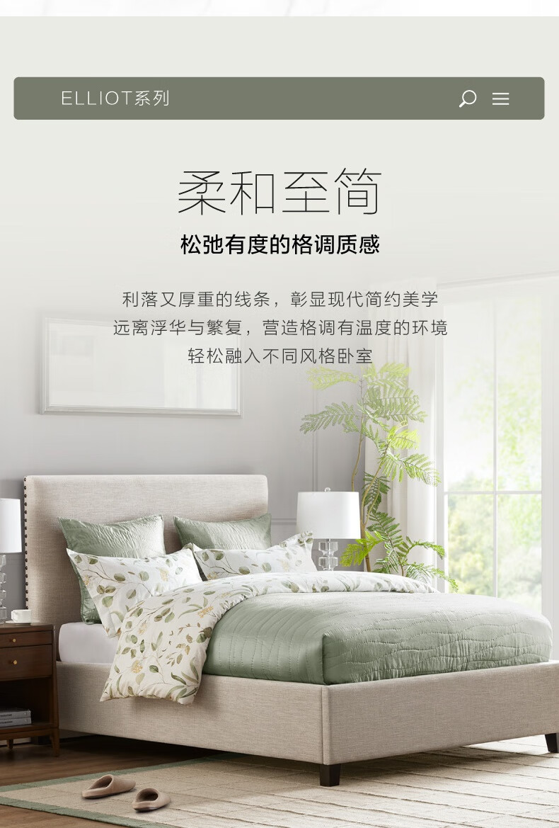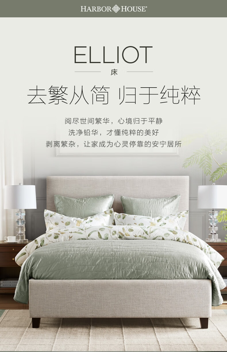 Harbor House【政府补贴】美式田园风布艺床卧室大床实木框架家居双人床Elliot 1.5M【田园软包实木双人床】