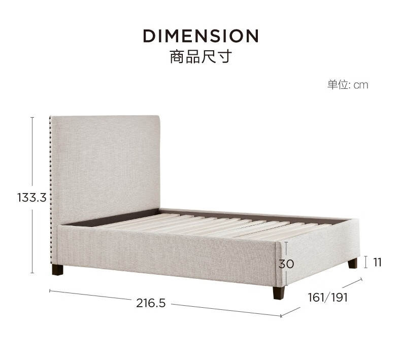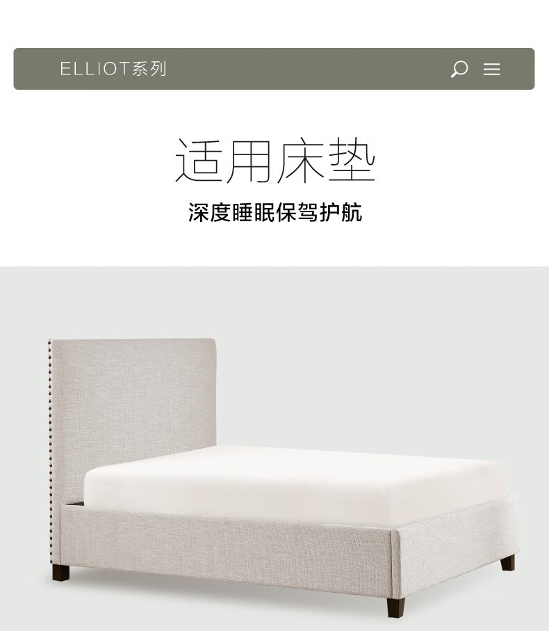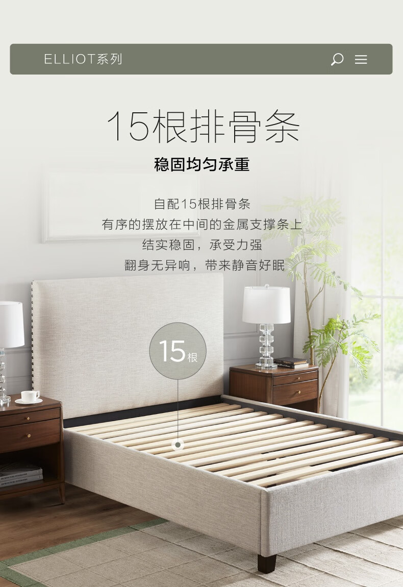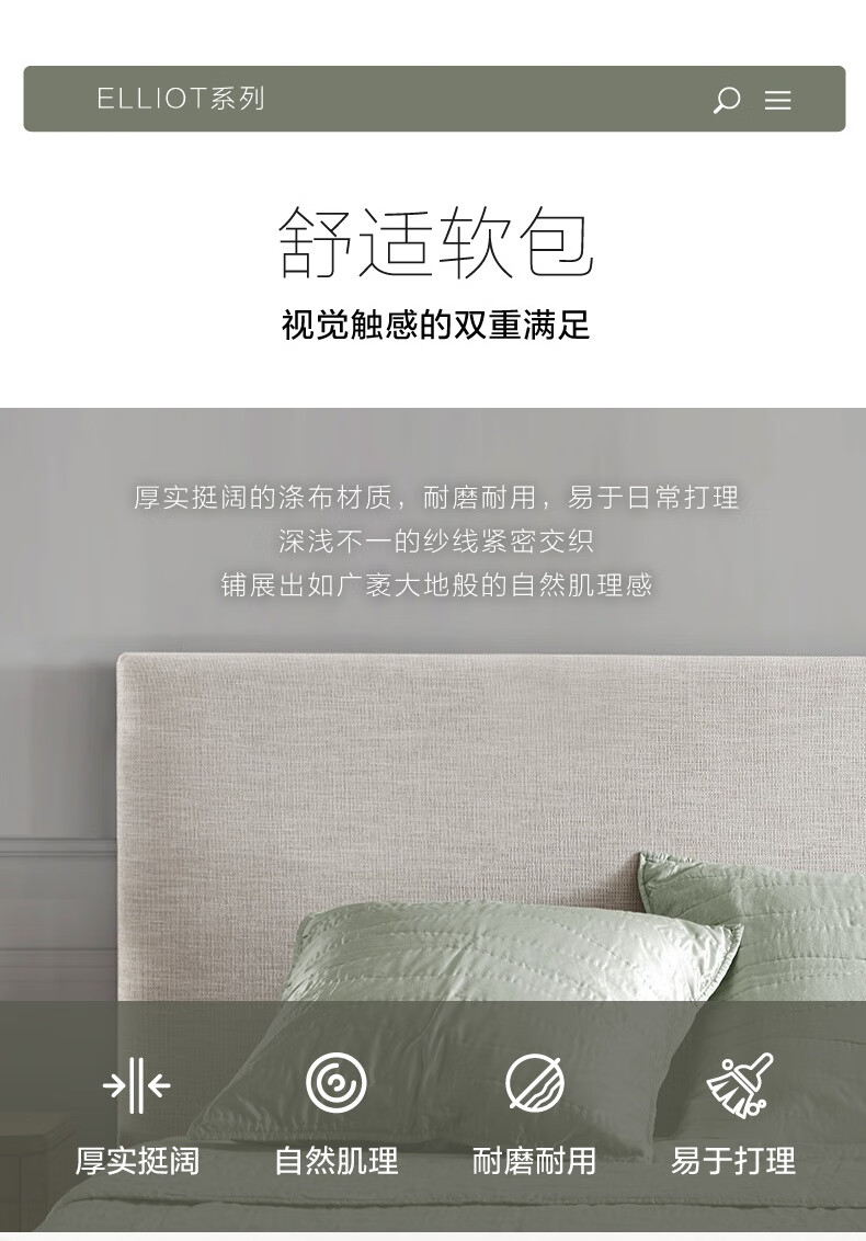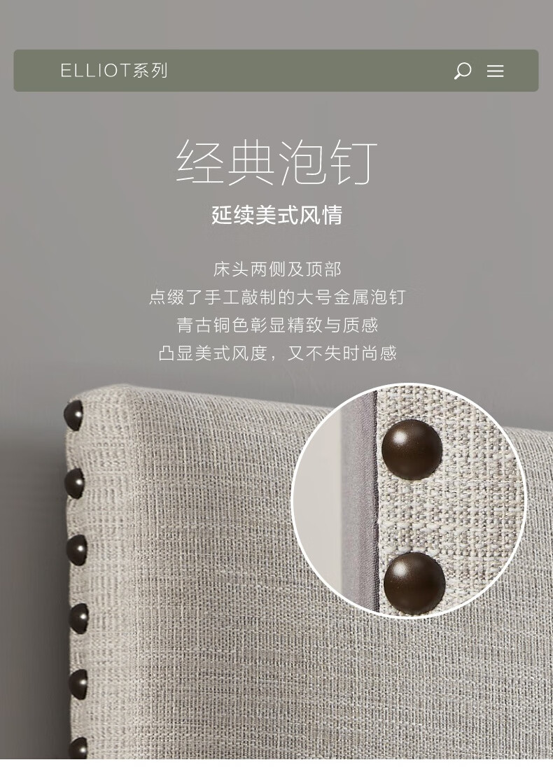 Harbor House【政府补贴】美式田园风布艺床卧室大床实木框架家居双人床Elliot 1.5M【田园软包实木双人床】