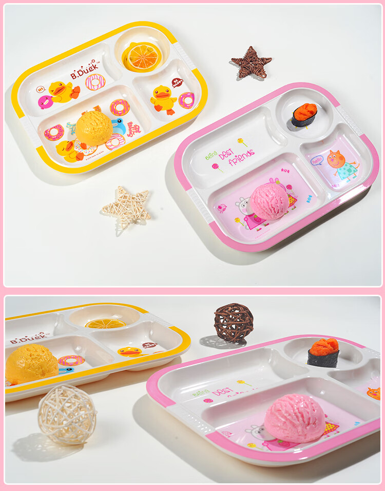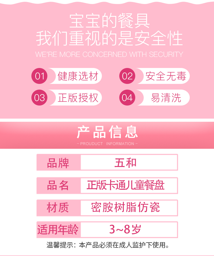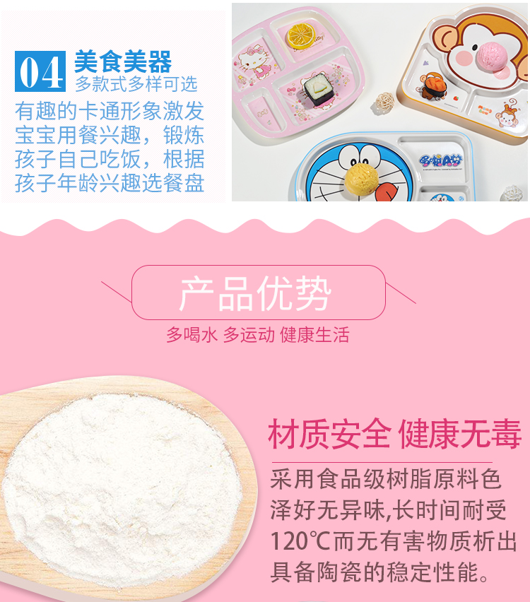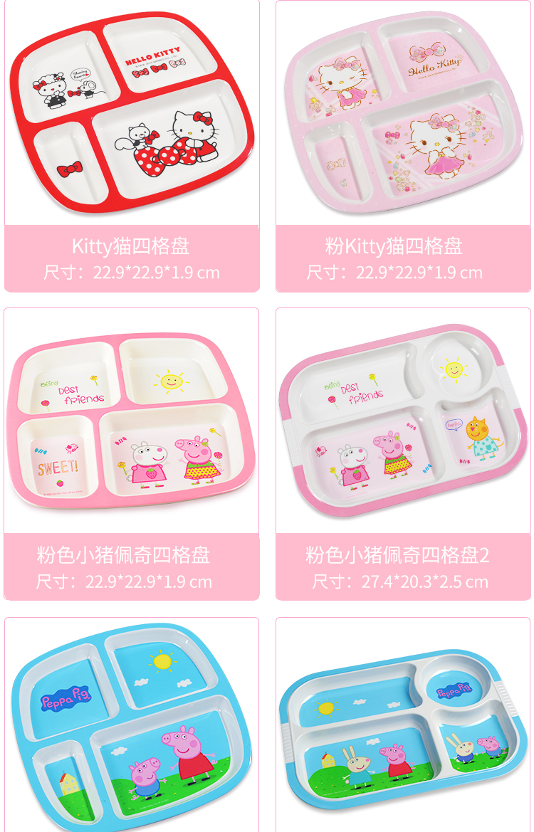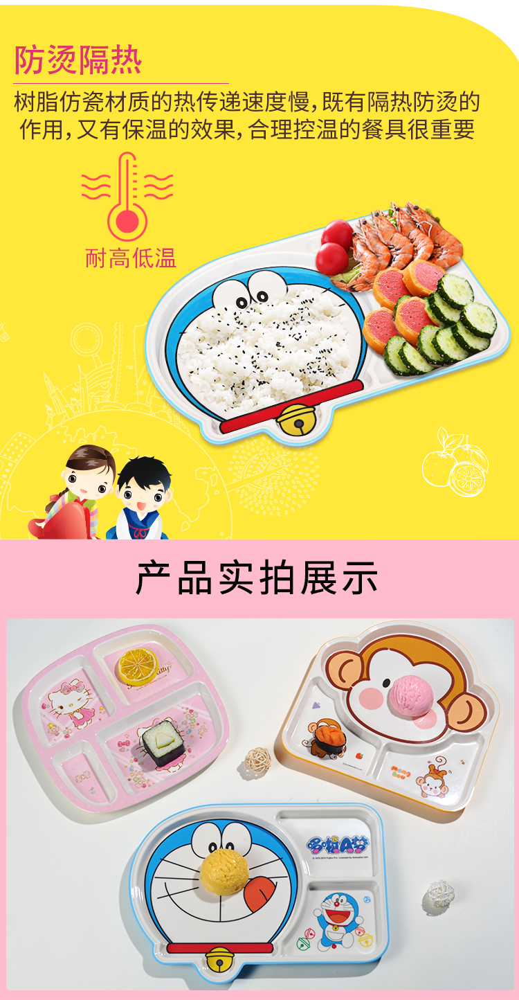 五和儿童餐盘仿陶瓷卡通儿童餐具密胺材质宝宝分隔餐盘婴儿辅食盘碗 奥特曼三格餐盘赠勺子