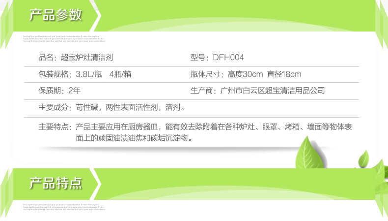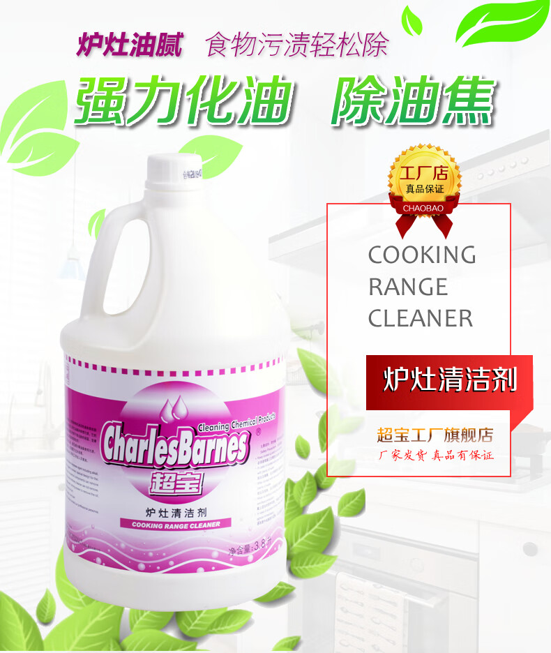 超宝炉灶清洁剂3.8升大瓶厨房台面墙面油烟机清洗除油除垢清洗液 4瓶1箱装