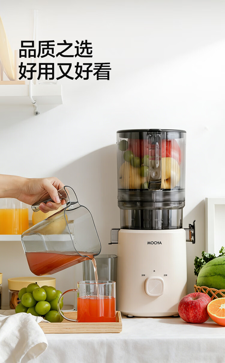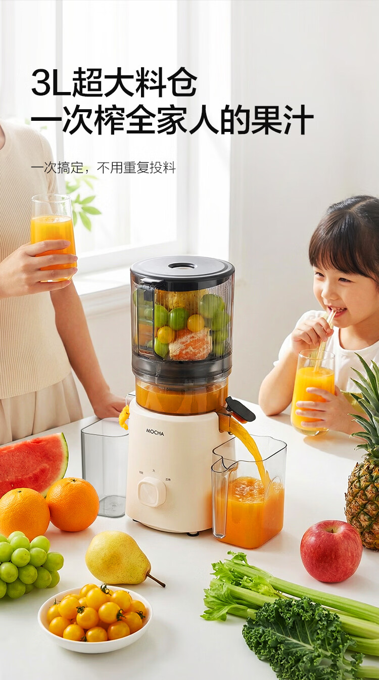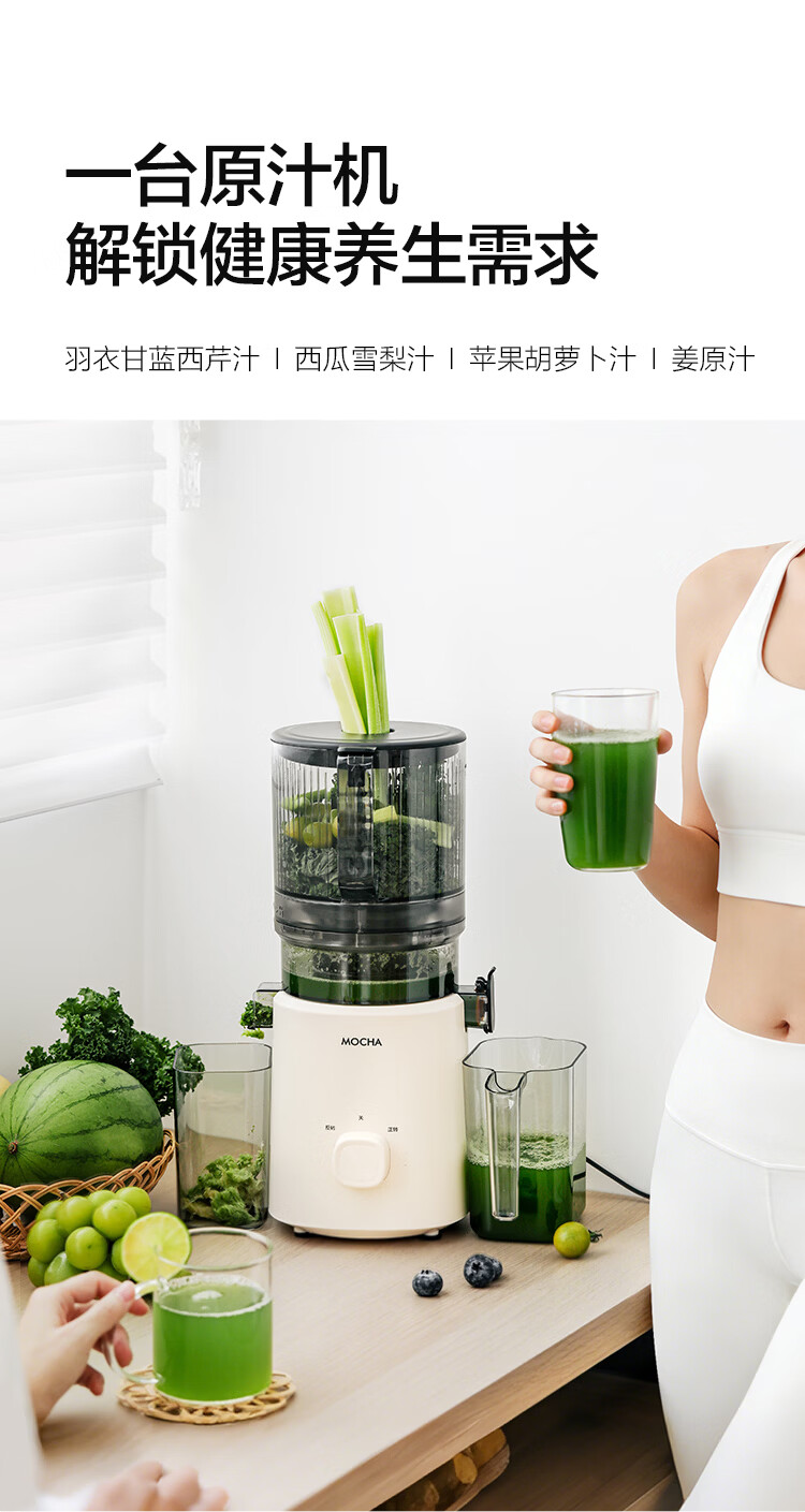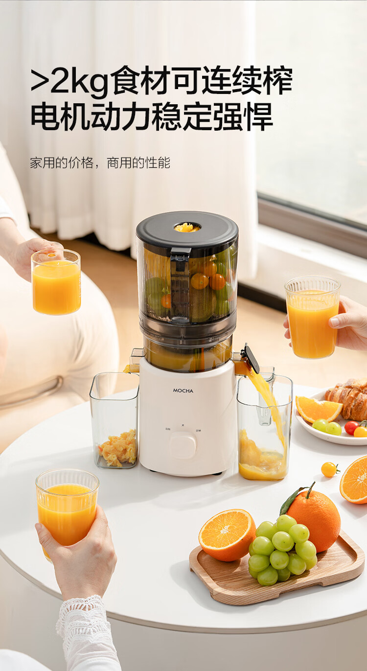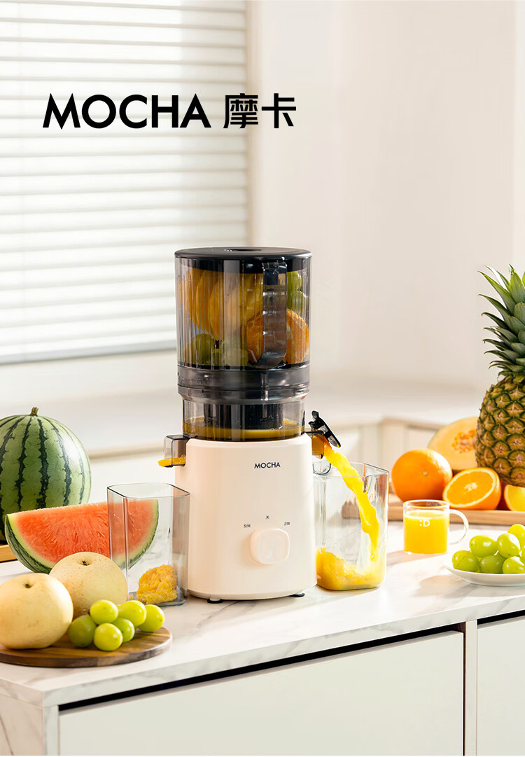 摩卡(MOCHA)榨汁机原汁机 汁渣分离家用大口径 低速水果蔬菜多功能鲜榨果汁机电动榨汁果蔬料理机 【热销爆款】178豆乳白-117MM大口径