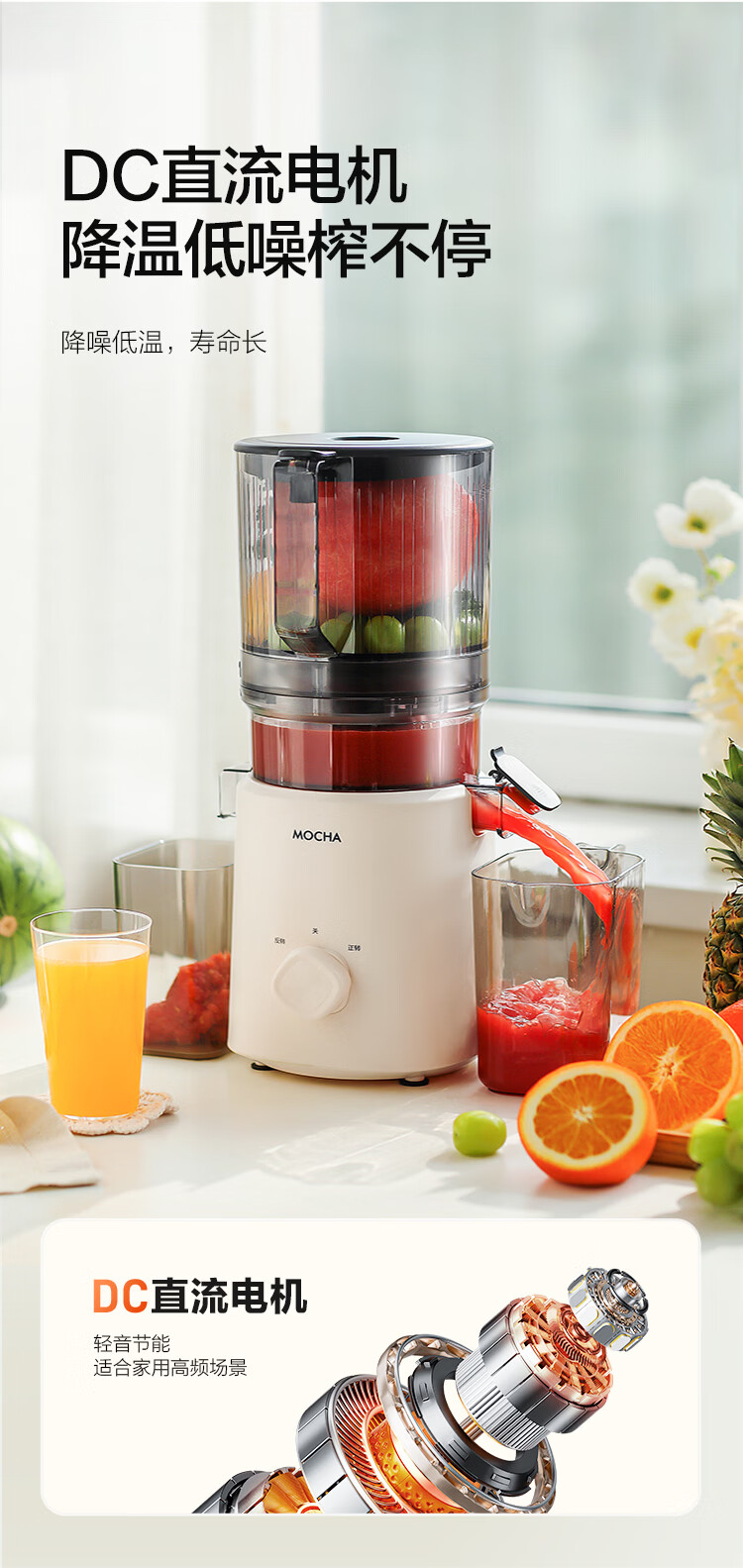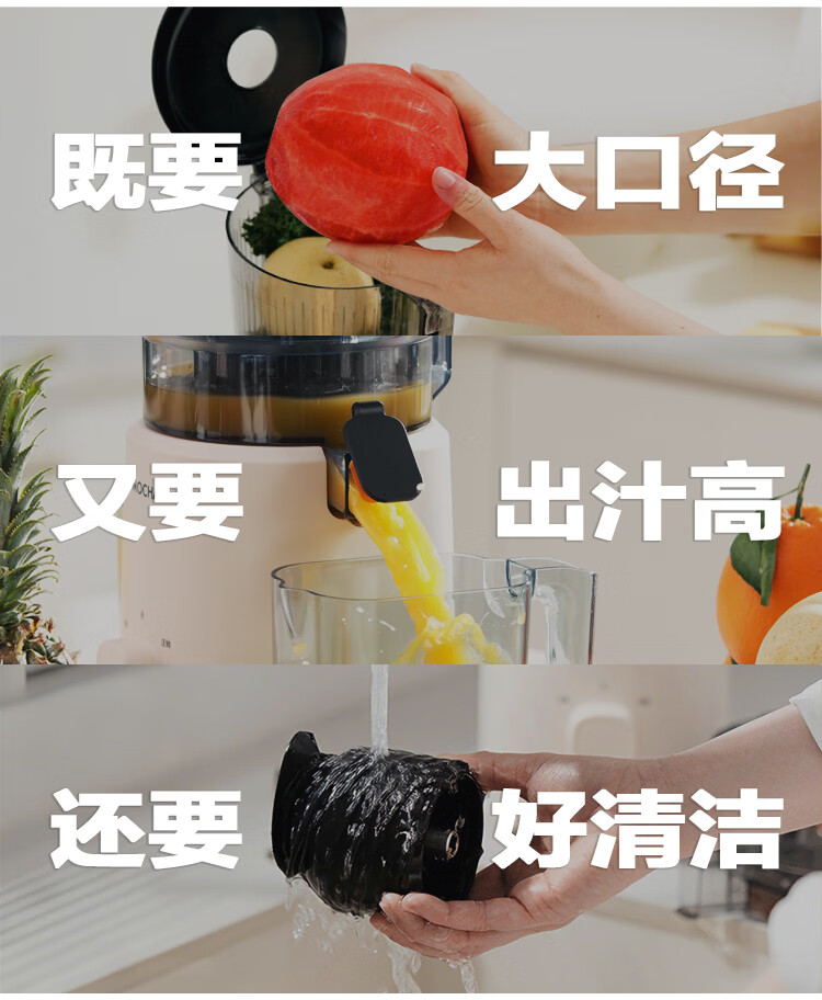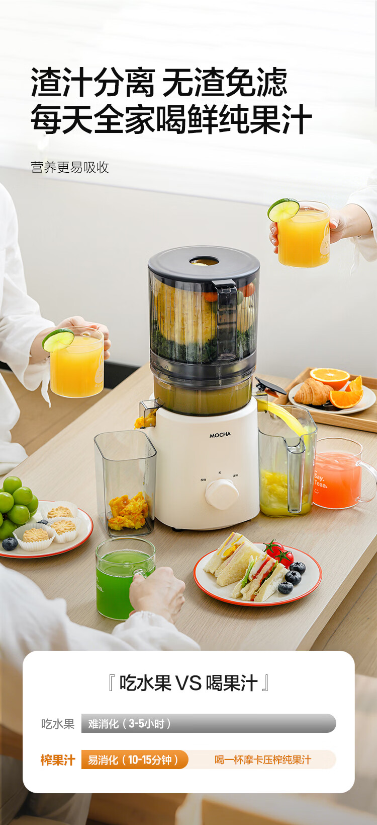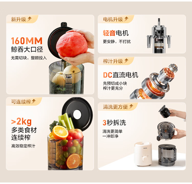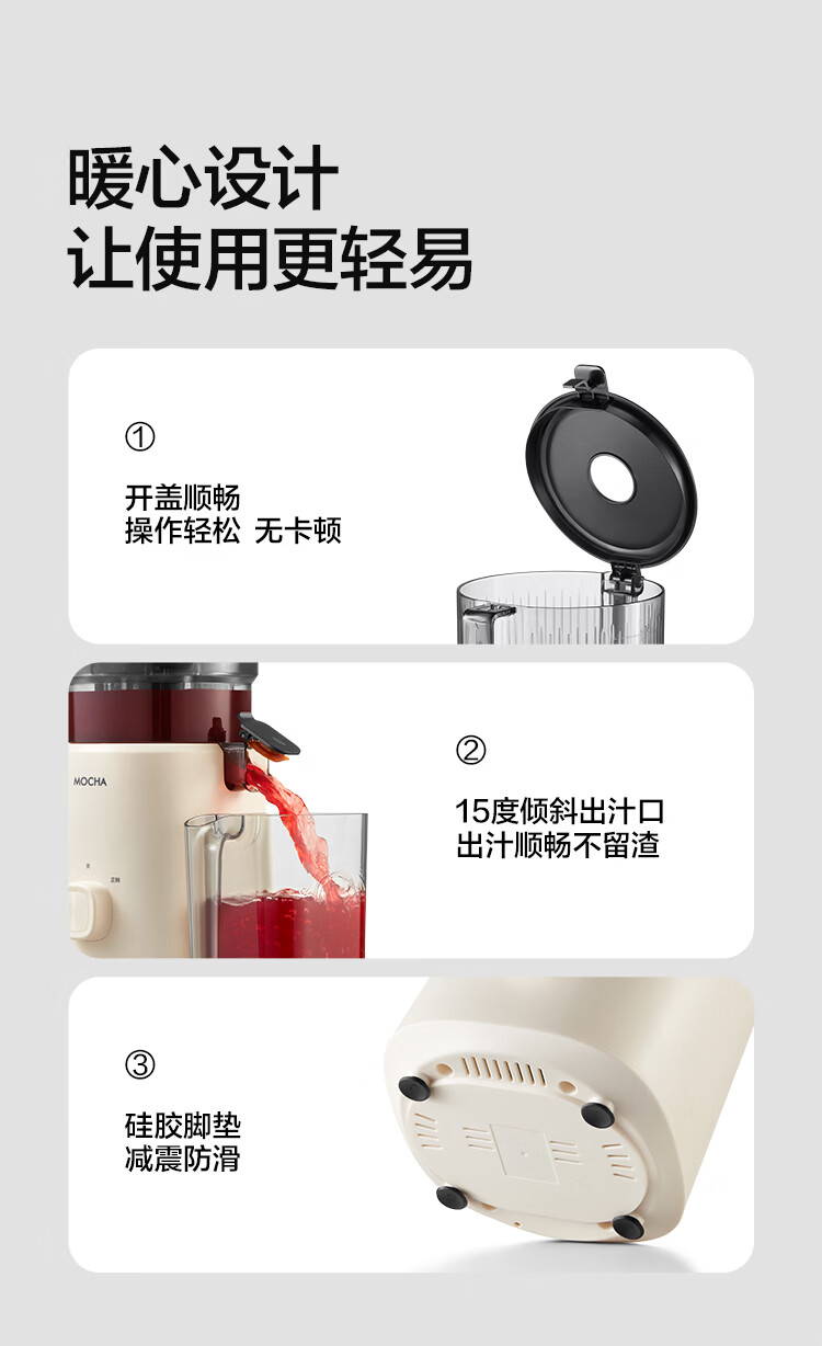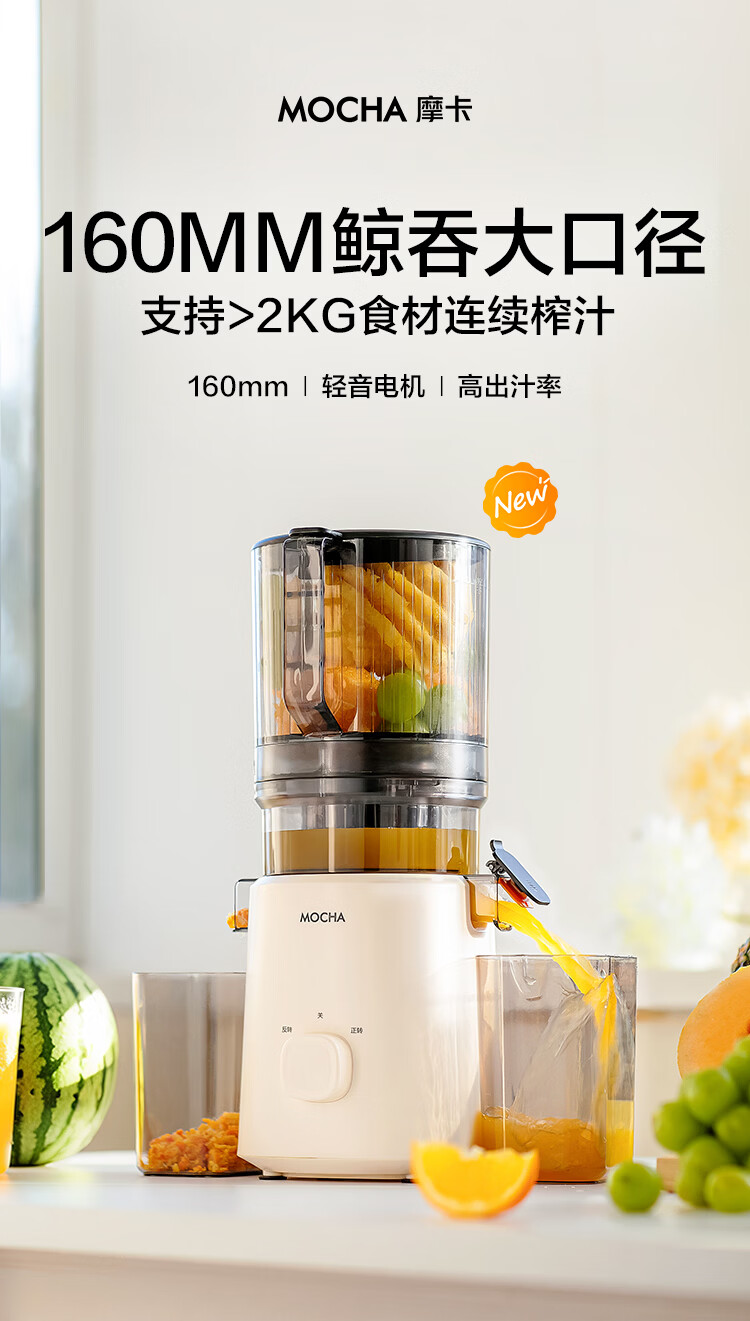 摩卡(MOCHA)榨汁机原汁机 汁渣分离家用大口径 低速水果蔬菜多功能鲜榨果汁机电动榨汁果蔬料理机 【热销爆款】178豆乳白-117MM大口径