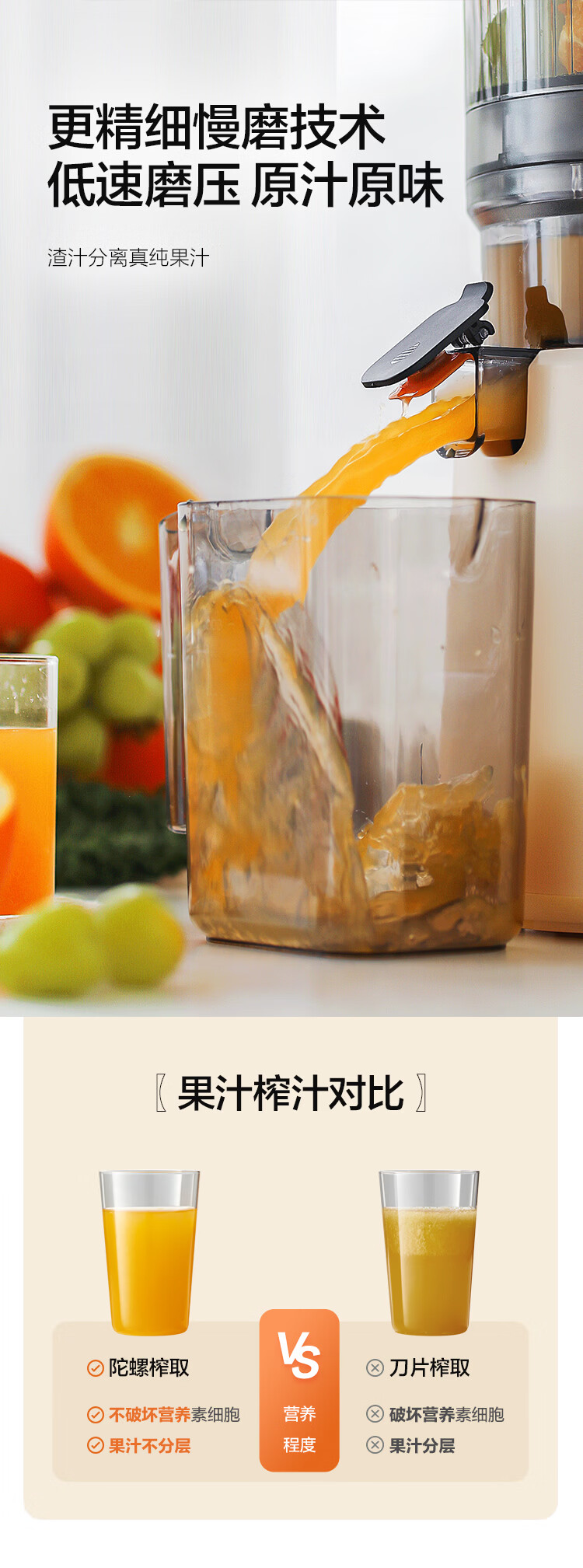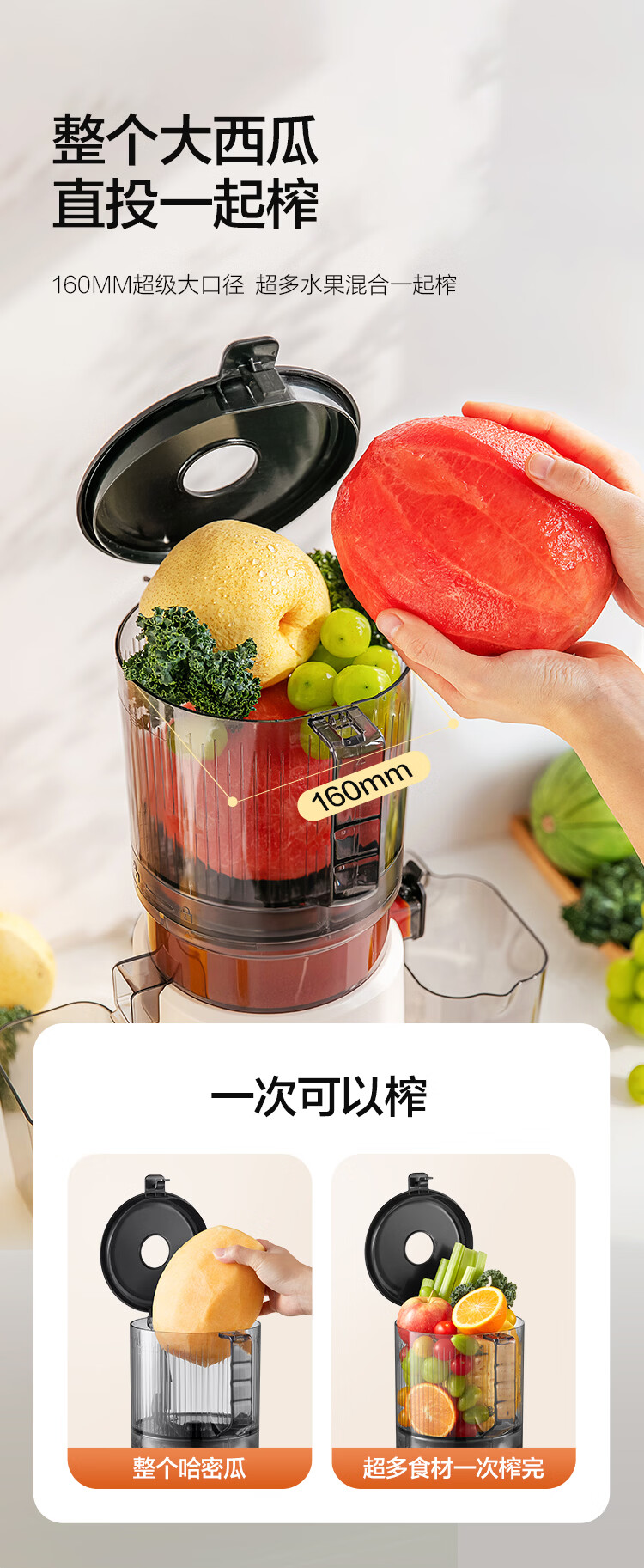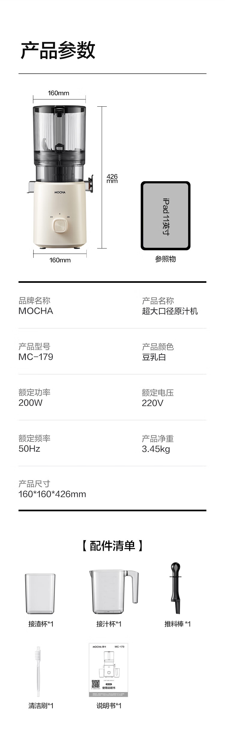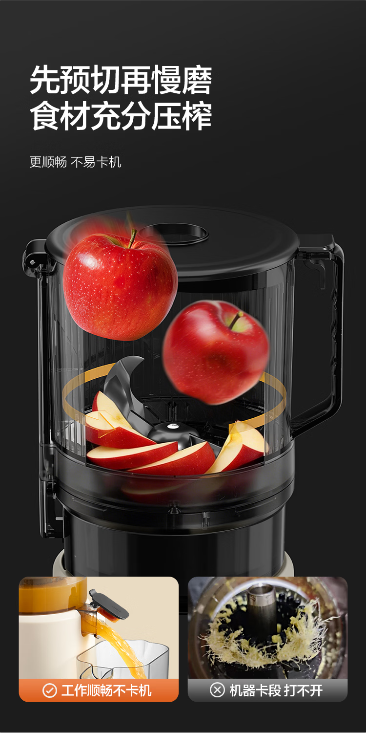 摩卡(MOCHA)榨汁机原汁机 汁渣分离家用大口径 低速水果蔬菜多功能鲜榨果汁机电动榨汁果蔬料理机 【热销爆款】178豆乳白-117MM大口径