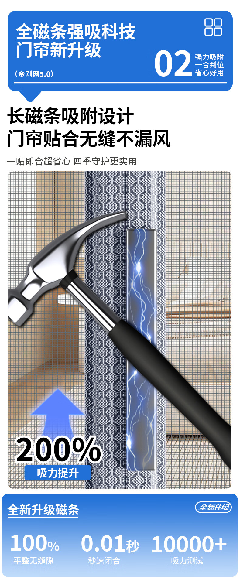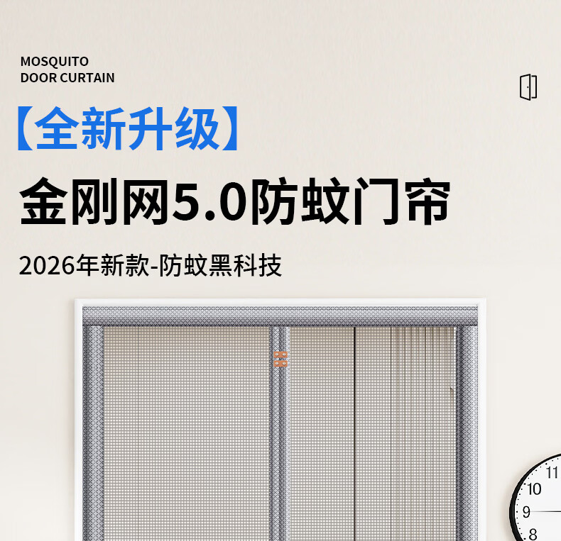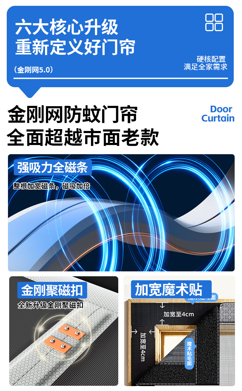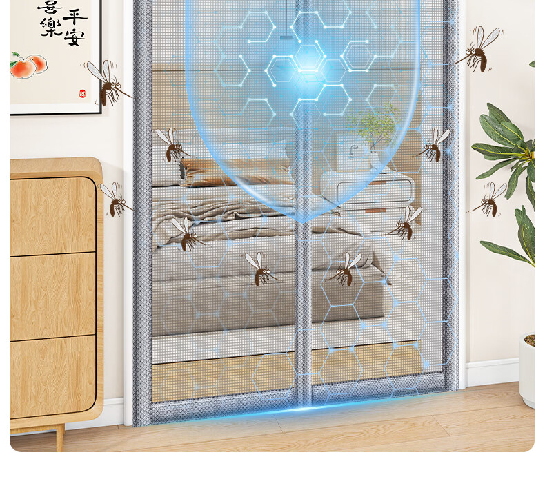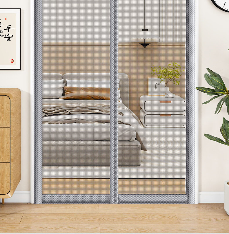 舒帘侧开全磁条防蚊门帘纱窗入户门防盗门纱帘磁吸夏季金刚网免打孔 条纹灰【金刚网】9*4加粗大磁条 110*210cm【宽*高】