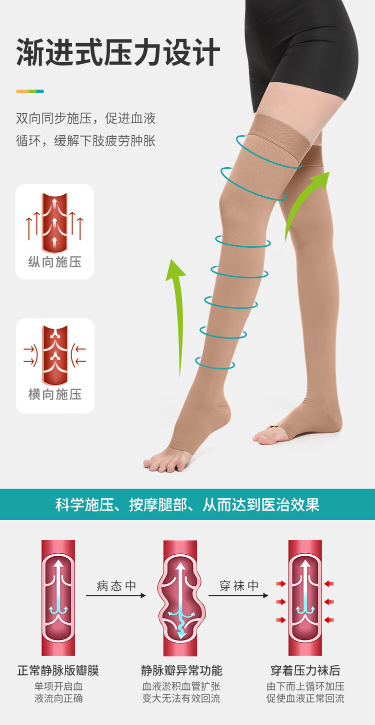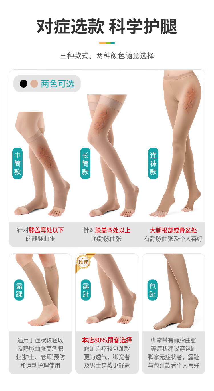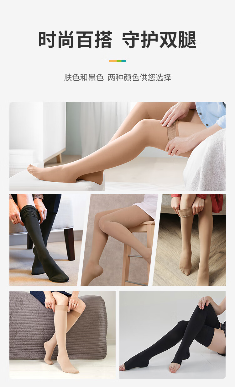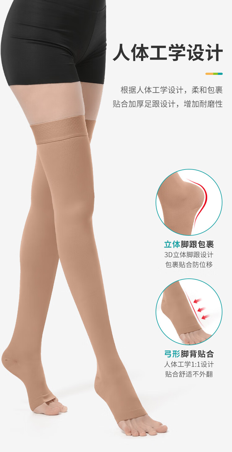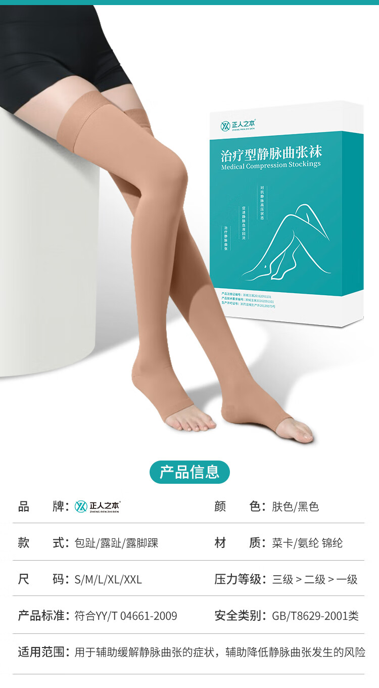 正人之本防静脉曲张弹力袜Ⅱ二级压力袜医用级治疗型抗血栓抗水肿术后恢复 【医用薄款】长筒露趾 黑色 二级压力 XXL码 参考体重150斤以上