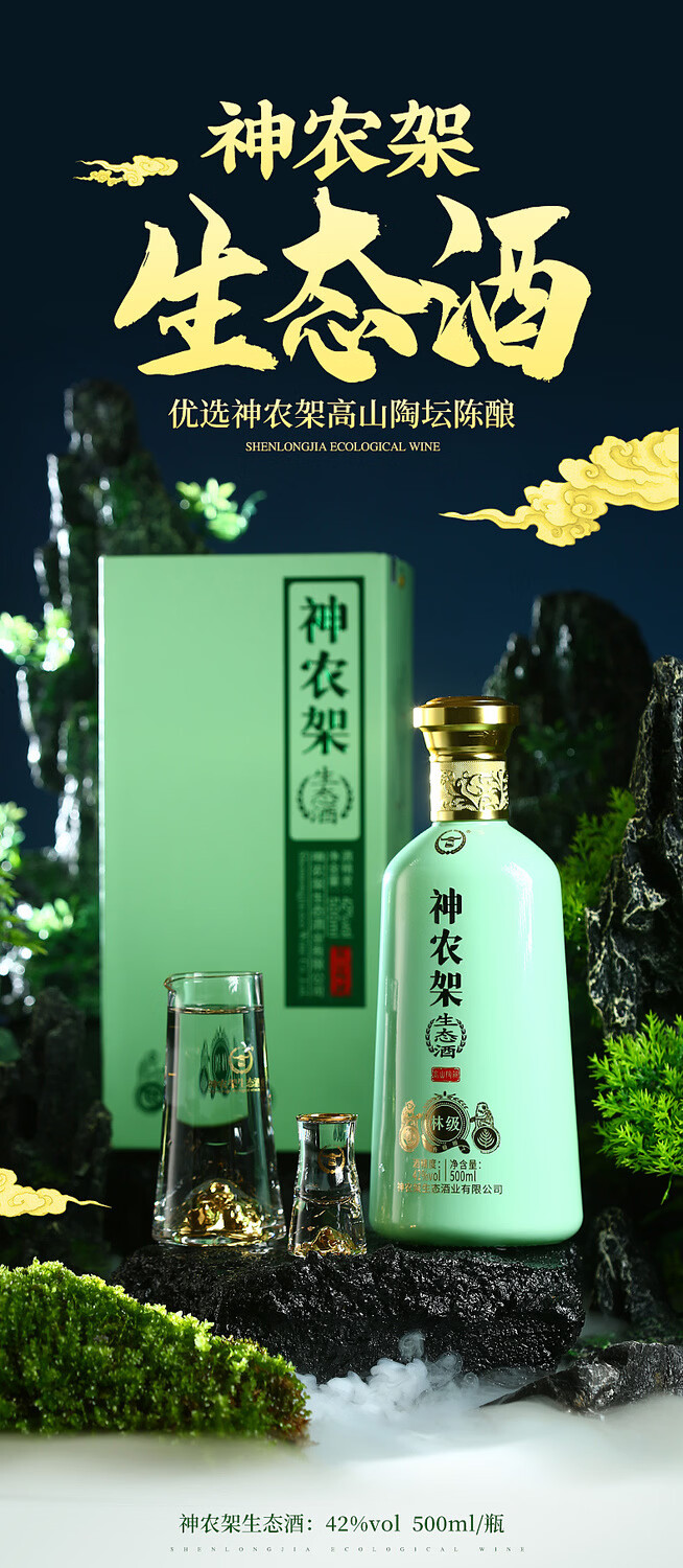 神农架兼香型白酒生态酒浓香粮食酒高粱酒新林级42度 500ml送毛铺酒具 42度 500mL 4瓶 (整箱)送2套毛铺酒具