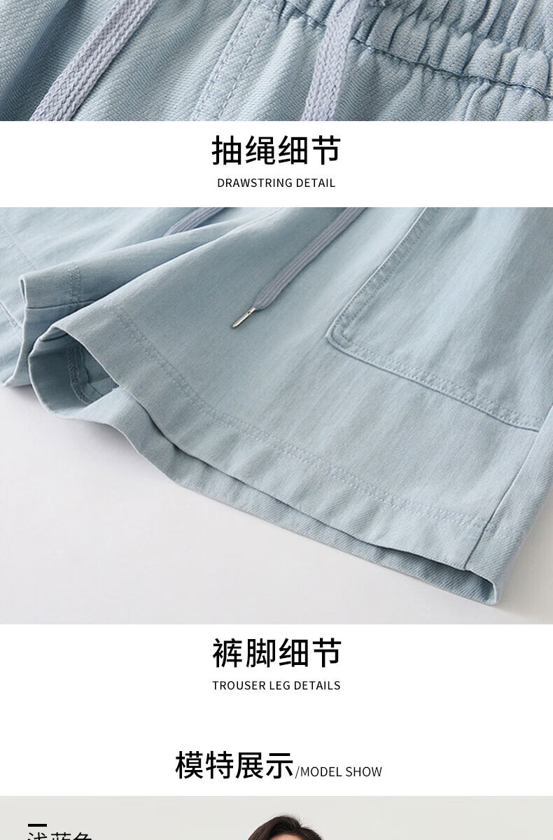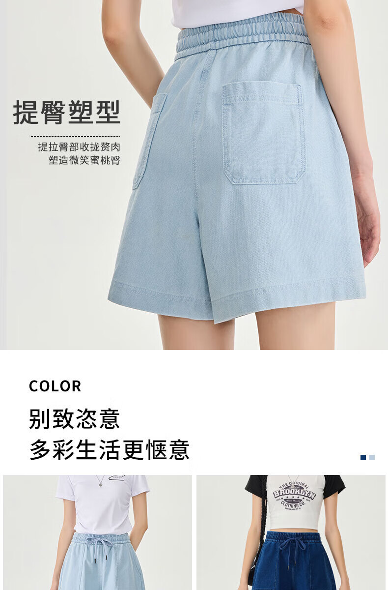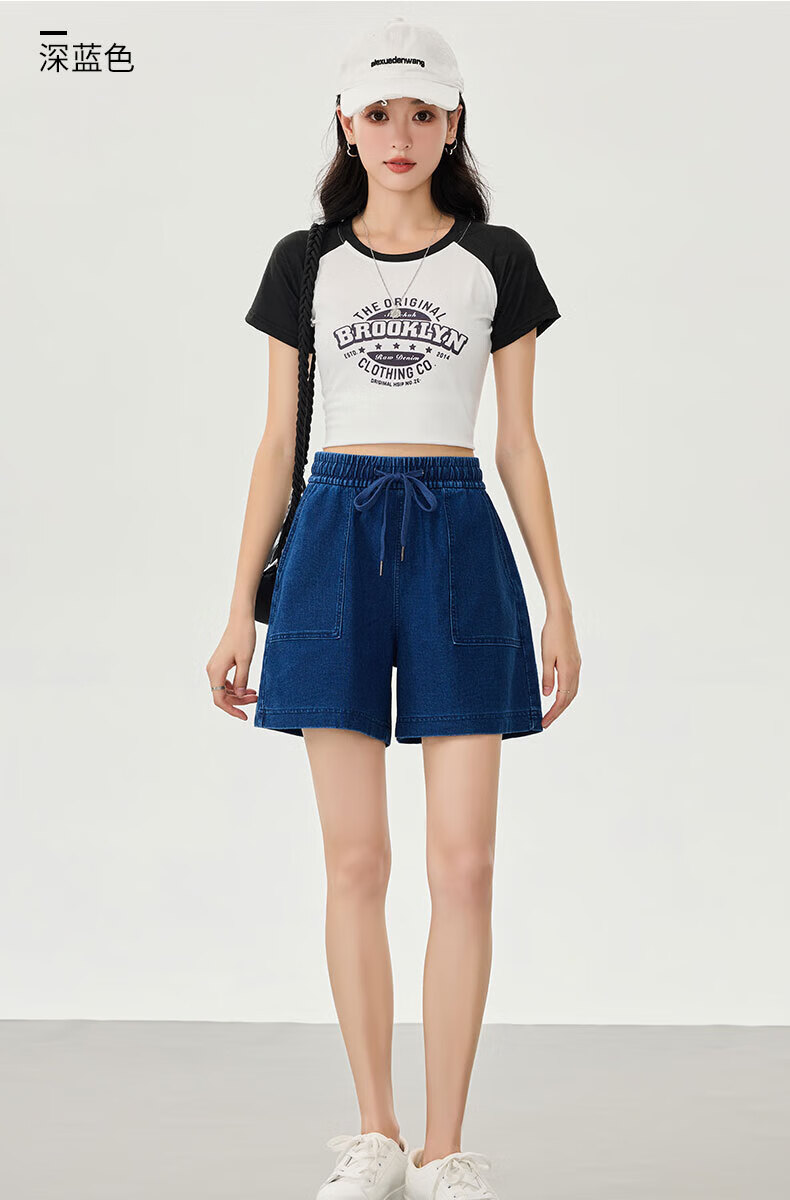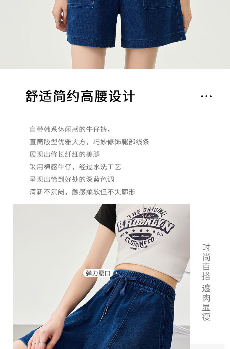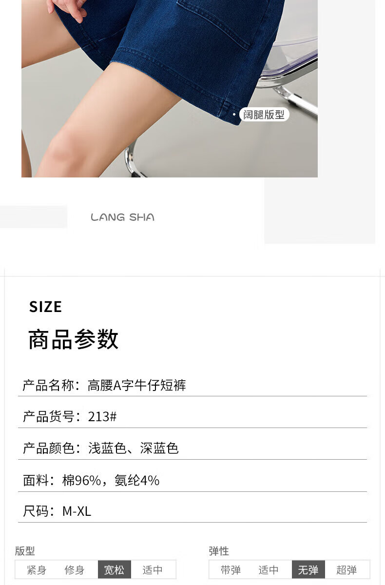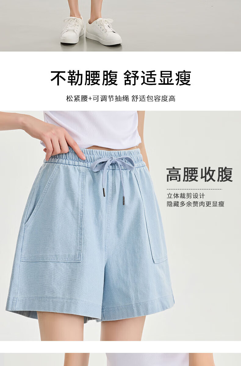 浪莎纯棉牛仔短裤女夏季薄款2026新款高腰显瘦小个子A字阔腿五分裤子 深蓝色 XL 【适合125-140斤】