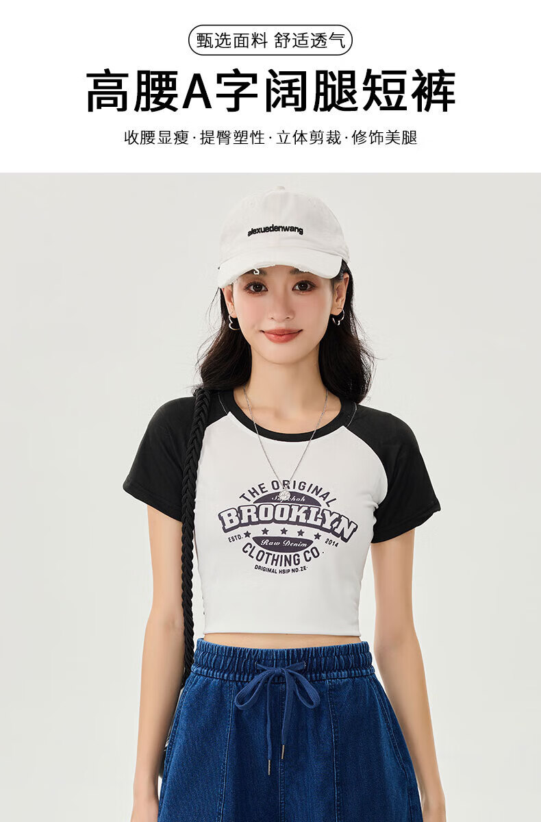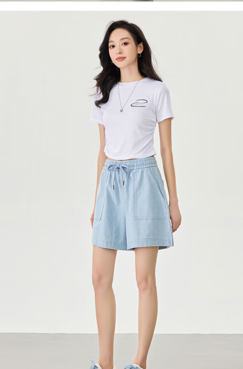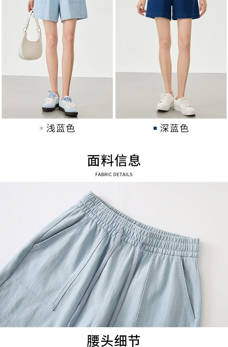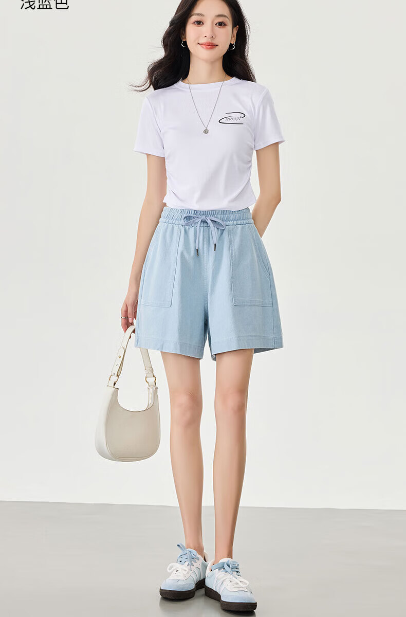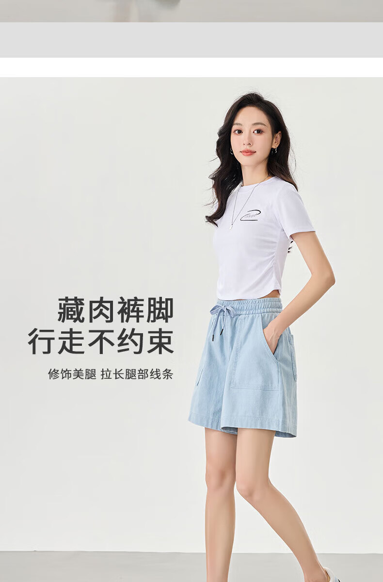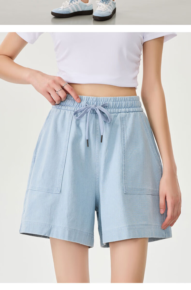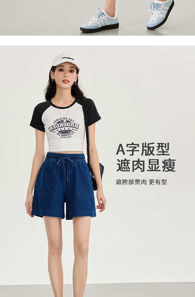 浪莎纯棉牛仔短裤女夏季薄款2026新款高腰显瘦小个子A字阔腿五分裤子 深蓝色 XL 【适合125-140斤】