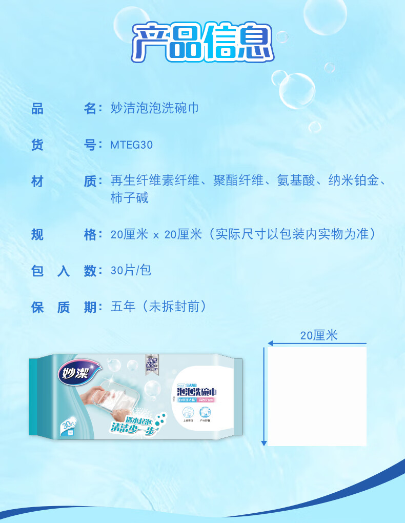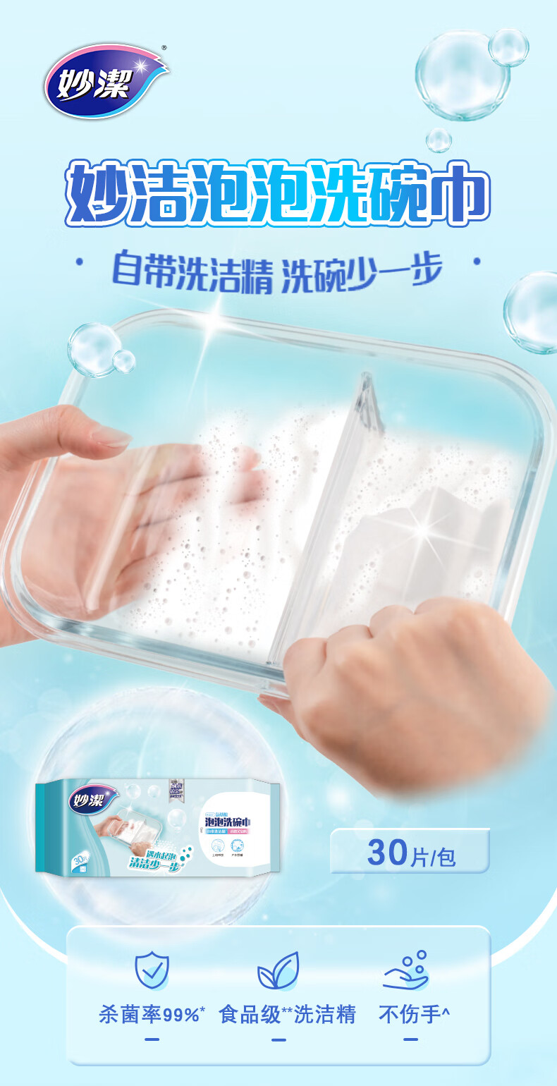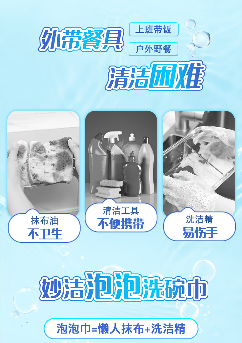 妙洁遇水起泡泡洗碗巾 家用厨房洗碗布自带食品级清洁懒人抹布不伤手 泡泡洗碗巾10包(共300片)