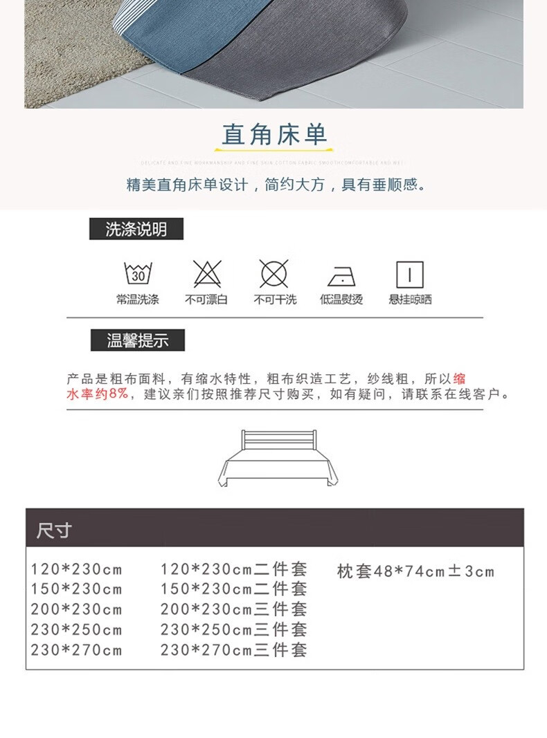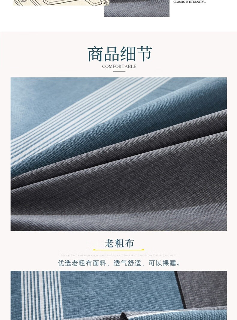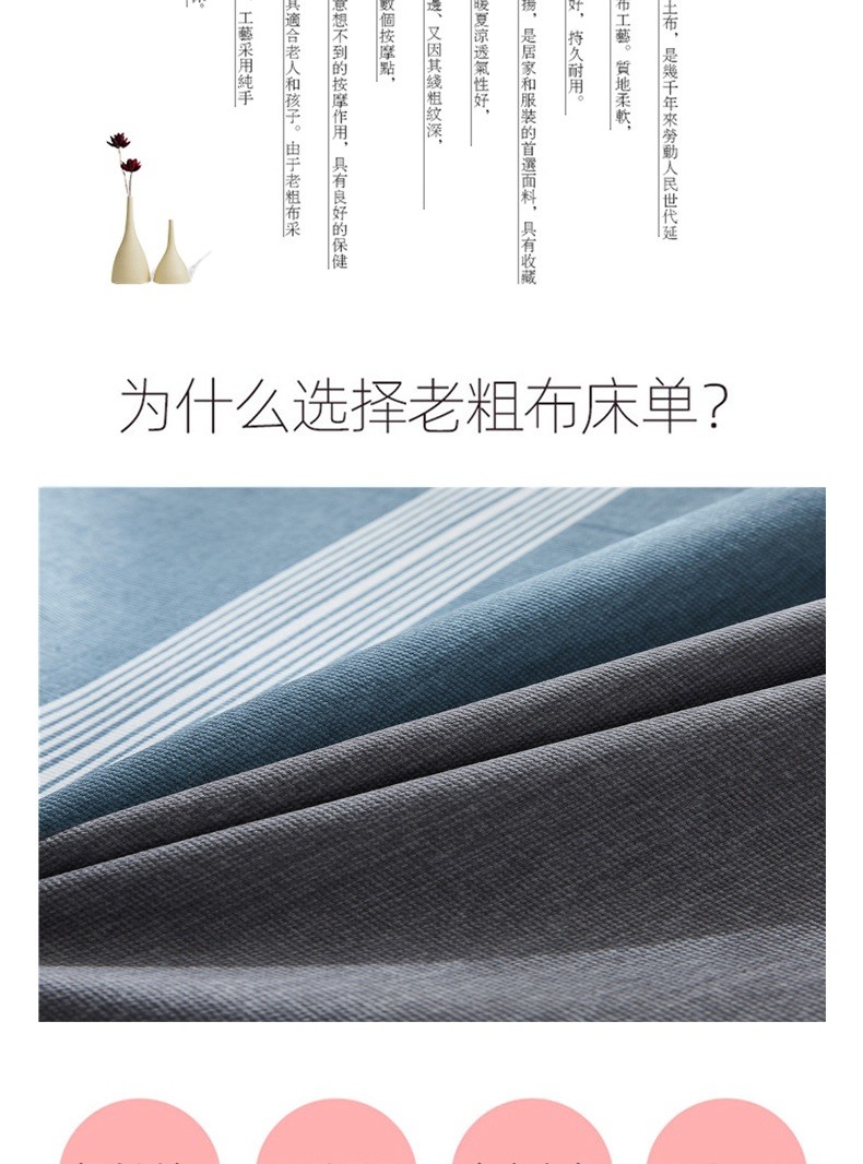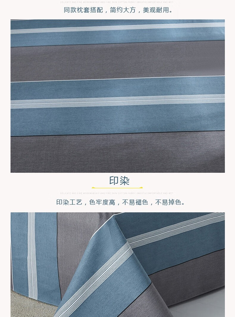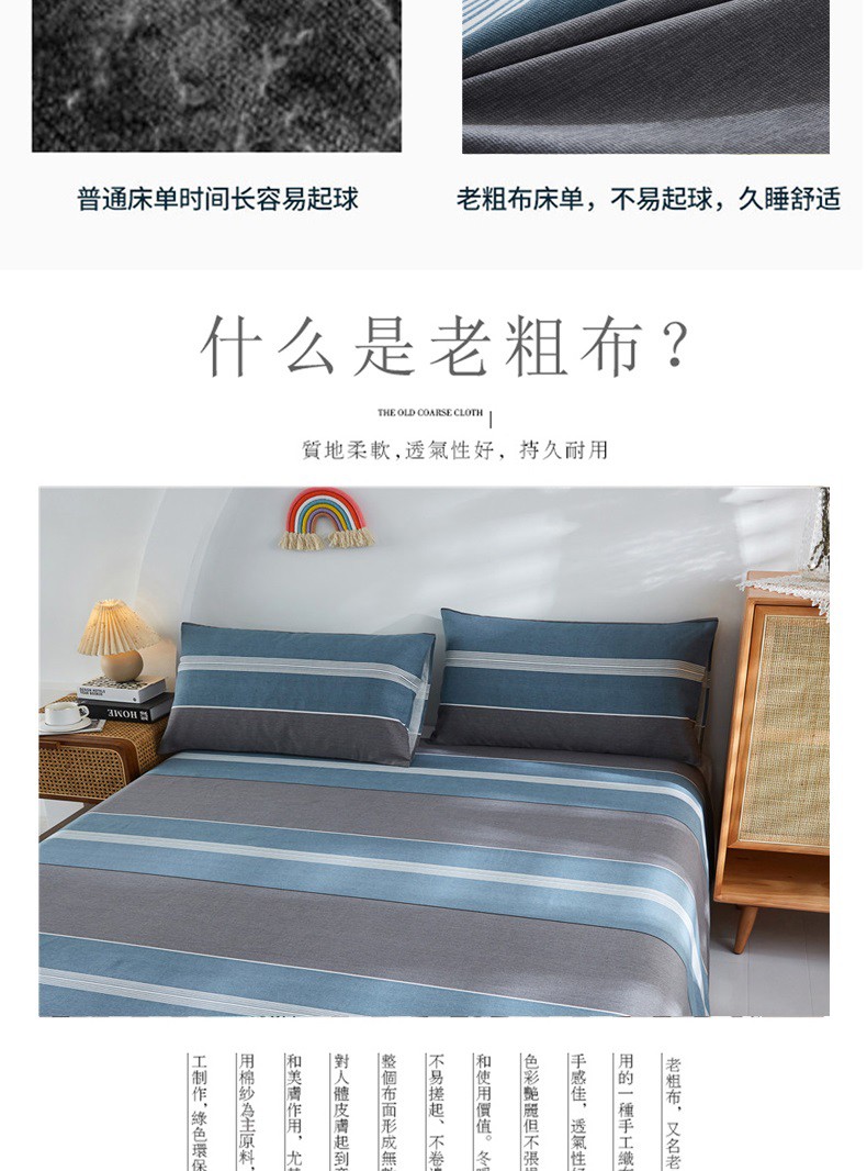 金泰莱棉加厚老粗布床单单双人学生宿舍床单四季布被单三套件二件套 蓝色恋歌【升级原棉】 2.0*2.3米带枕套一对