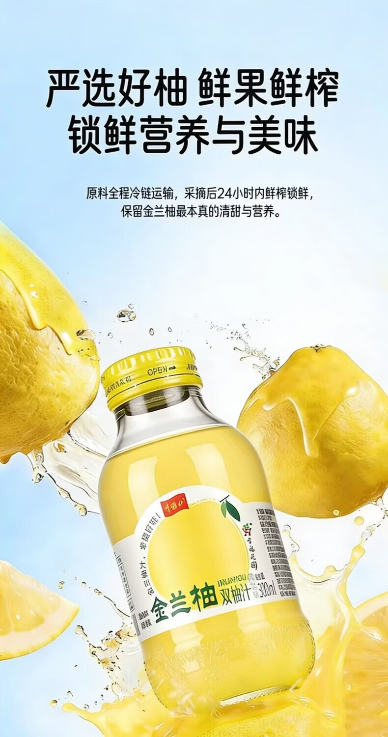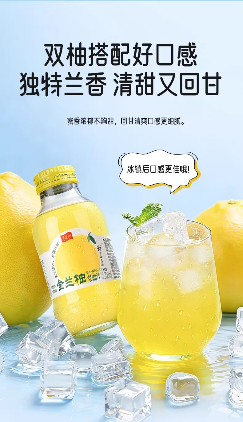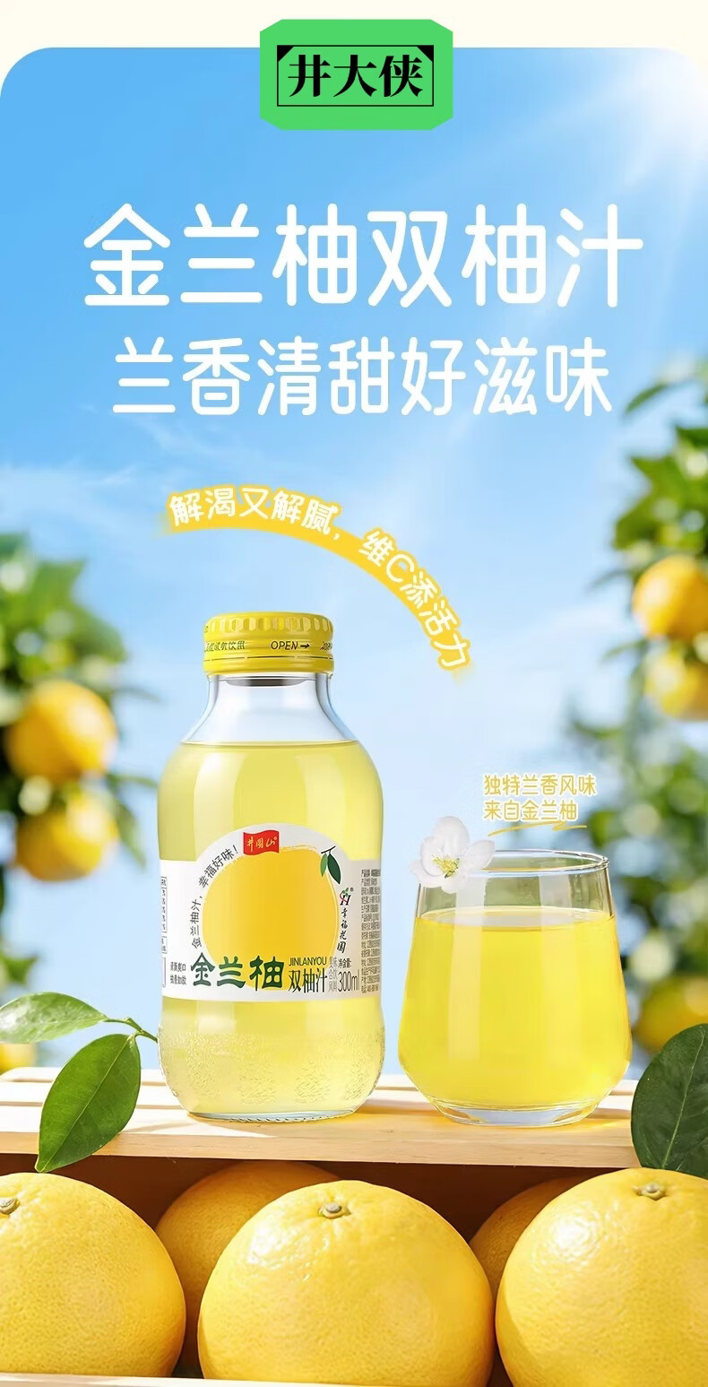 井大侠金兰柚香柚双柚汁0脂含VC鲜果鲜榨玻璃瓶复合果蔬汁饮料夏季饮品 金兰柚双柚汁300ml*15瓶