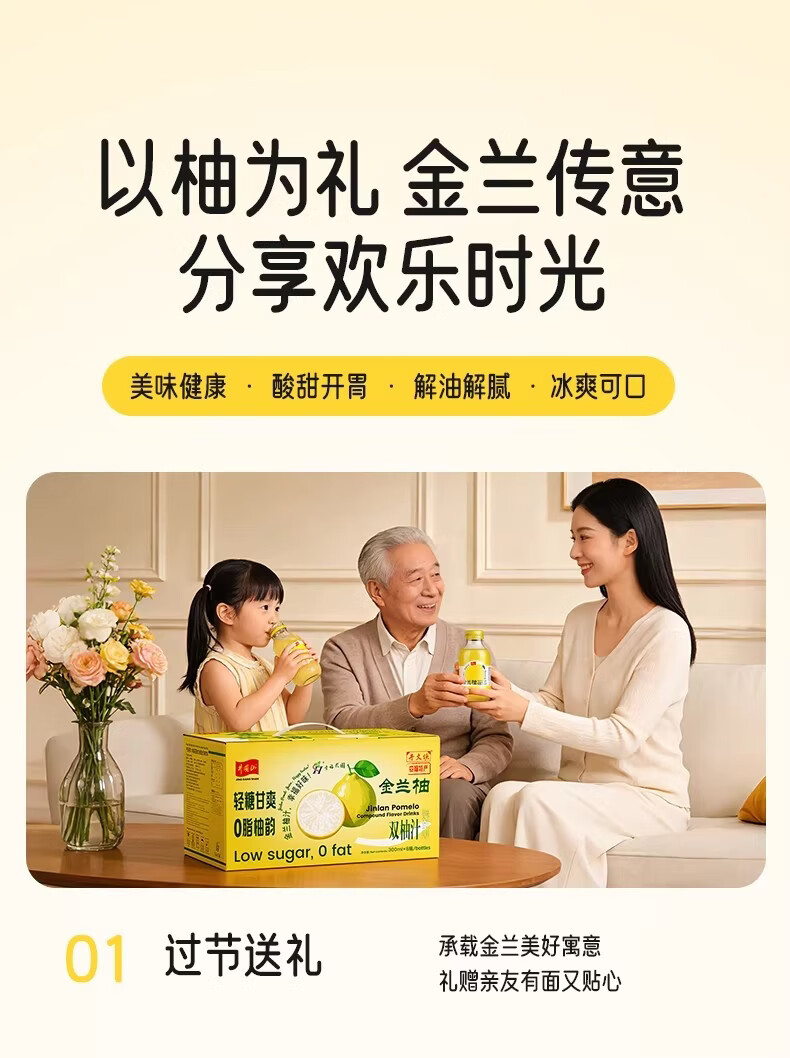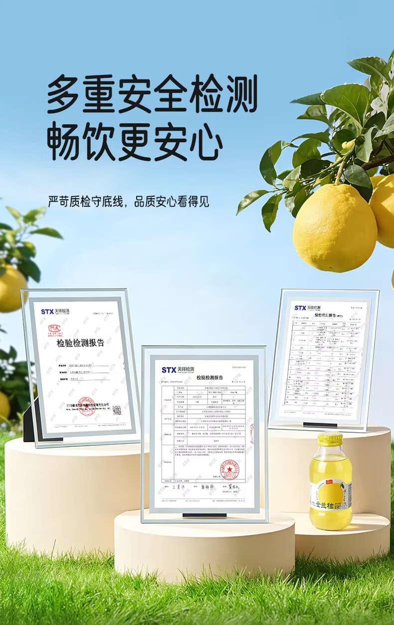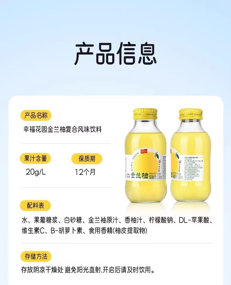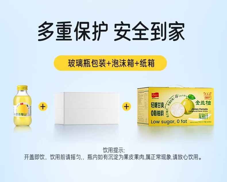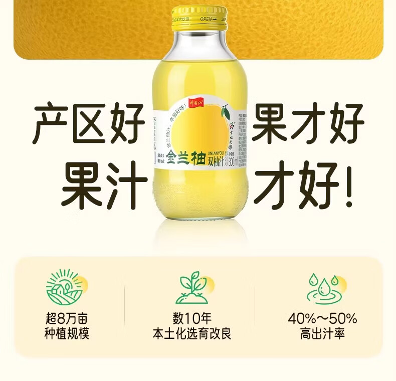 井大侠金兰柚香柚双柚汁0脂含VC鲜果鲜榨玻璃瓶复合果蔬汁饮料夏季饮品 金兰柚双柚汁300ml*15瓶