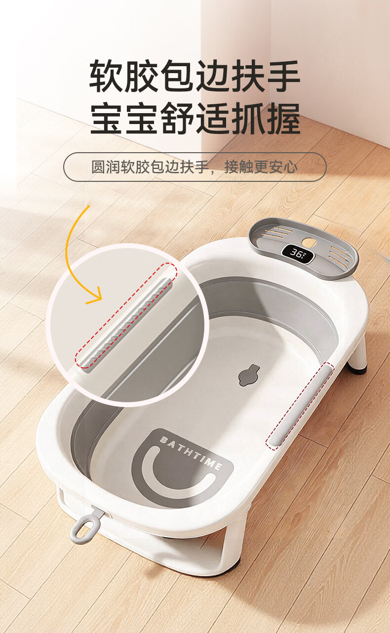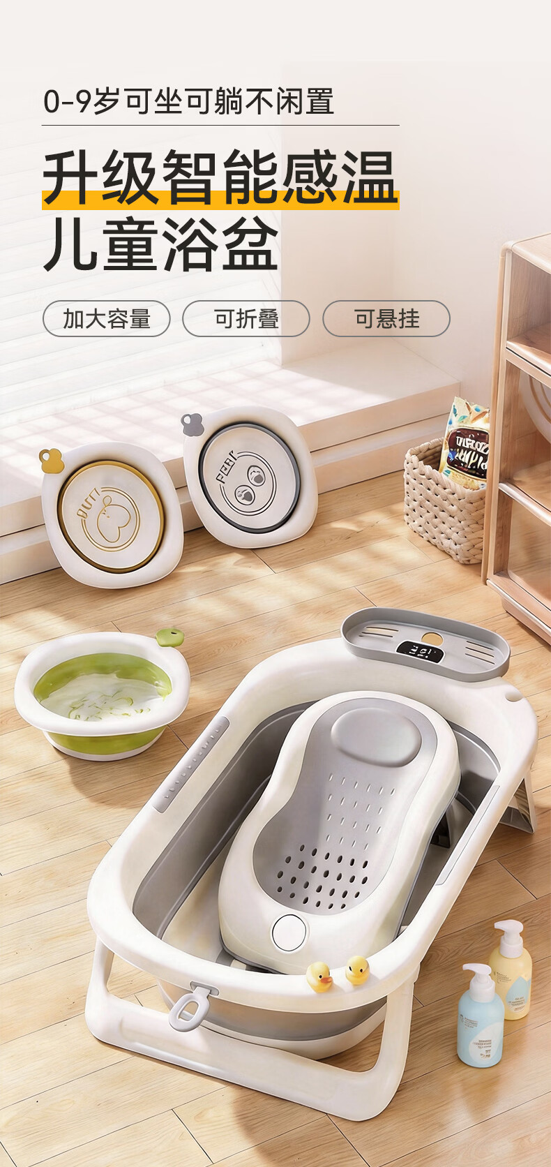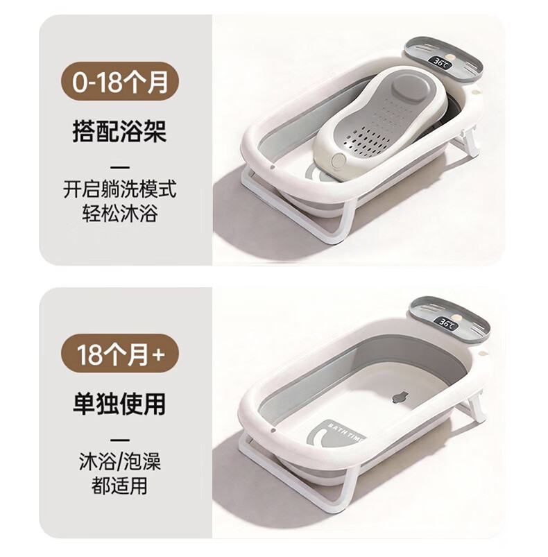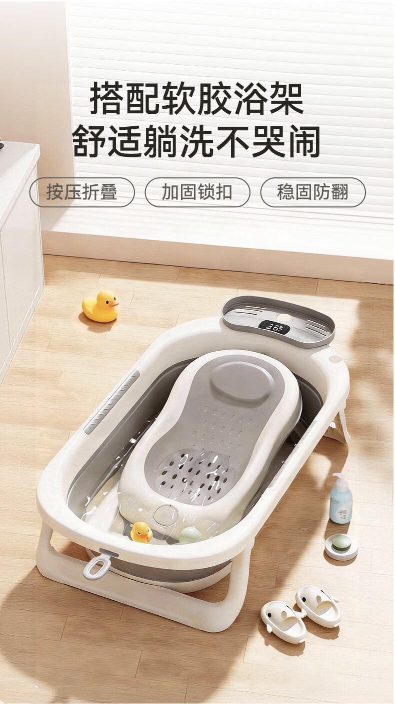 稚芽婴儿洗澡盆 可折叠感温浴盆大号新生儿童宝宝洗澡神器躺托浴架 【加大加厚】感温浴盆+浴架