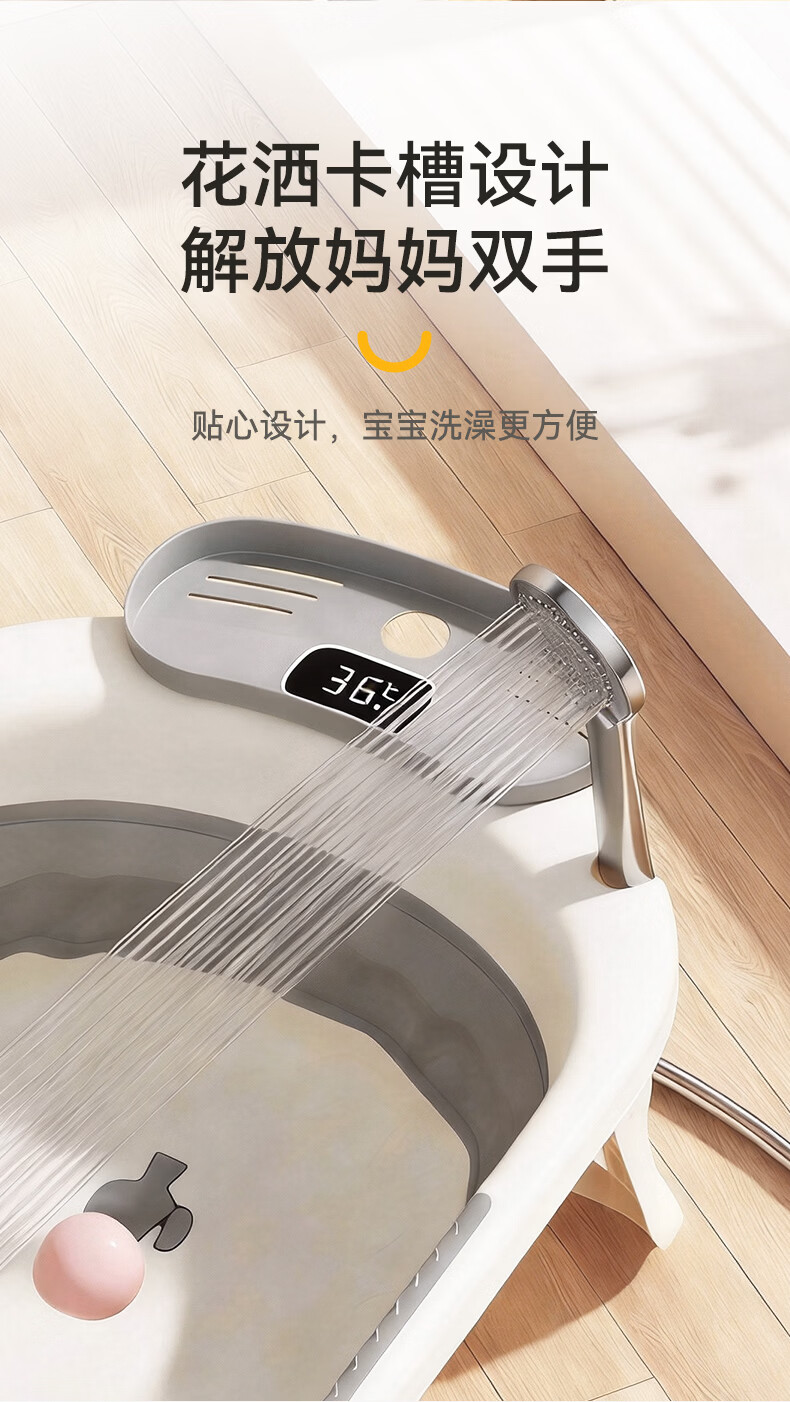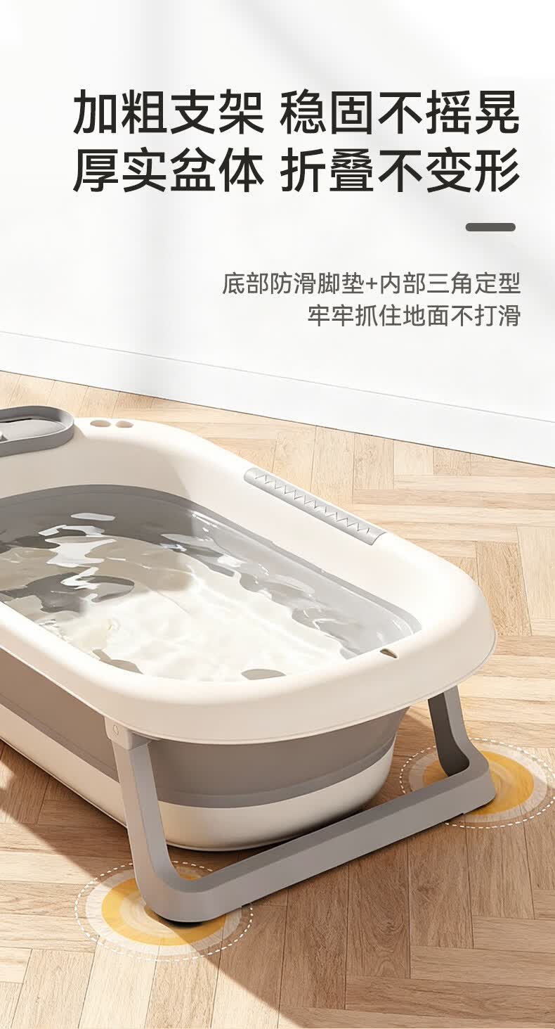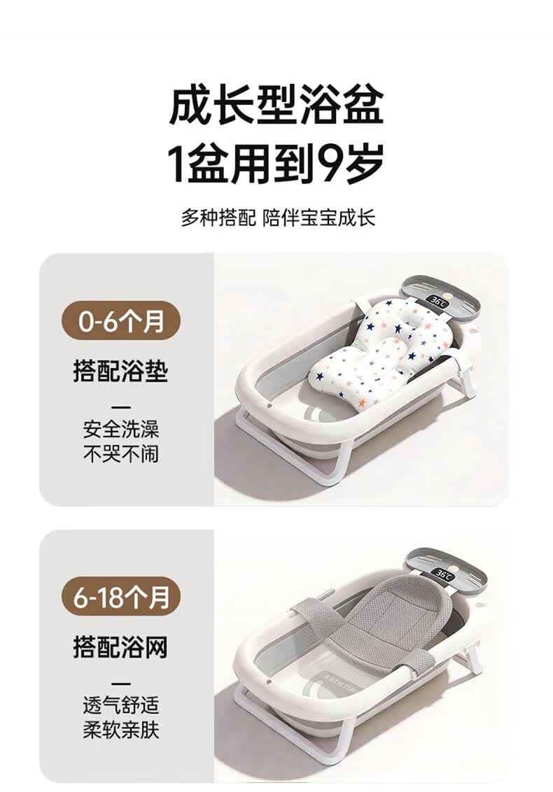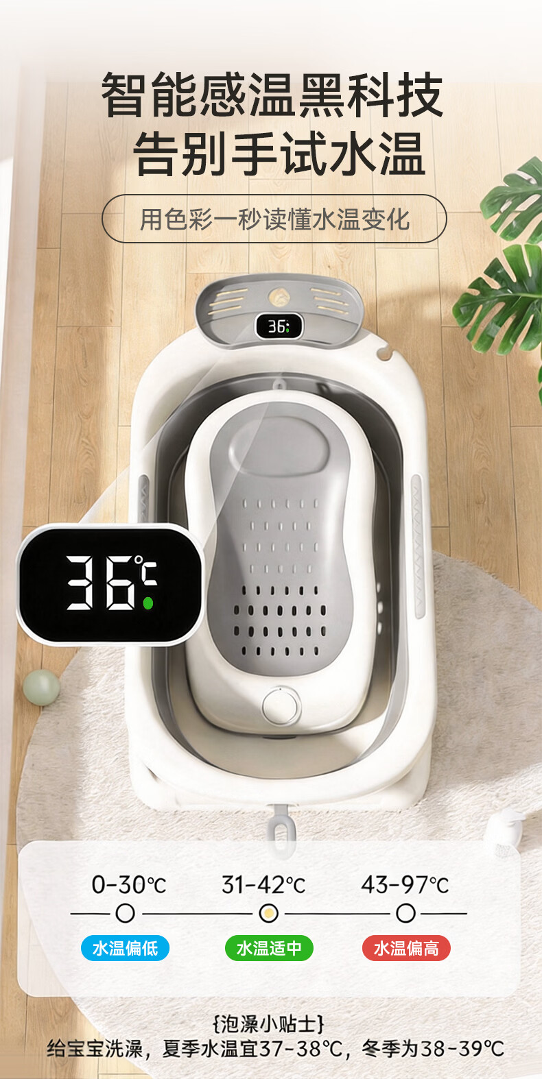 稚芽婴儿洗澡盆 可折叠感温浴盆大号新生儿童宝宝洗澡神器躺托浴架 【加大加厚】感温浴盆+浴架