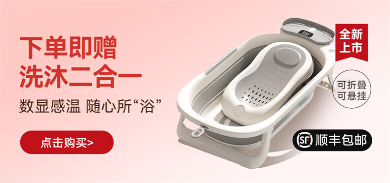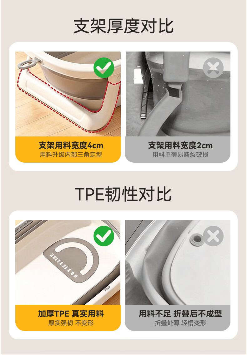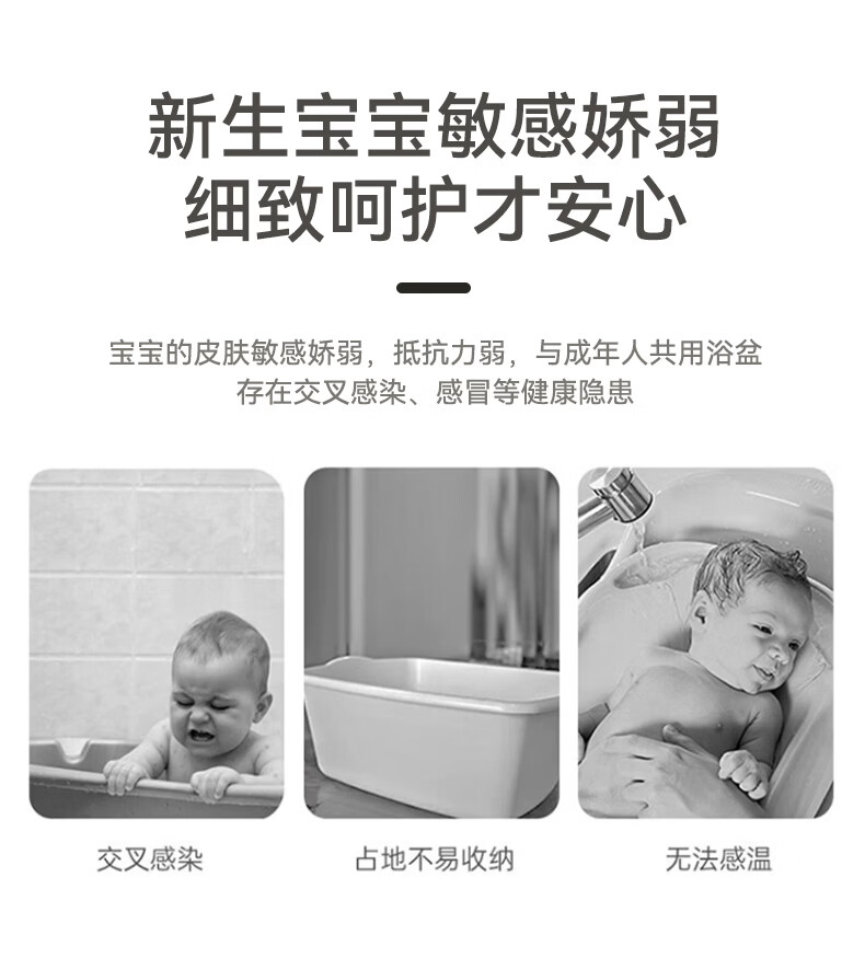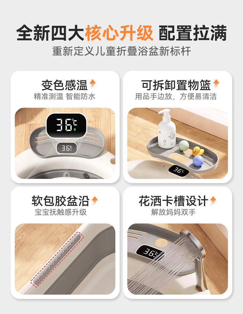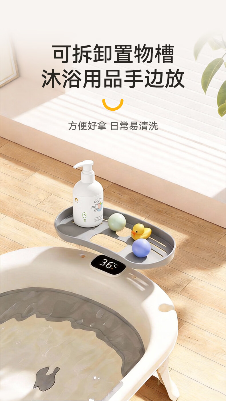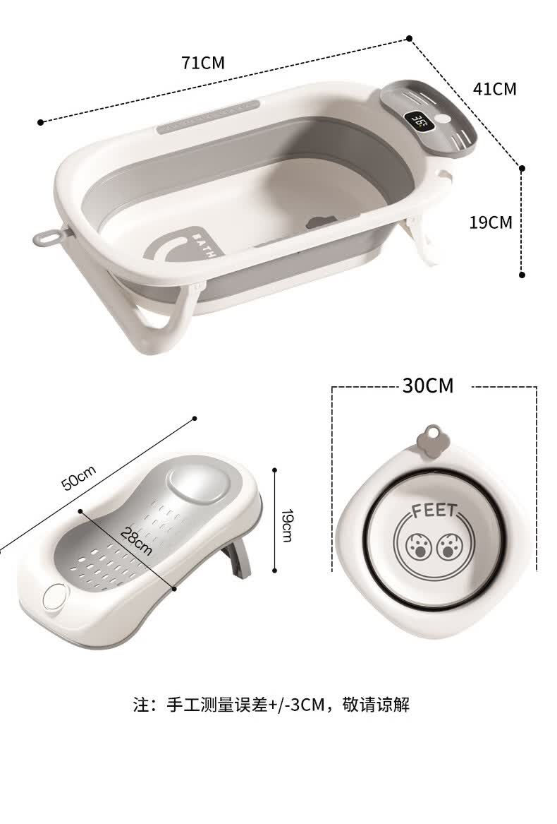 稚芽婴儿洗澡盆 可折叠感温浴盆大号新生儿童宝宝洗澡神器躺托浴架 【加大加厚】感温浴盆+浴架