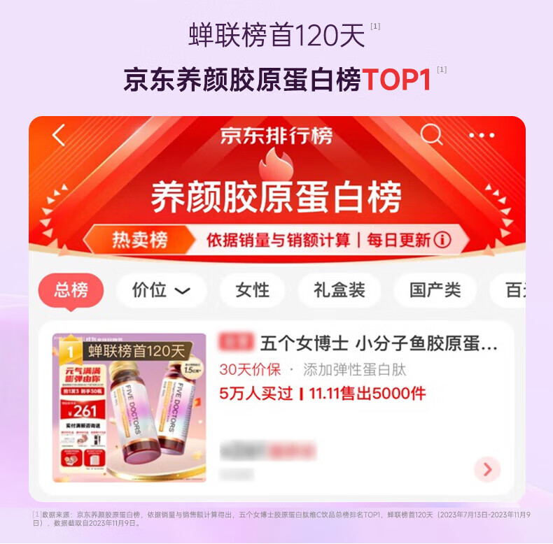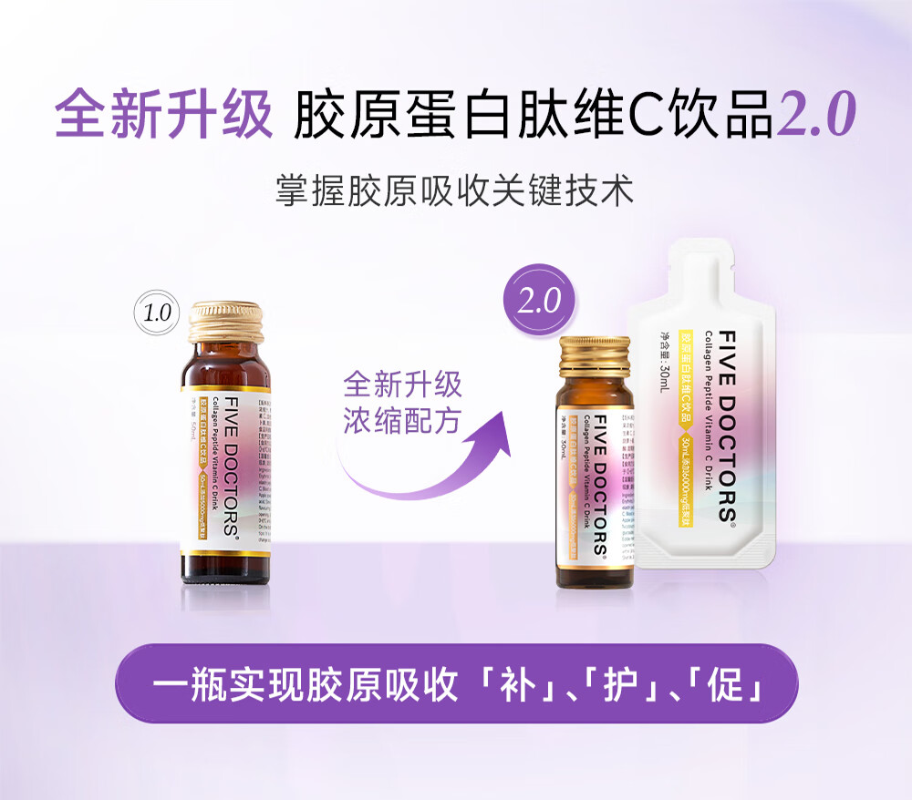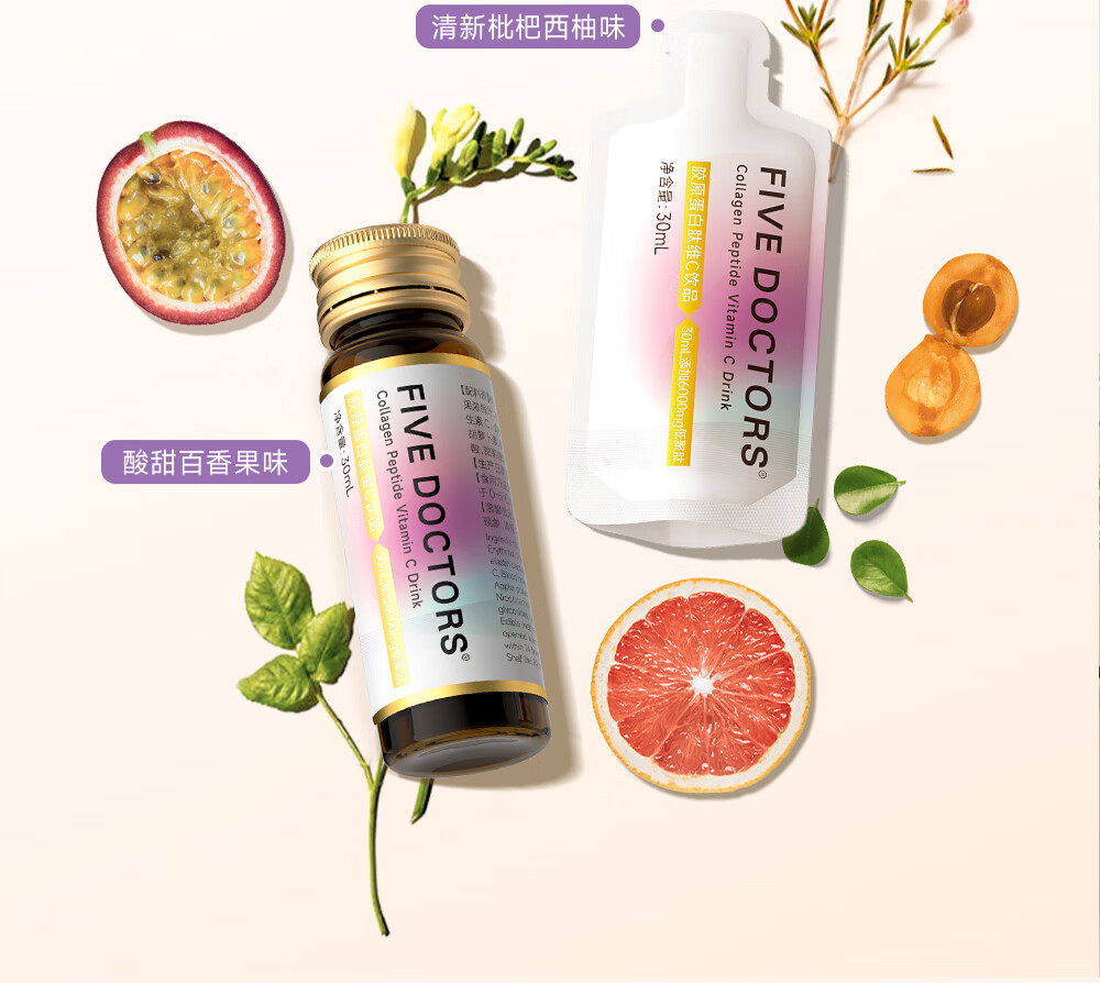 五个女博士胶原蛋白肽口服液FIVE DOCTORS小分子鱼胶原蛋白肽维C饮官旗店 【2.0版本 聚划算】3盒+6袋便携装(店长推荐)