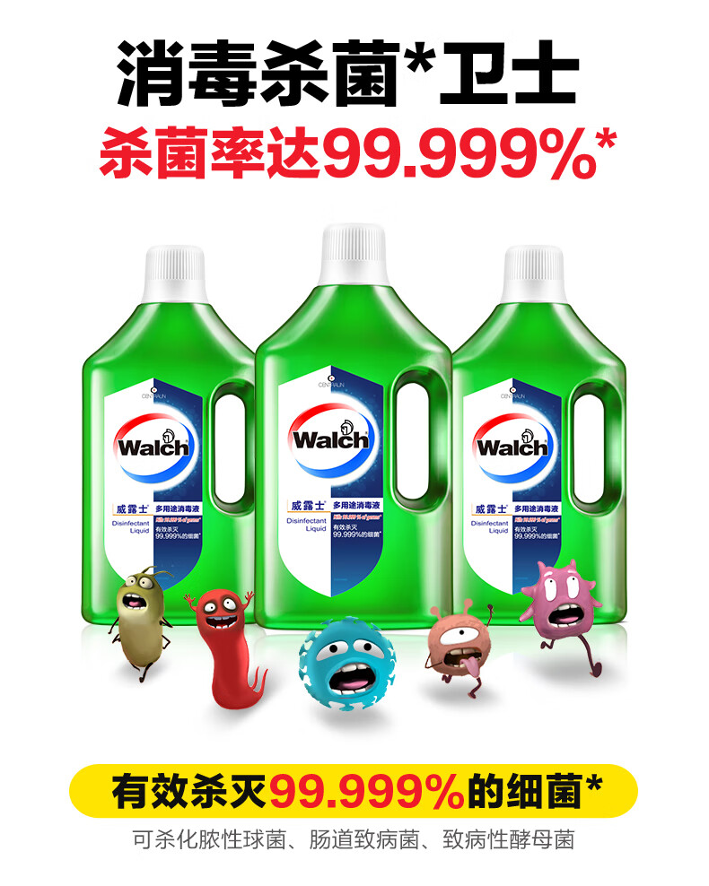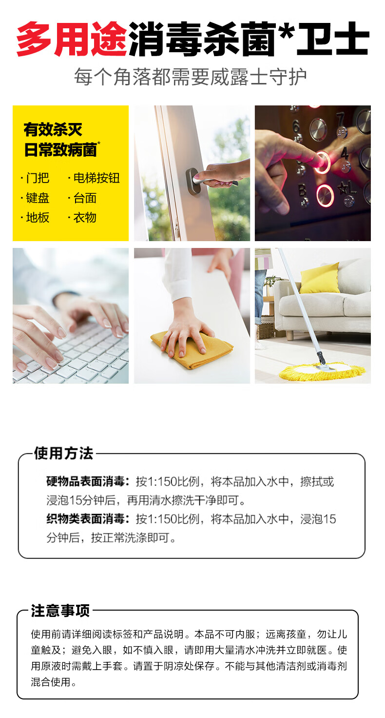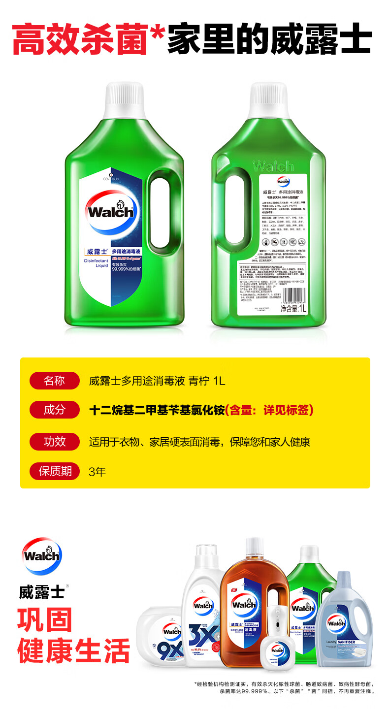 威露士多用途消毒液杀菌消毒水地板玩具家用衣物家居清洁 青柠 1L 2瓶