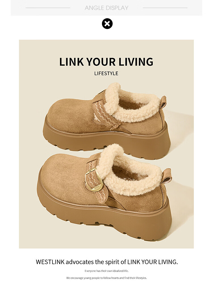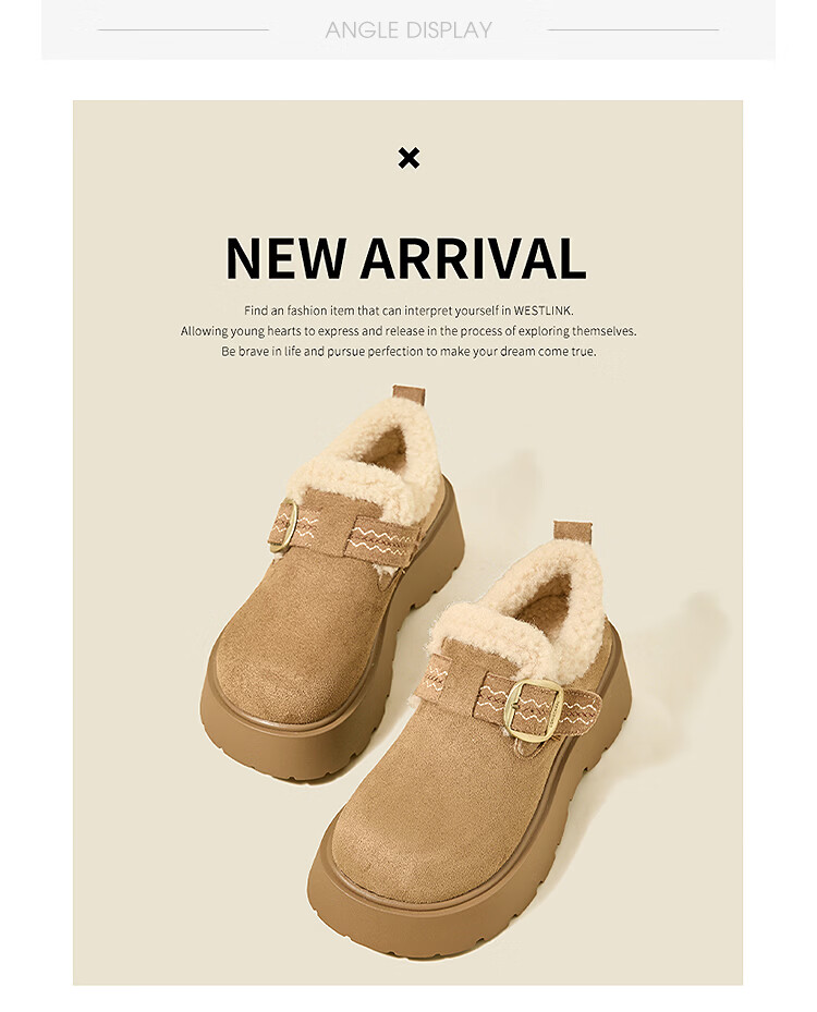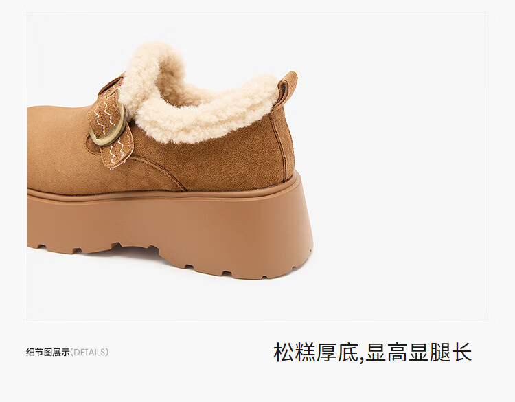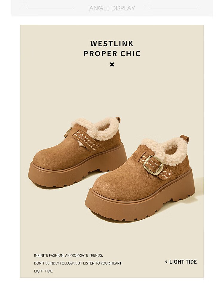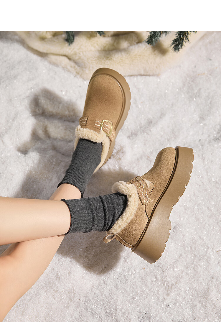 西遇(Westlink)厚底增高加绒保暖勃肯鞋女鞋2025新冬季雪地靴乐福鞋毛毛棉鞋 驼色 预售1.16 35 (225)