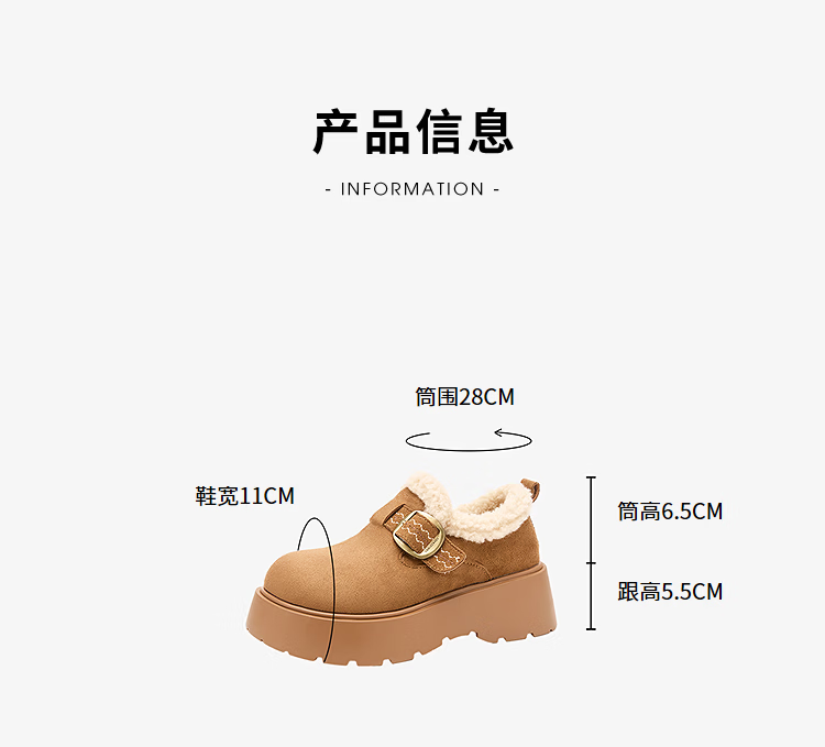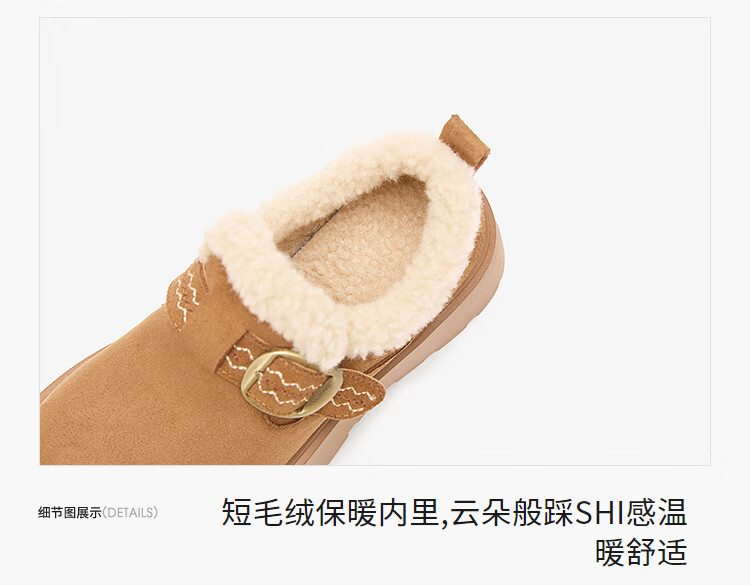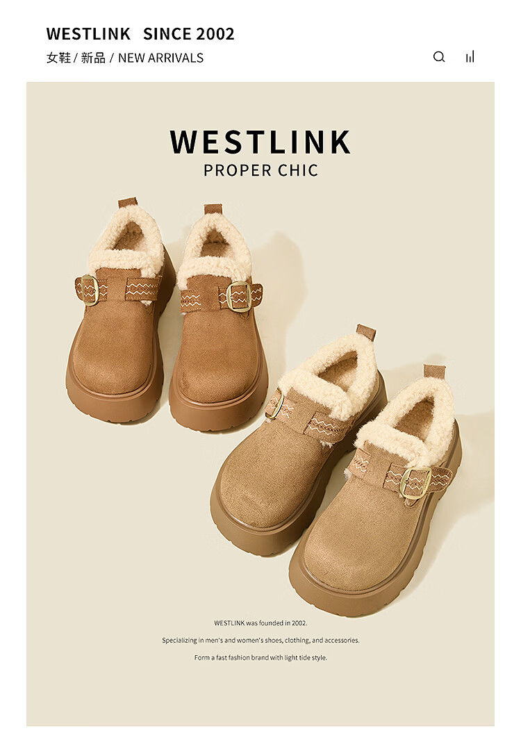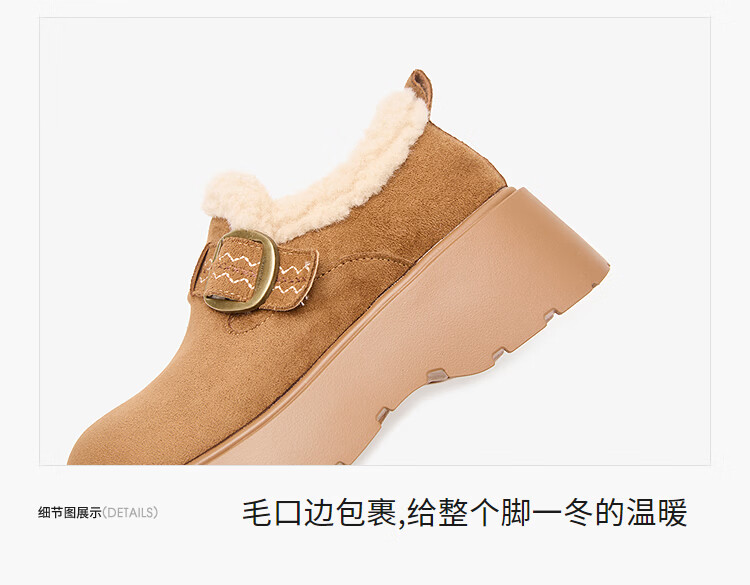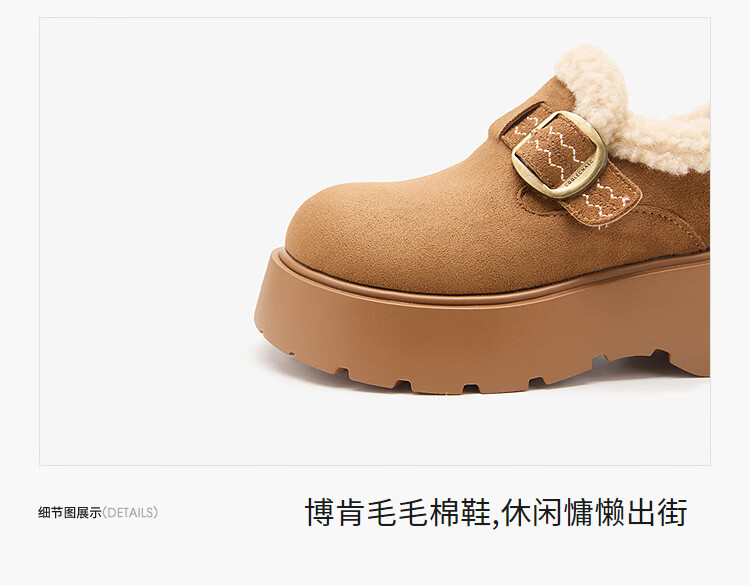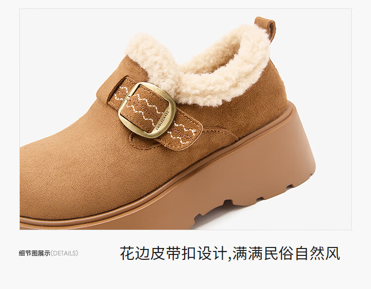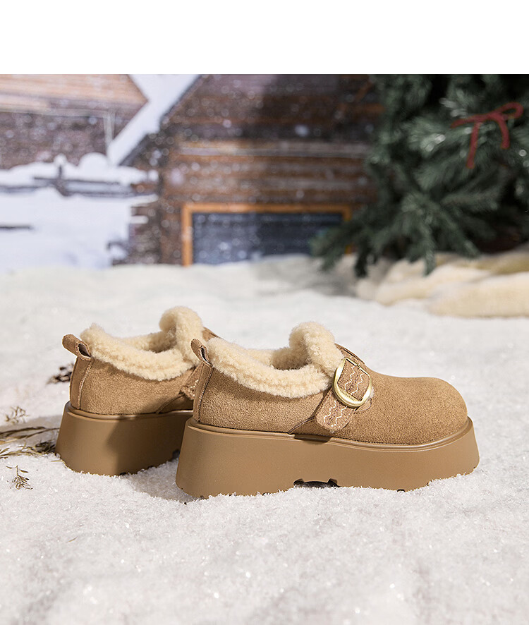 西遇(Westlink)厚底增高加绒保暖勃肯鞋女鞋2025新冬季雪地靴乐福鞋毛毛棉鞋 驼色 预售1.16 35 (225)