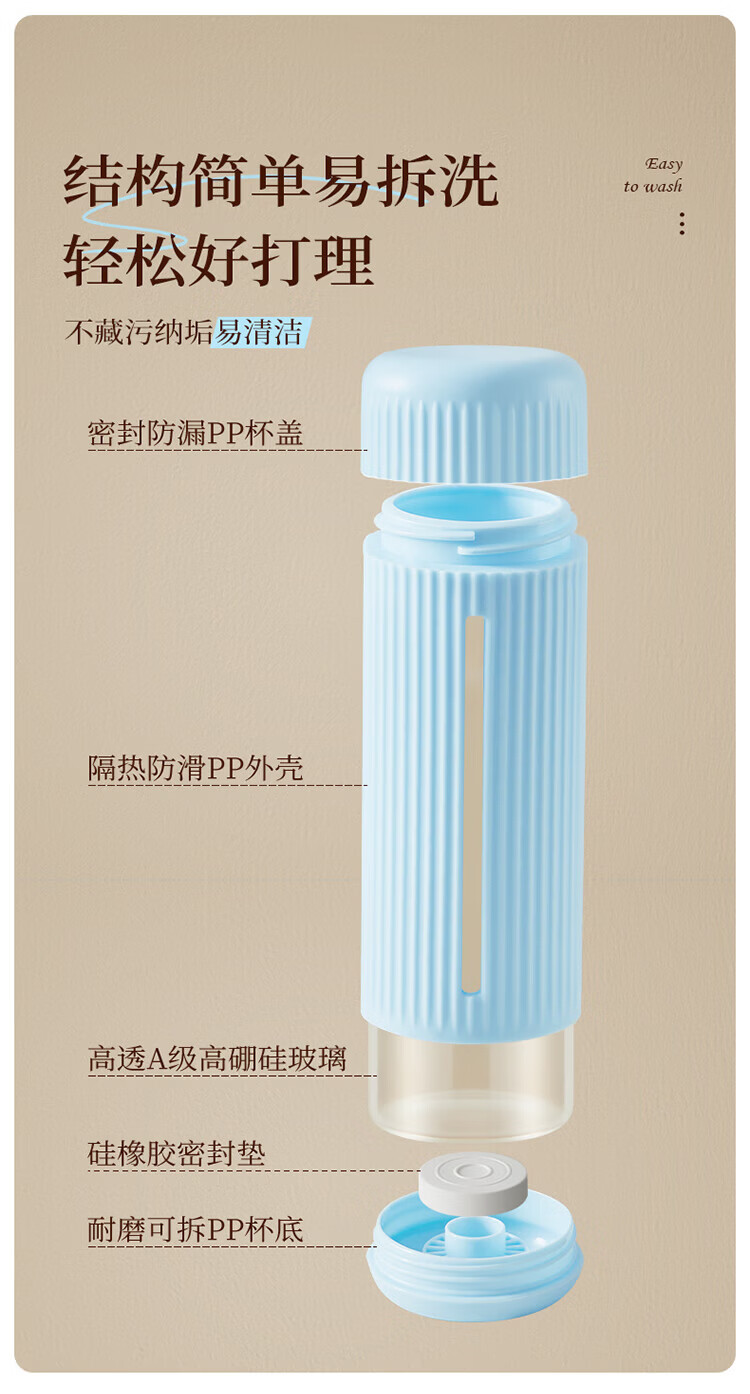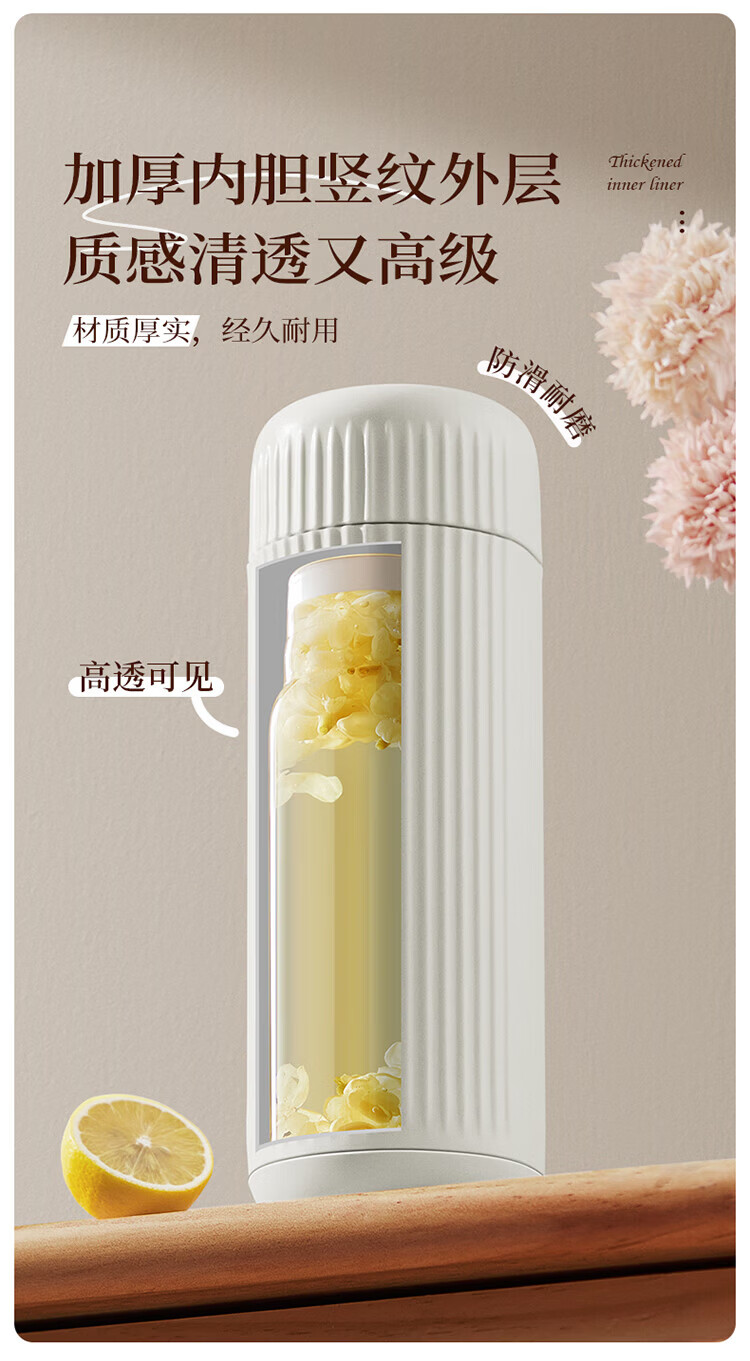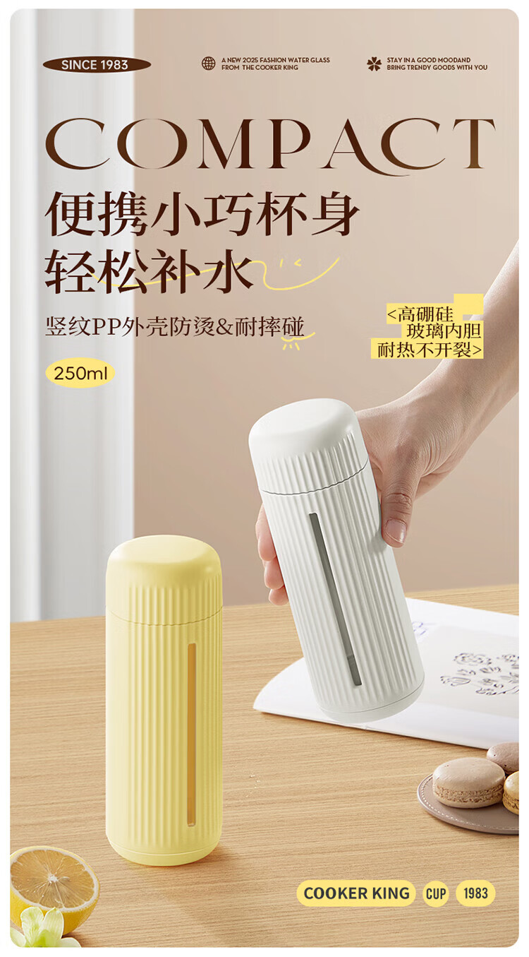 炊大皇(COOKER KING)高硼硅玻璃水杯防烫防滑茶杯茶漏学生男女士便携高颜值透明家用 白色【新品-高硼硅玻璃】250ml