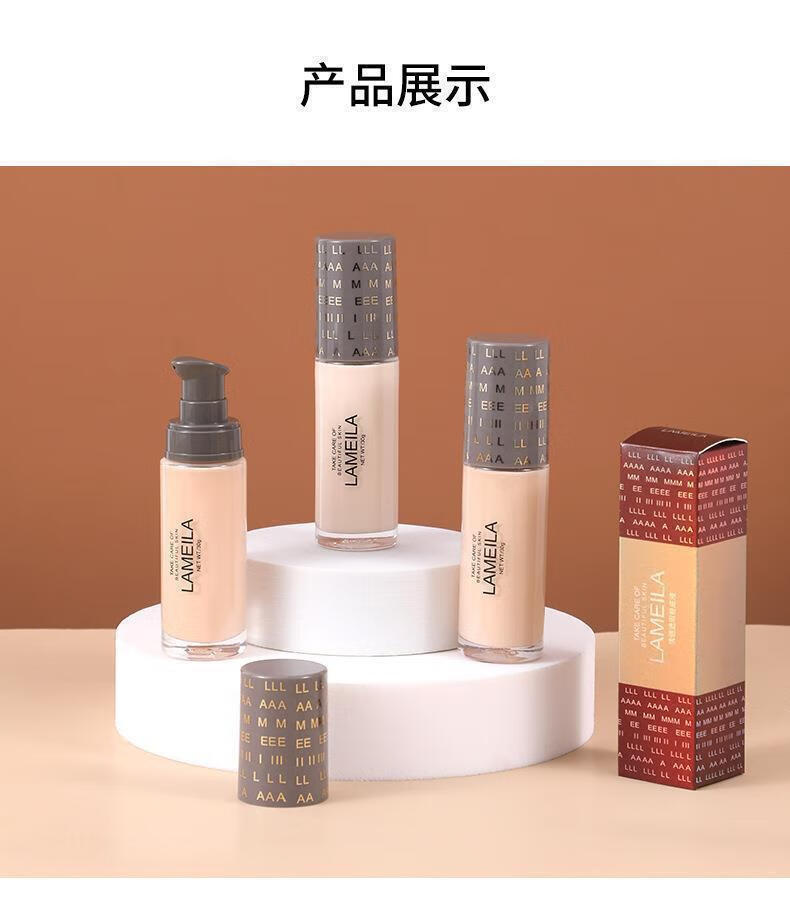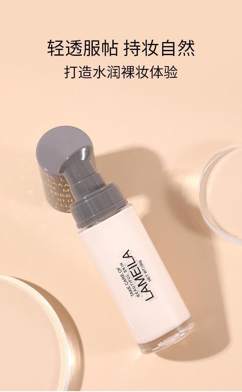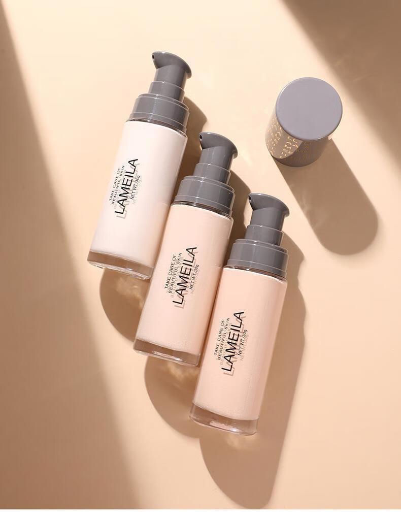 拉美拉清透遮瑕粉底液持久不脱妆控油轻薄透气油干皮保湿自然初学者30ml 自然色三瓶装 30g