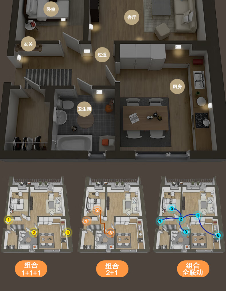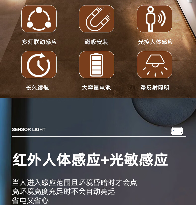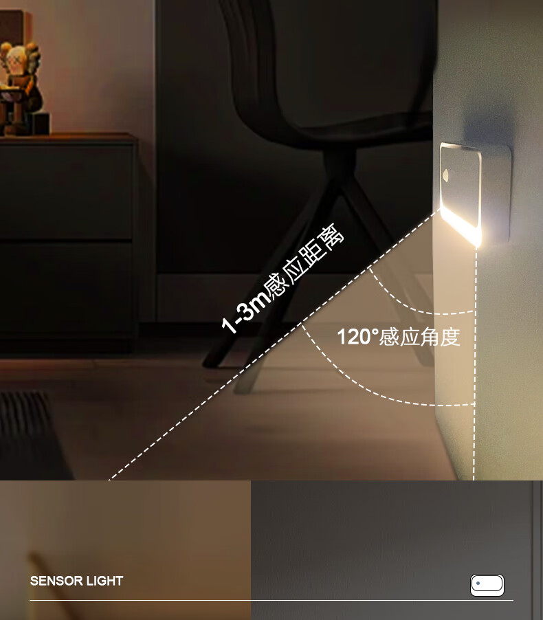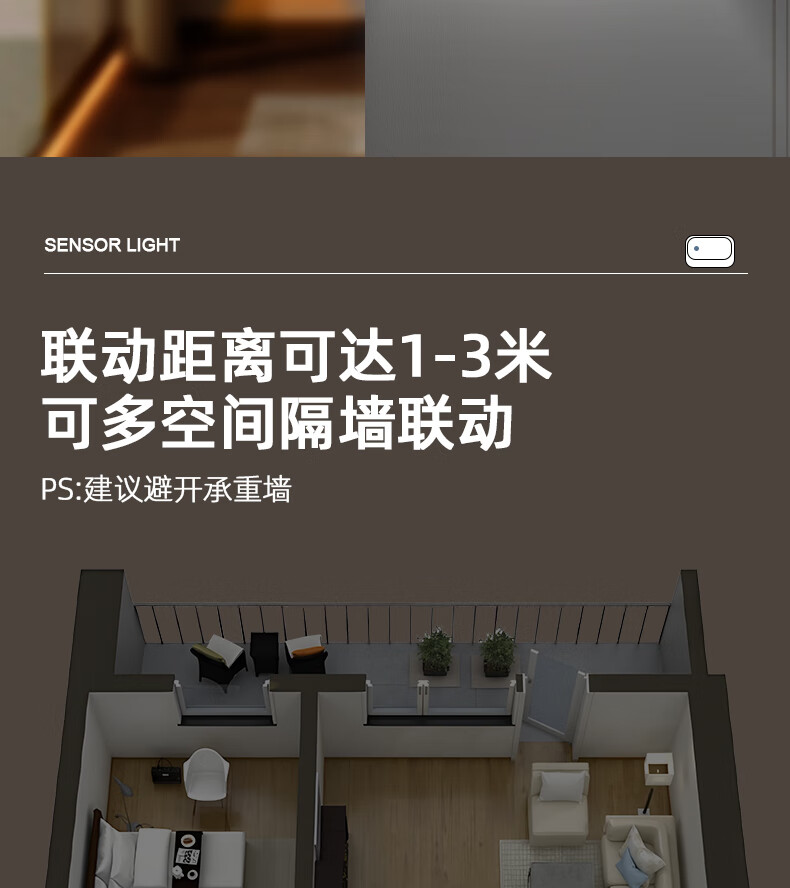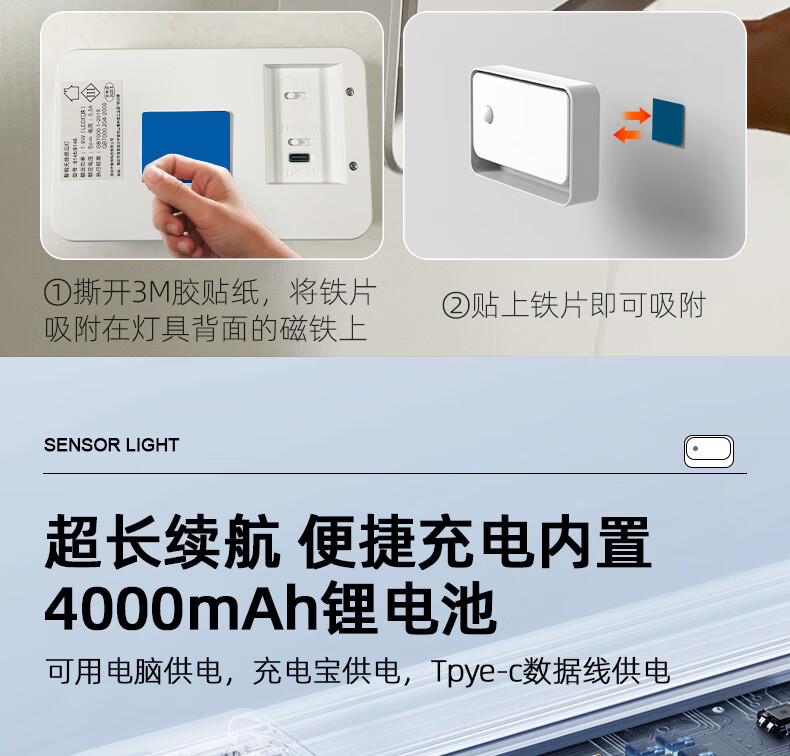 智特(ZT) 充电红外感应橱柜灯插电家用人体感应灯书桌厨房感应灯衣柜走廊 【三只装】3600mAh暖光-充电-人感