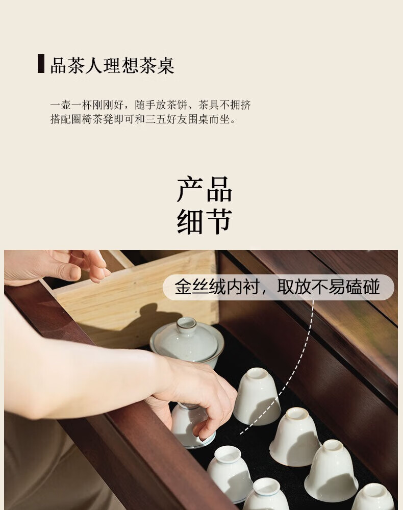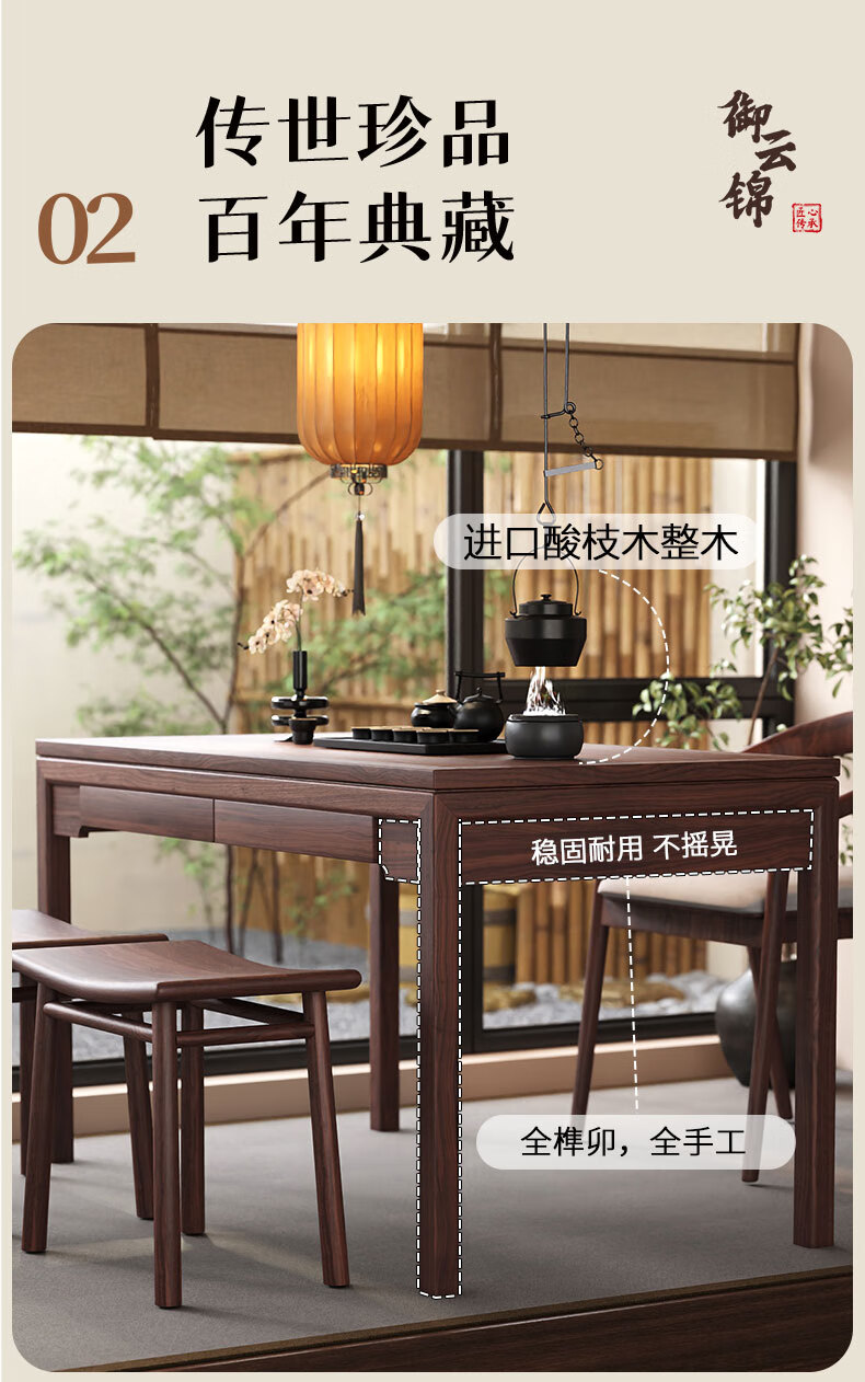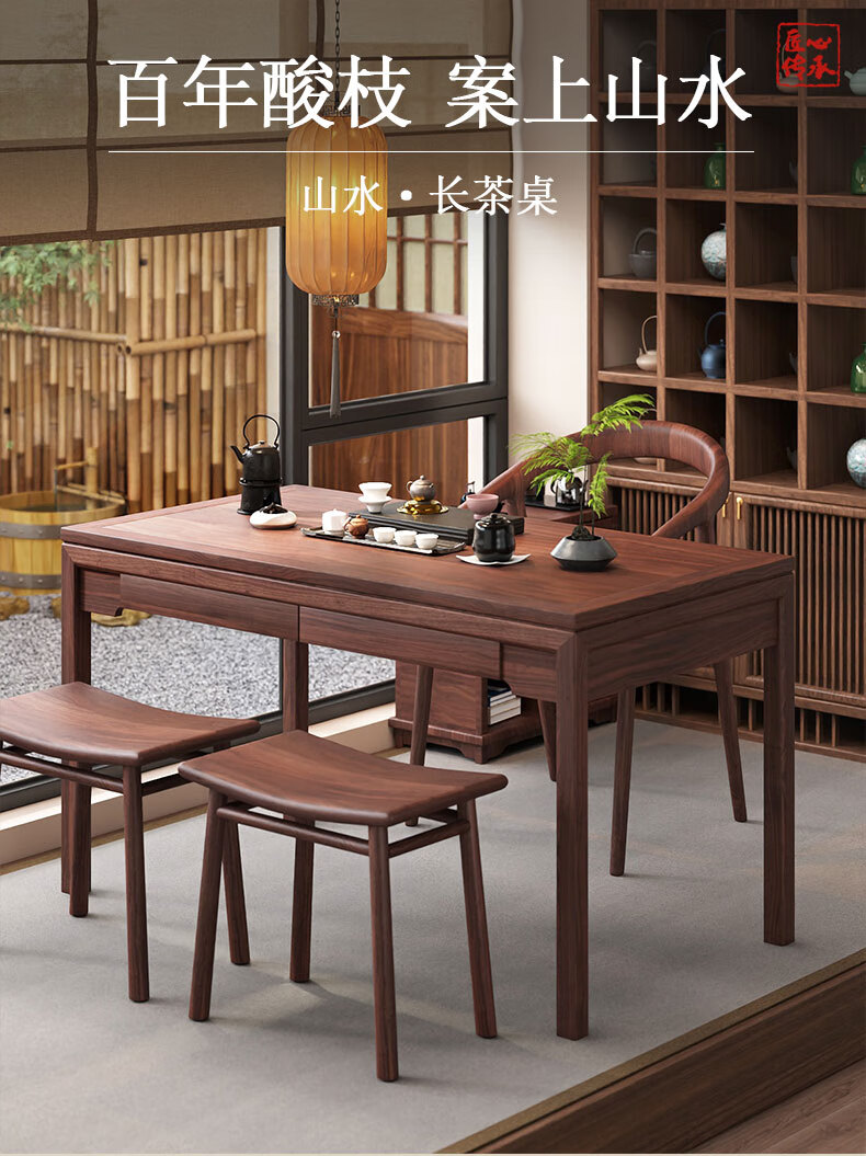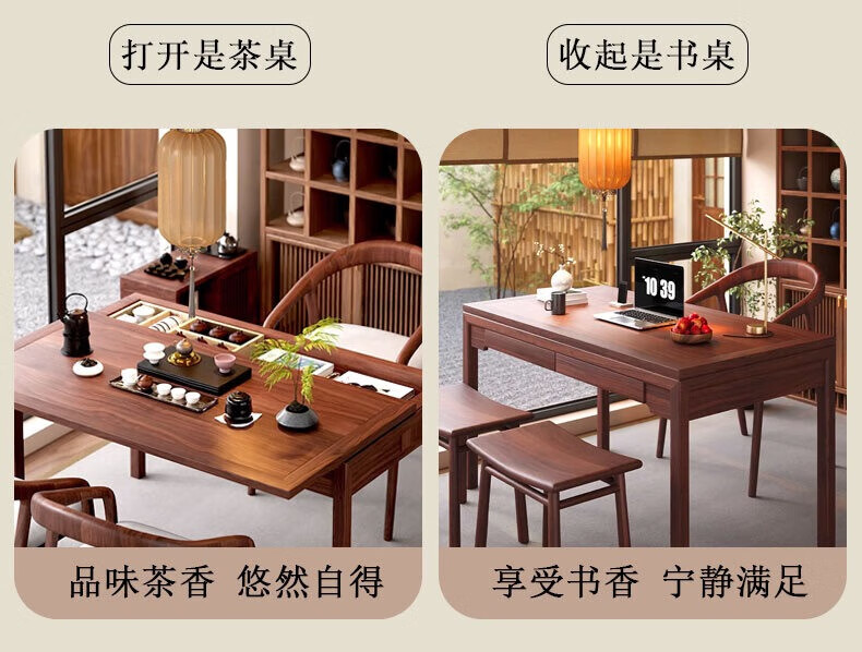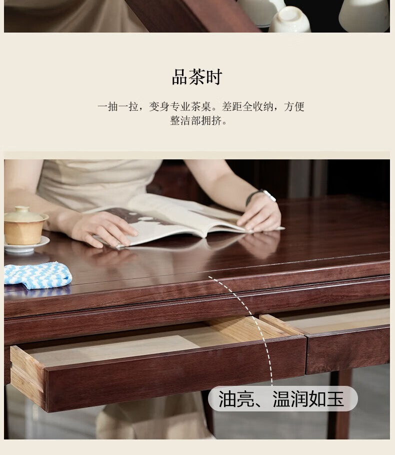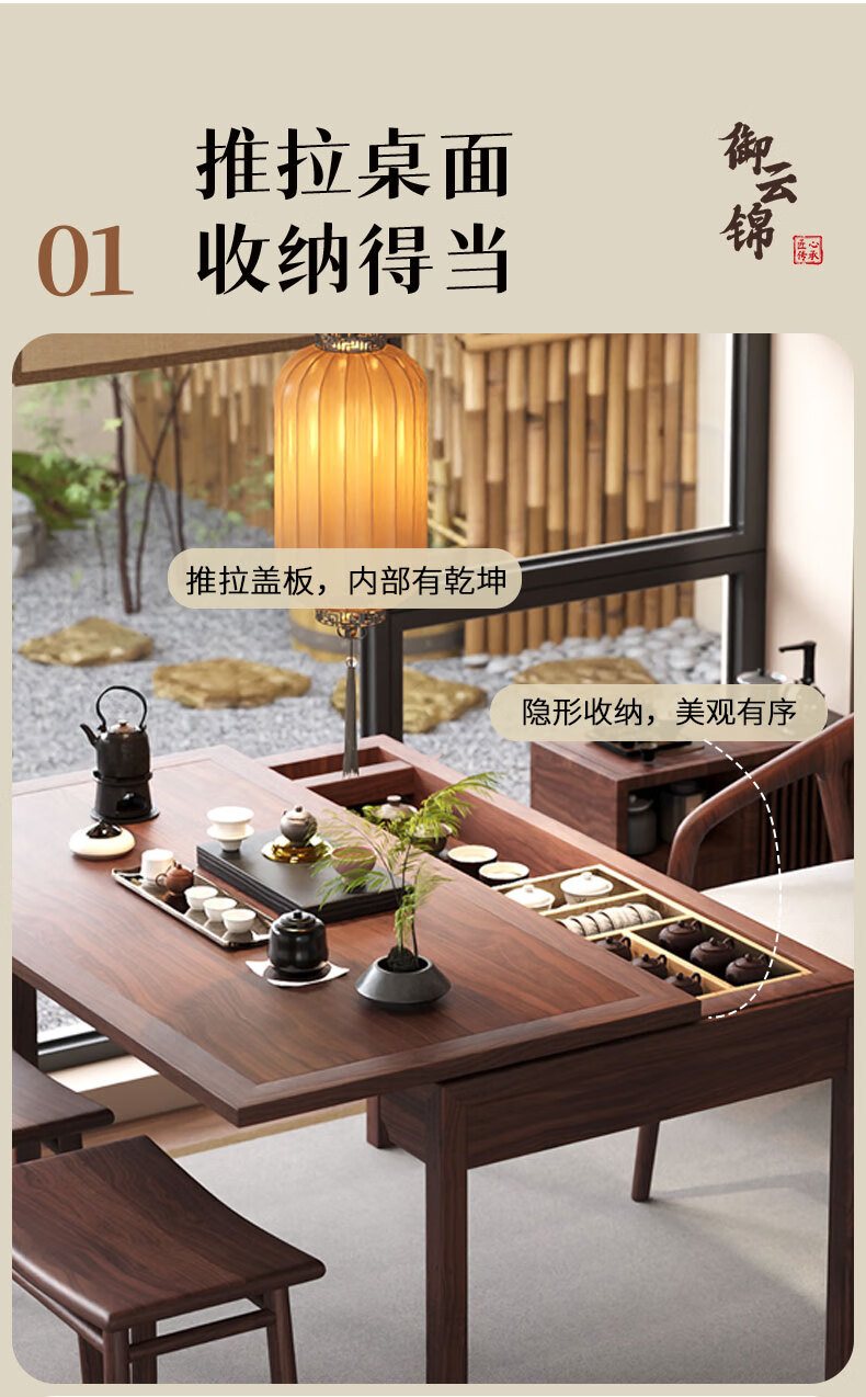 御云锦实木茶桌椅组合新中式家用小户型阳台茶桌茶台客厅泡茶桌带收纳 【132*65*76cm】推拉茶桌 酸枝木-胡桃色