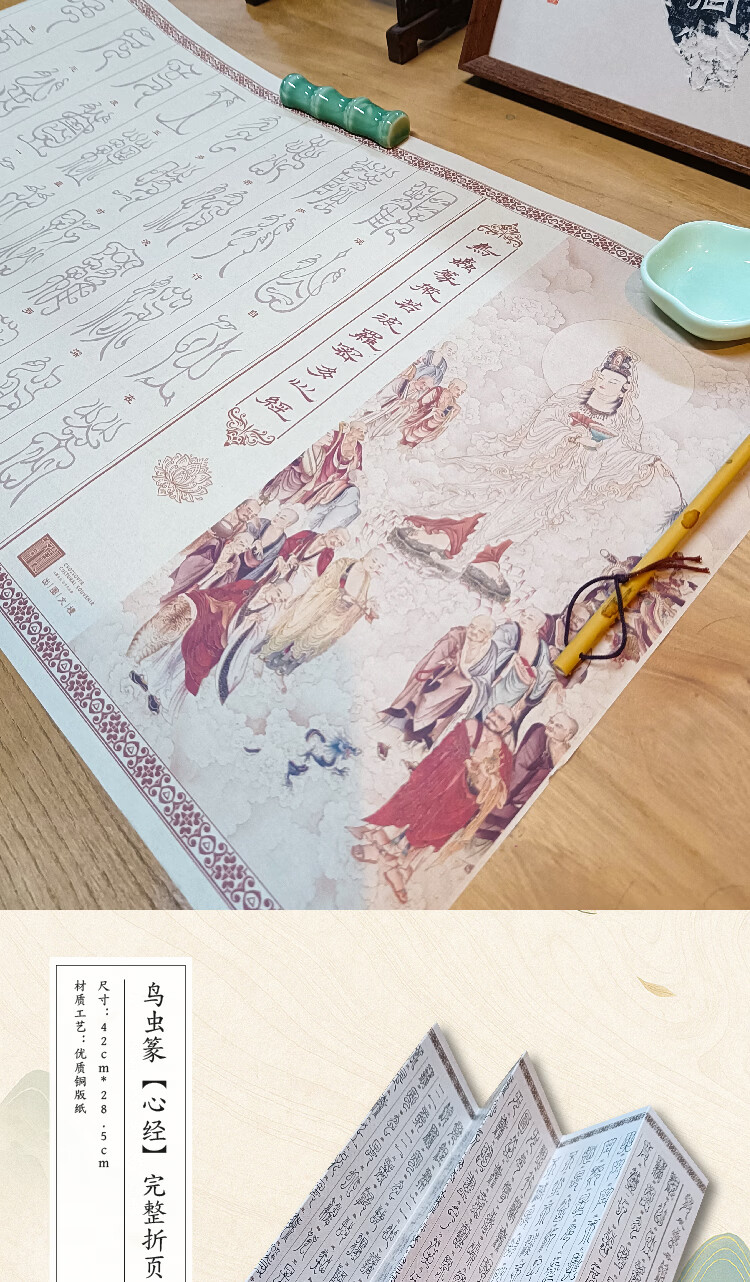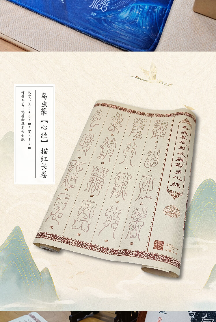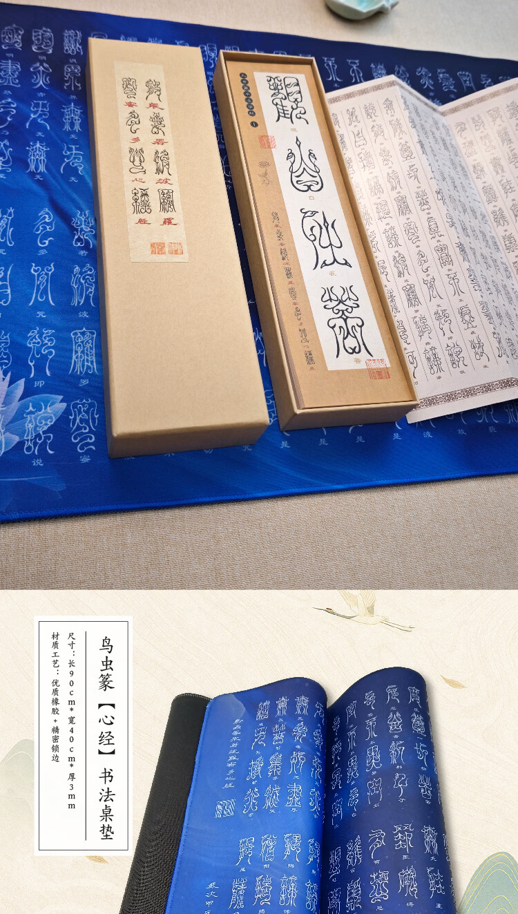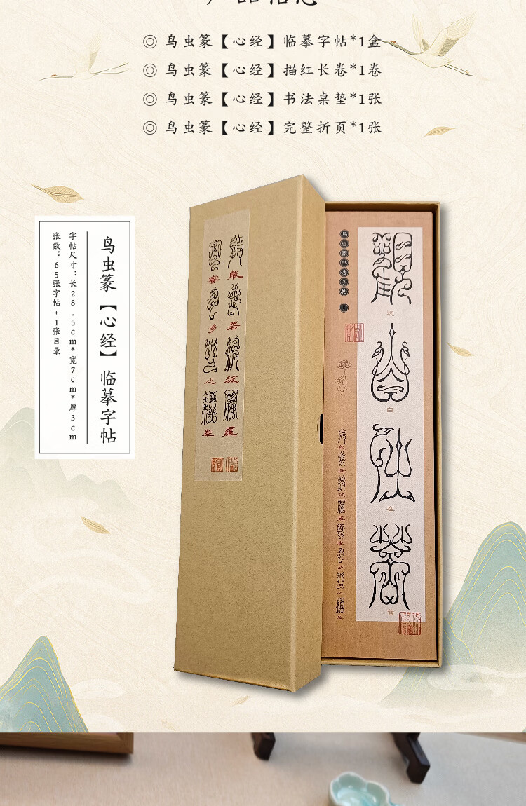 鸟虫篆字帖-心经全篇临摹字帖描红长卷书法桌垫毛笔字帖中国风古典书房书法佛家文化 字帖*1+长卷*1+桌垫*1
