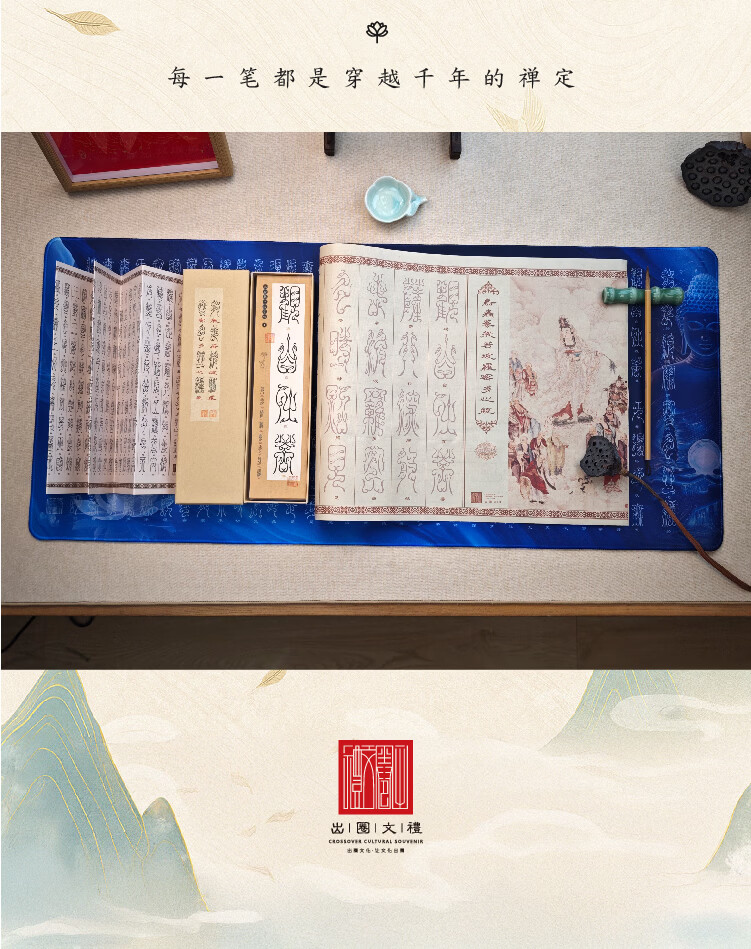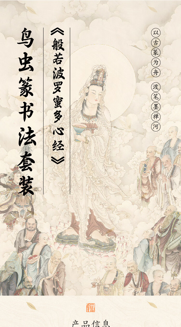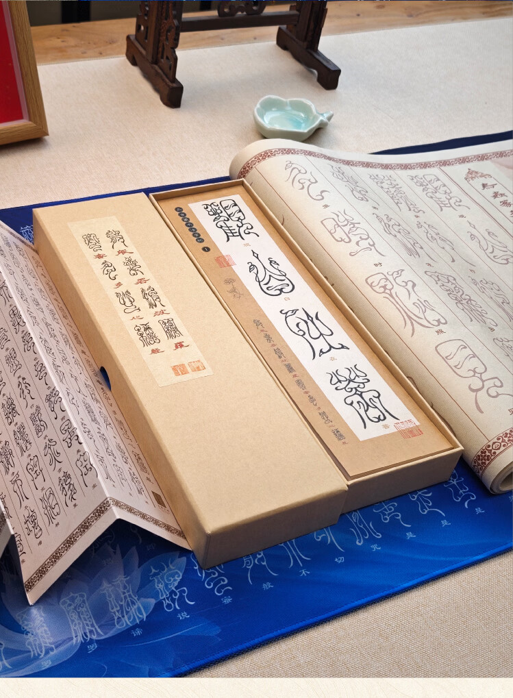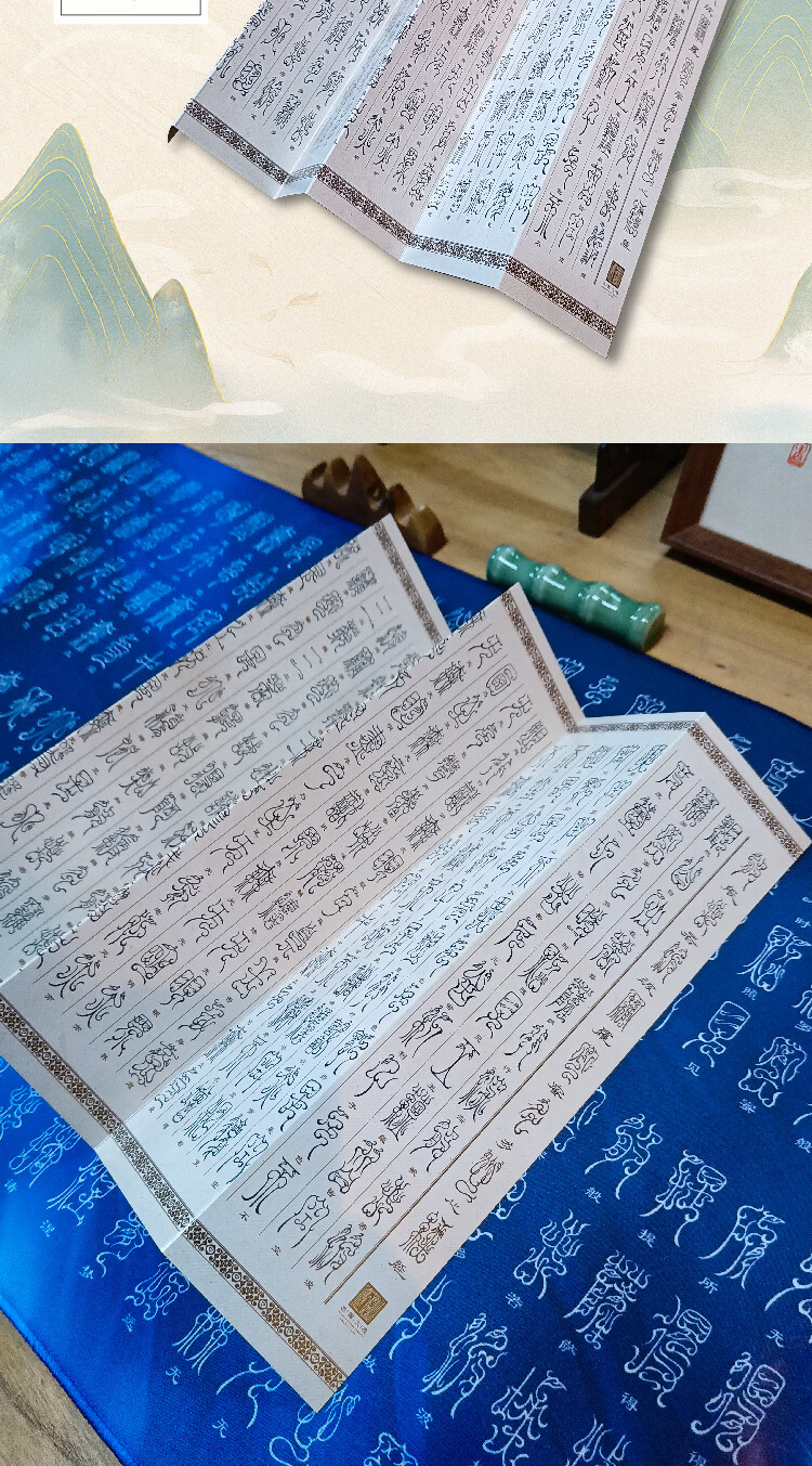 鸟虫篆字帖-心经全篇临摹字帖描红长卷书法桌垫毛笔字帖中国风古典书房书法佛家文化 字帖*1+长卷*1+桌垫*1