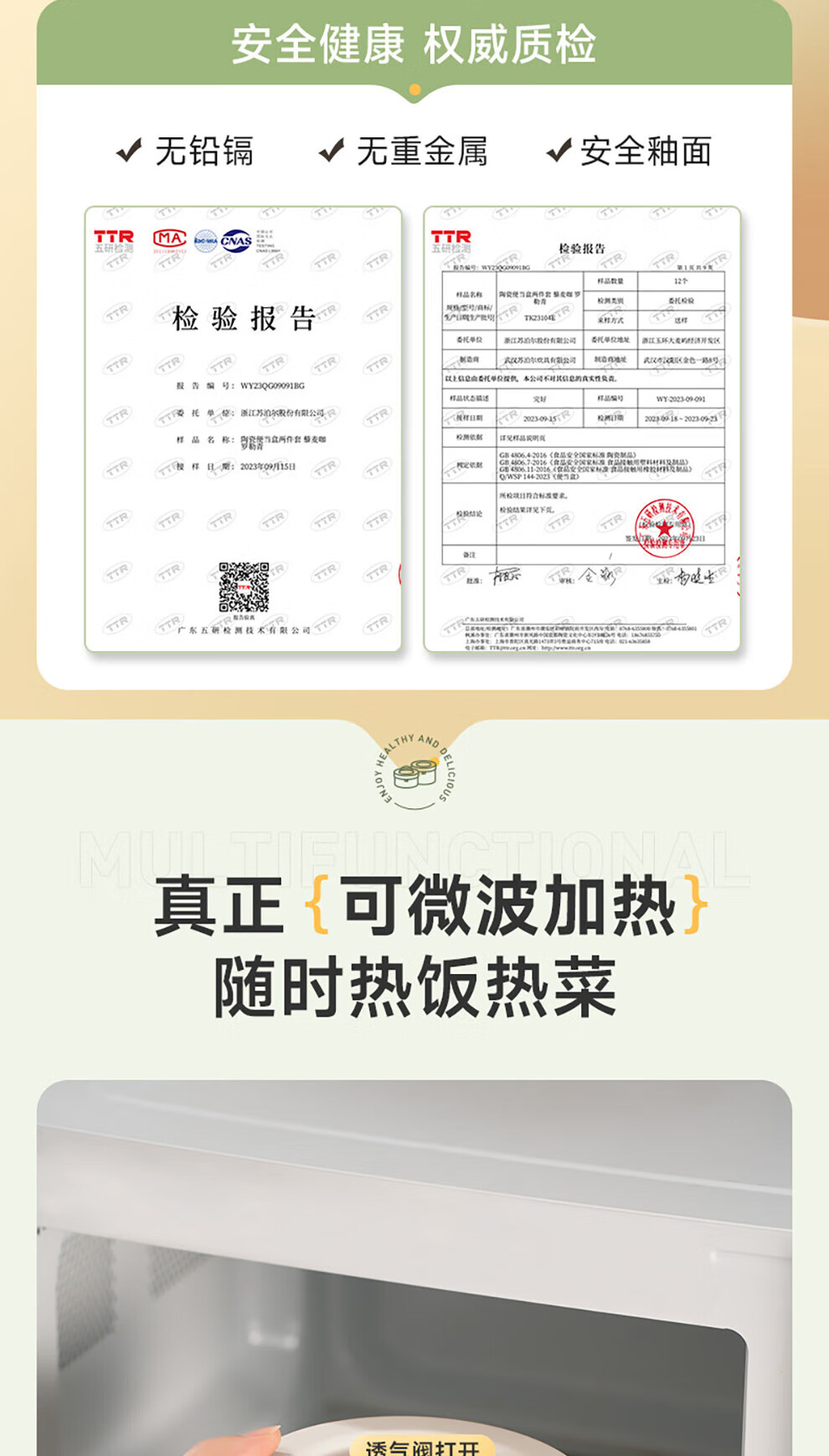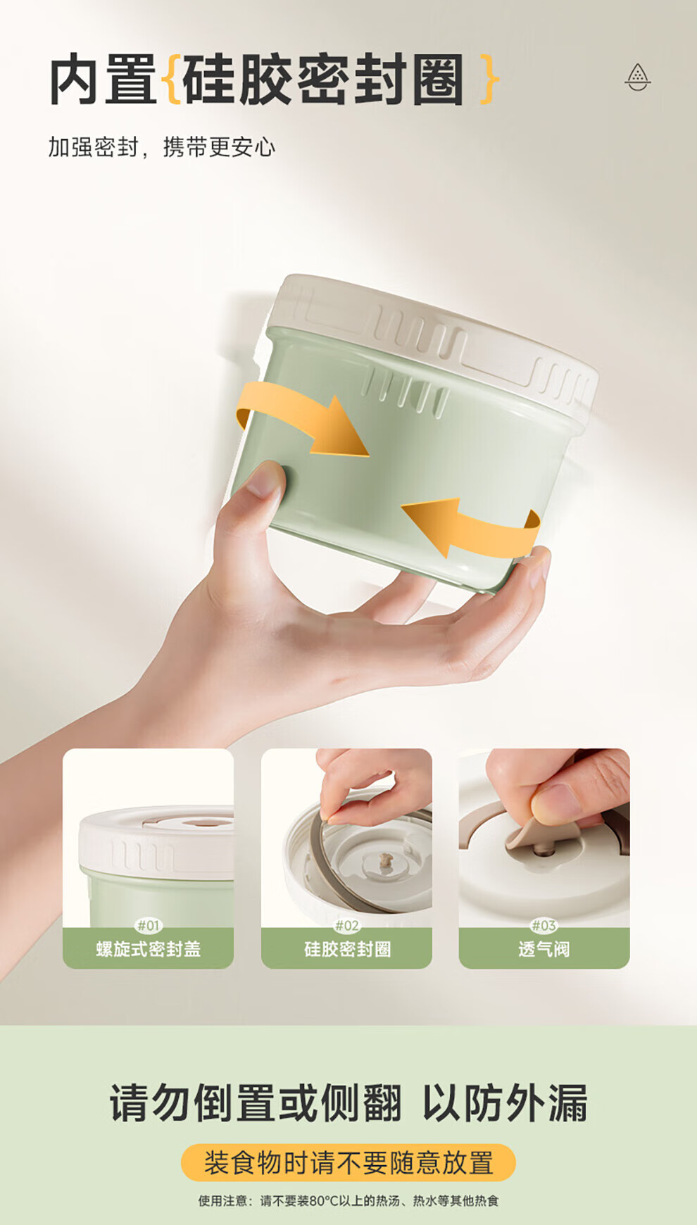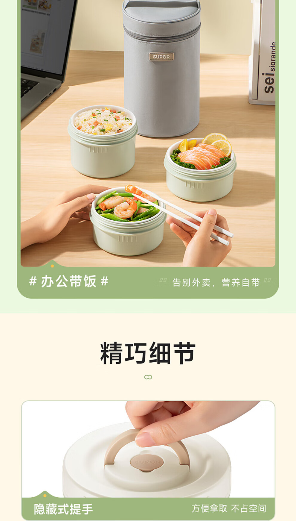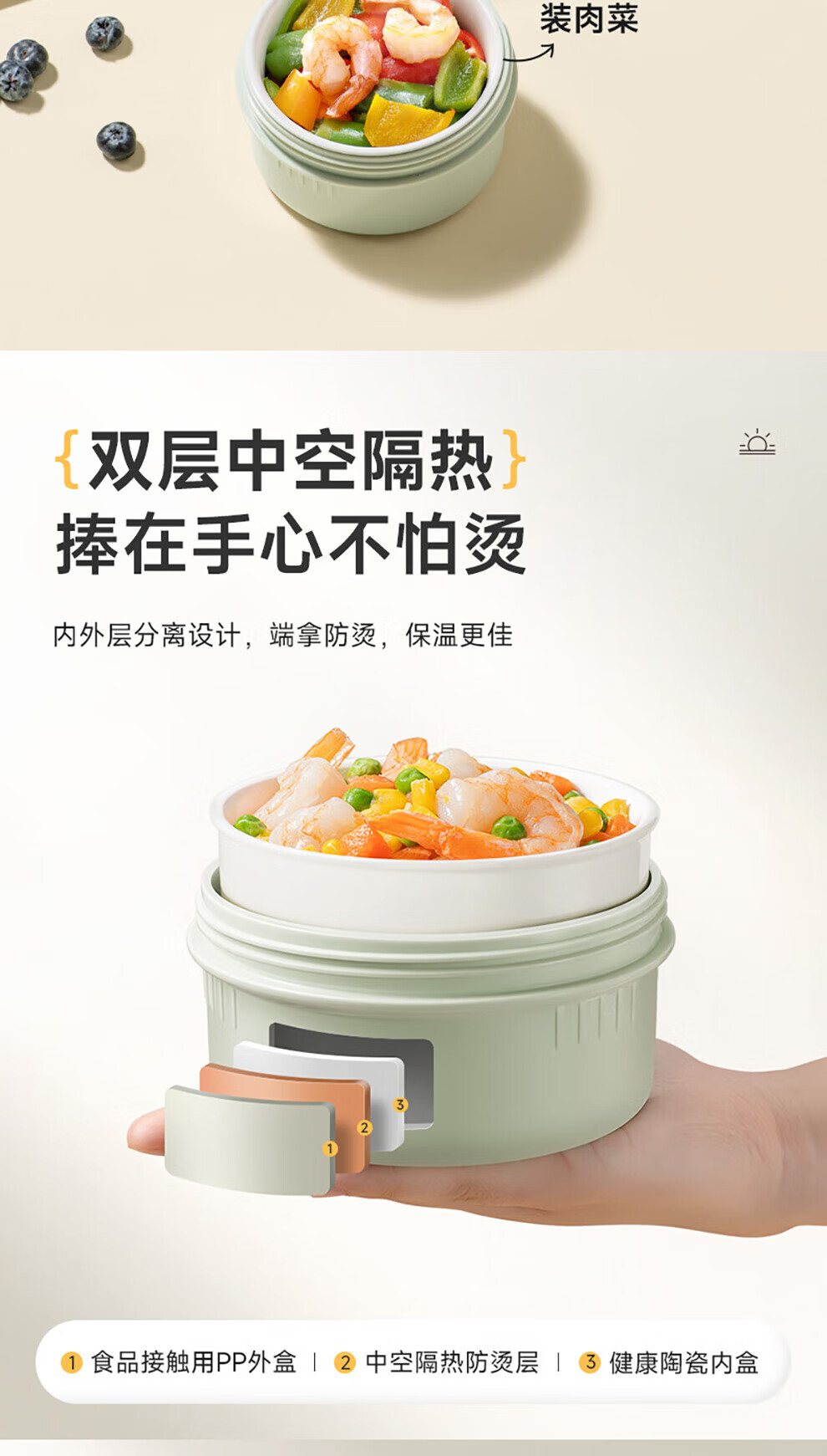 苏泊尔(SUPOR)陶瓷保温饭盒上班族2026新款学生便携便当餐盒可微波炉 罗勒青【可微波加热】1层560ml