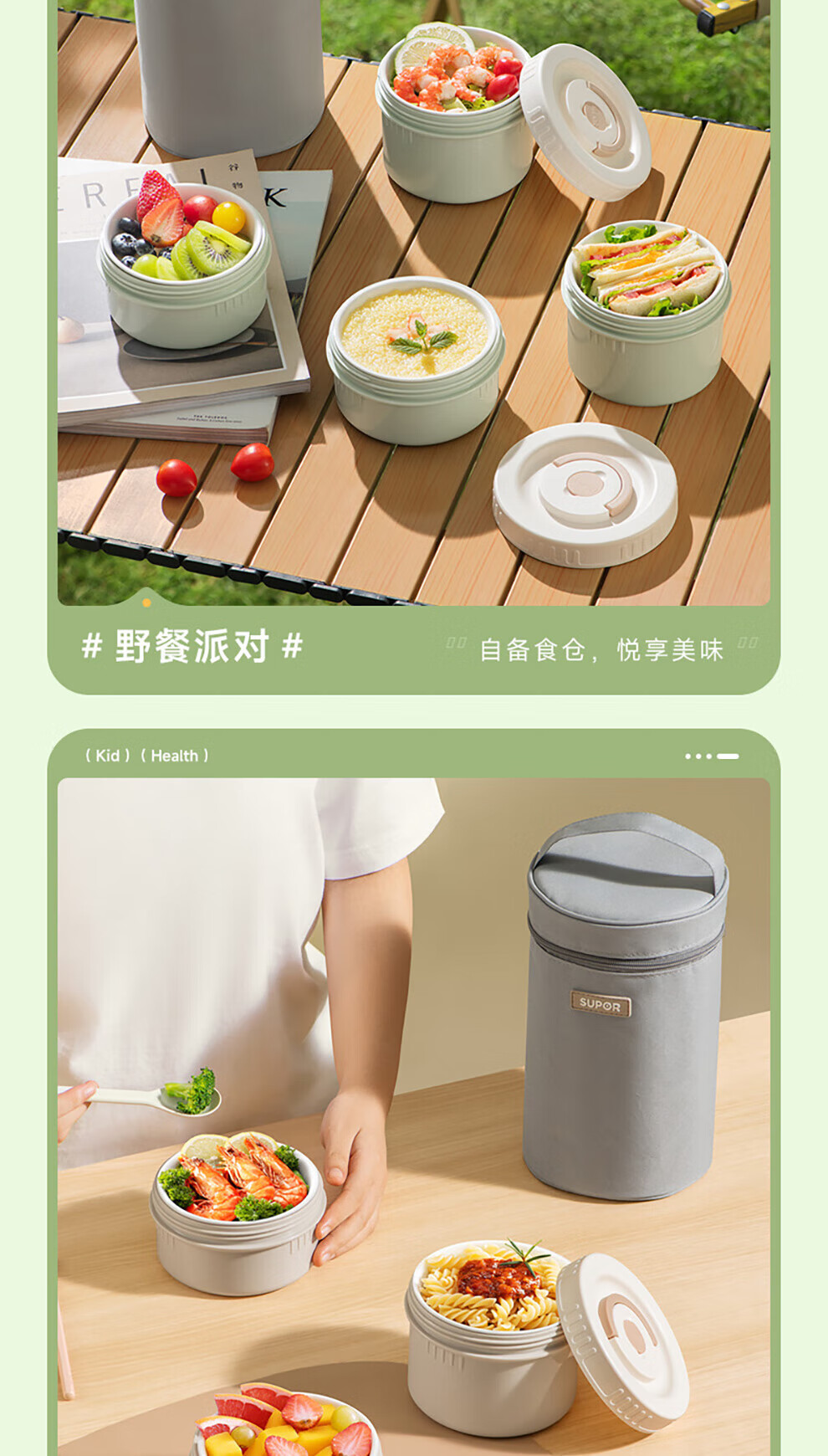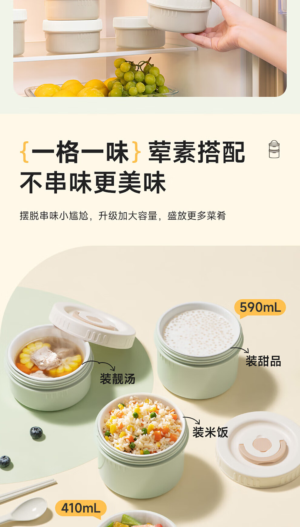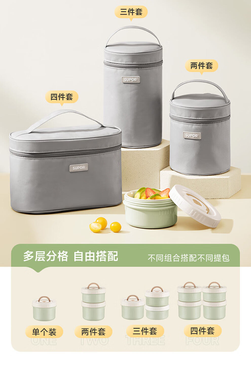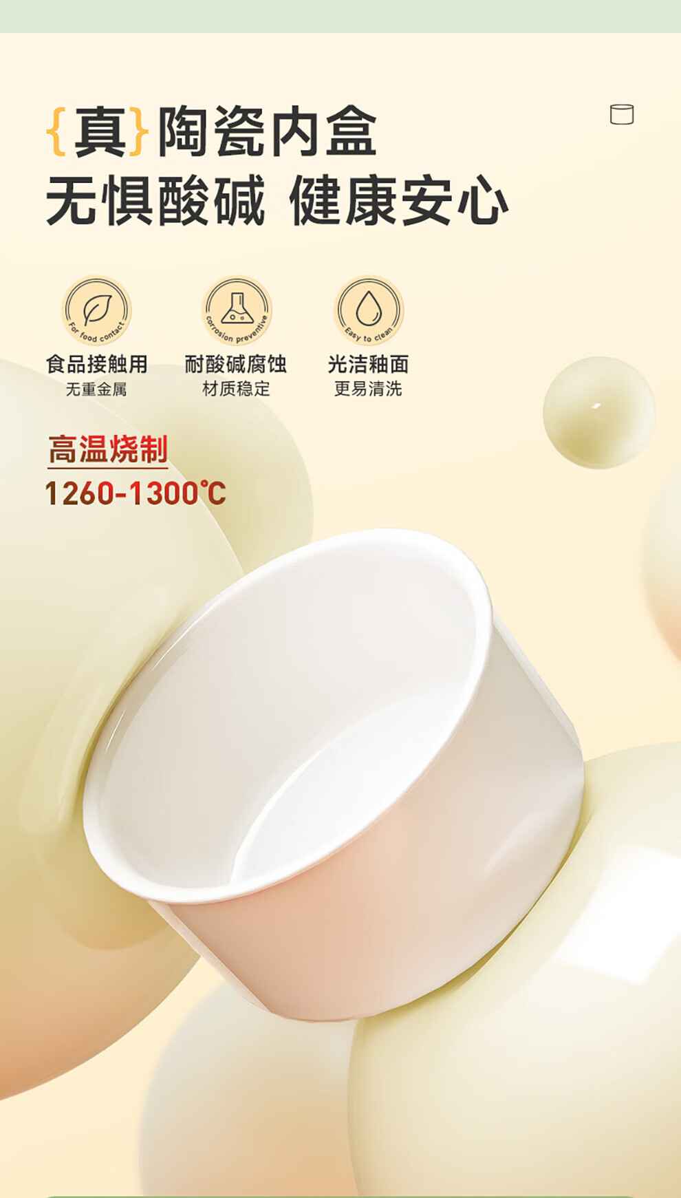 苏泊尔(SUPOR)陶瓷保温饭盒上班族2026新款学生便携便当餐盒可微波炉 罗勒青【可微波加热】1层560ml