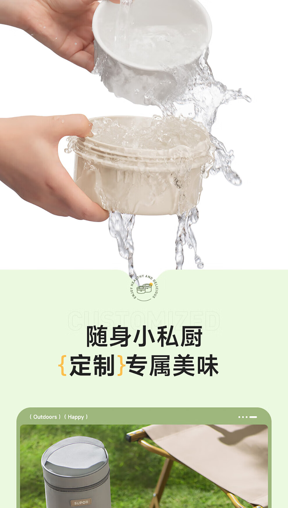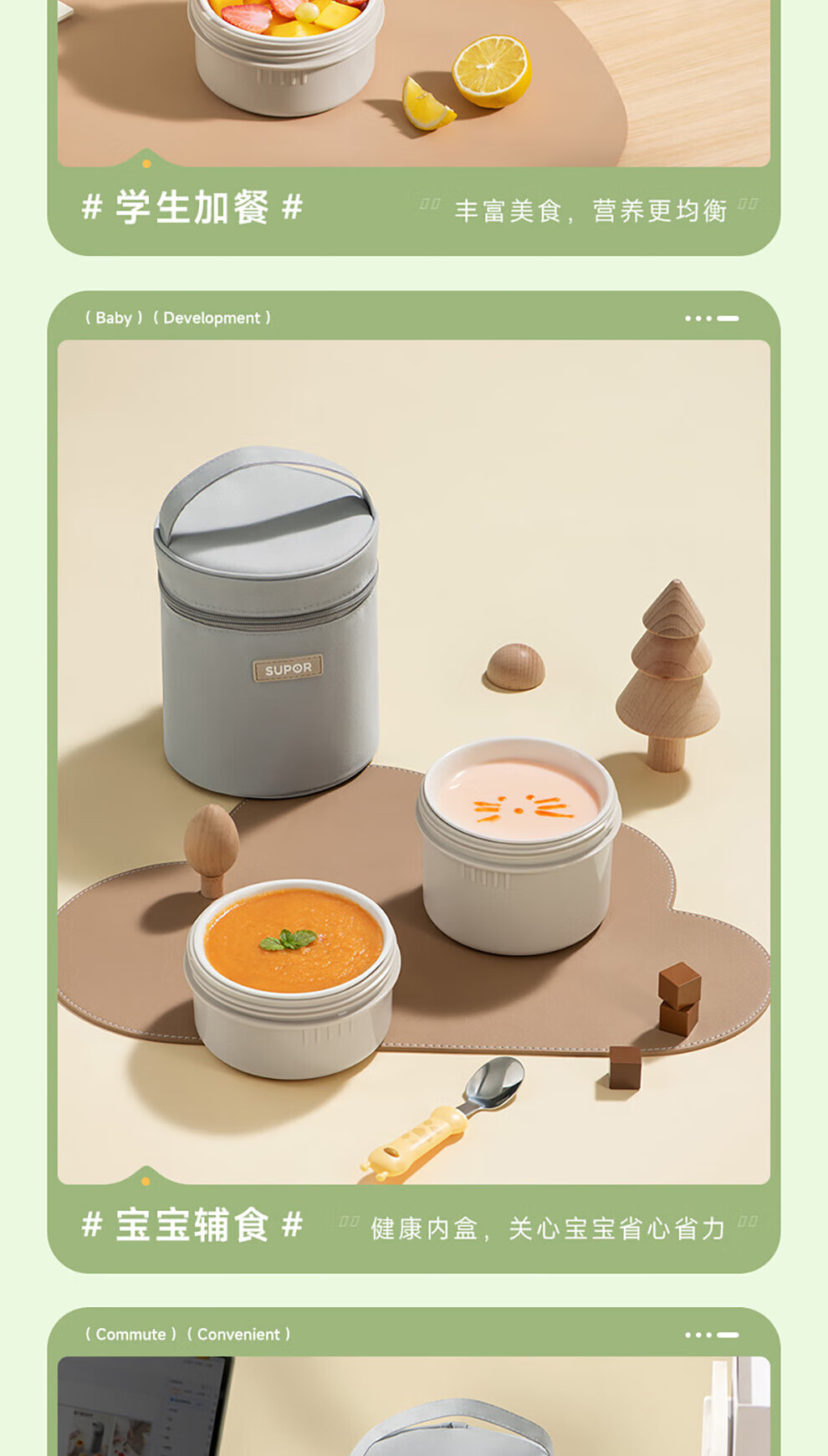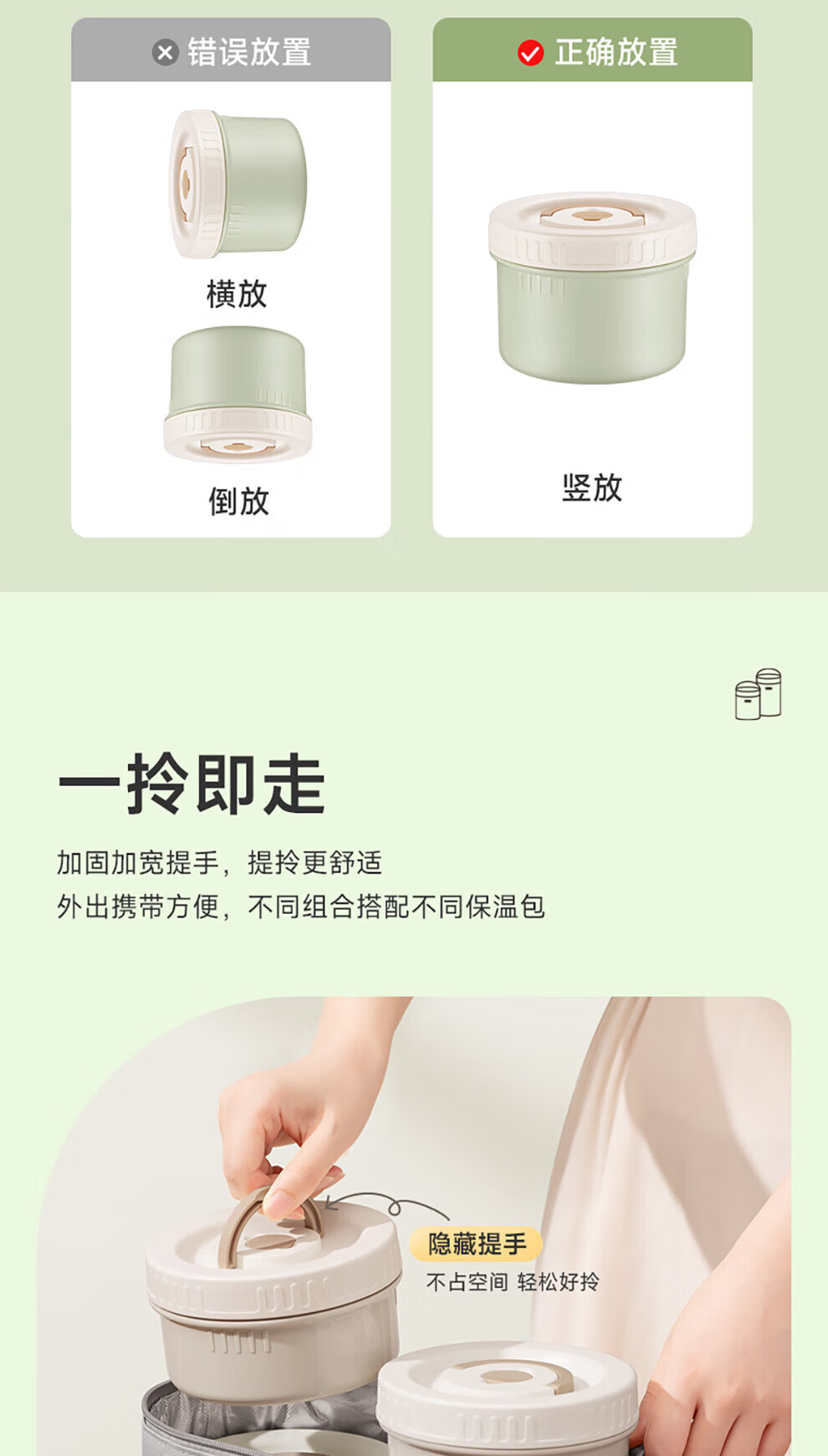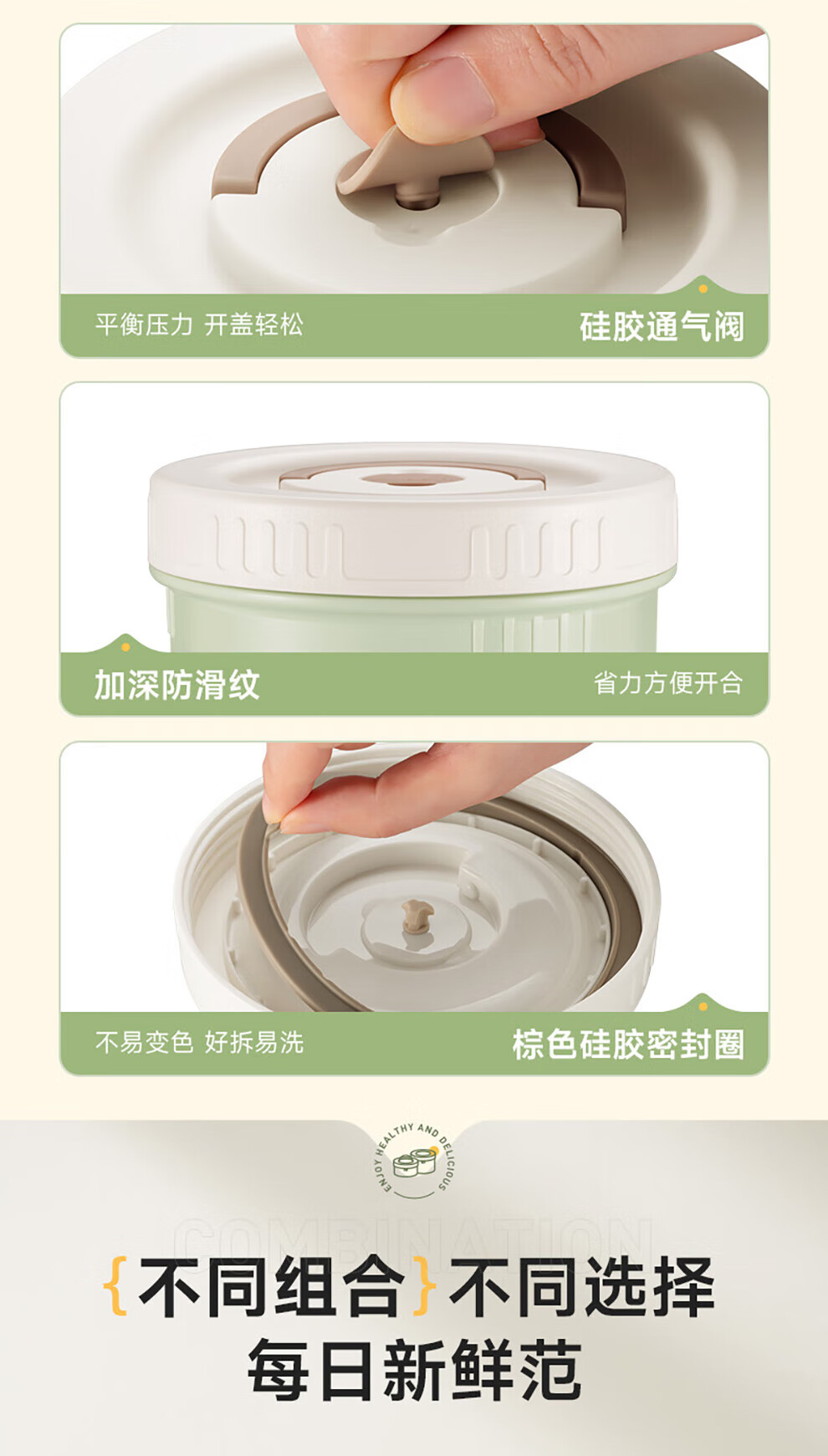 苏泊尔(SUPOR)陶瓷保温饭盒上班族2026新款学生便携便当餐盒可微波炉 罗勒青【可微波加热】1层560ml