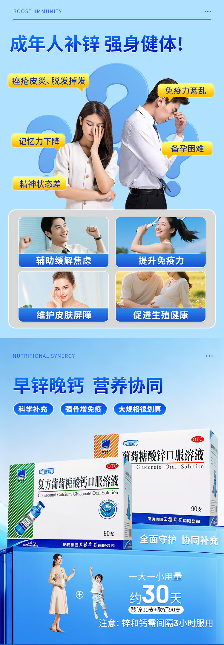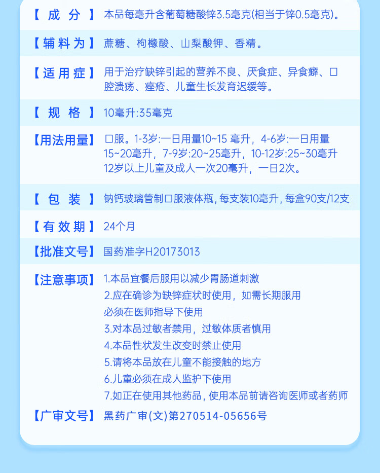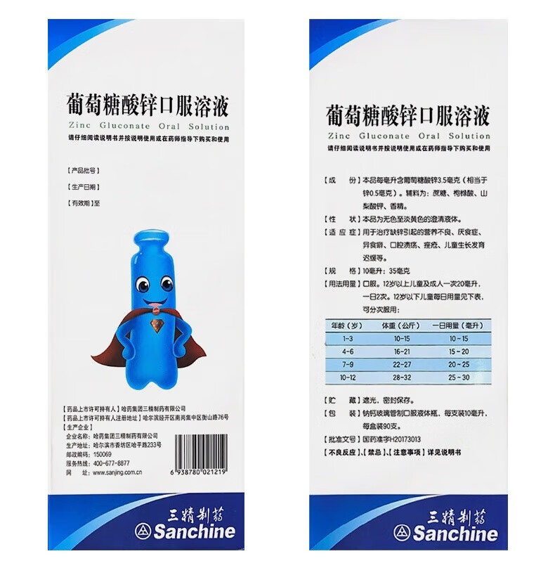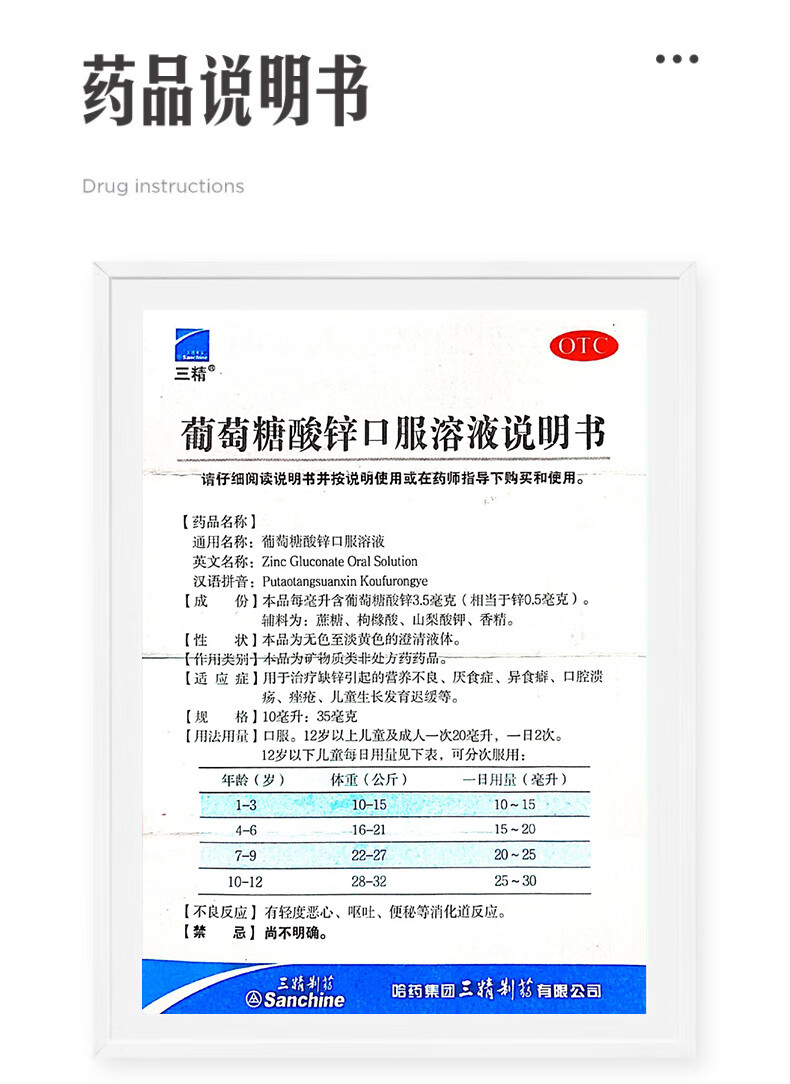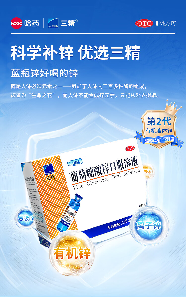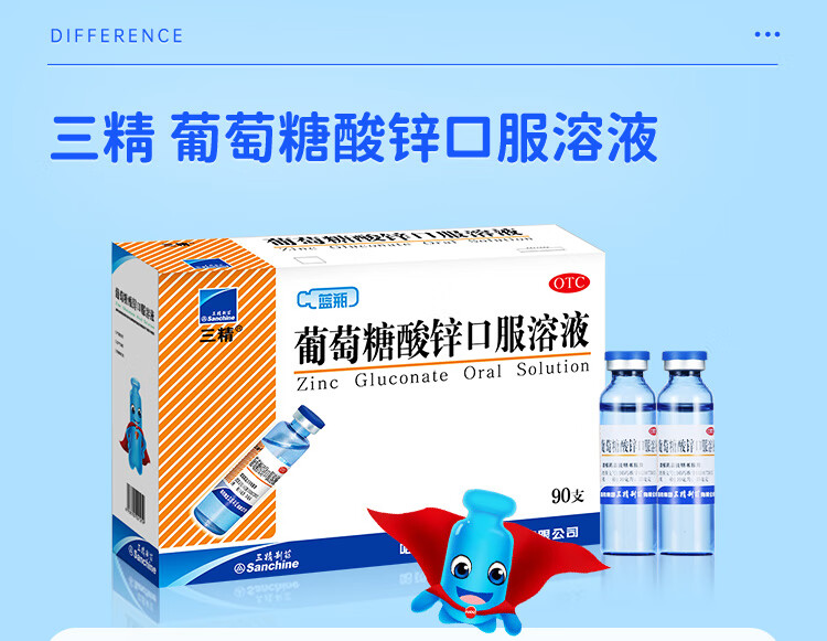 三精葡萄糖酸锌口服溶液10ml*90支 儿童青少年成人中老年补锌液体钙锌 京东大药房 非葡萄糖酸钙铁锌钙片